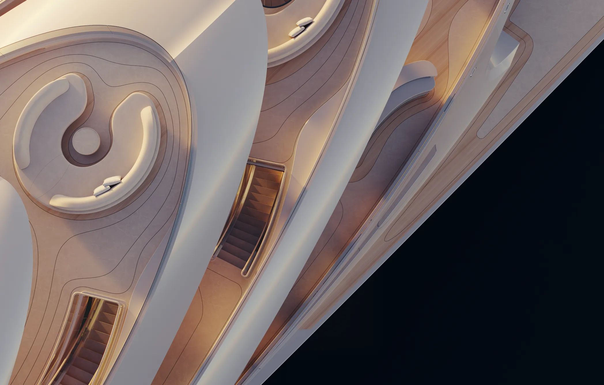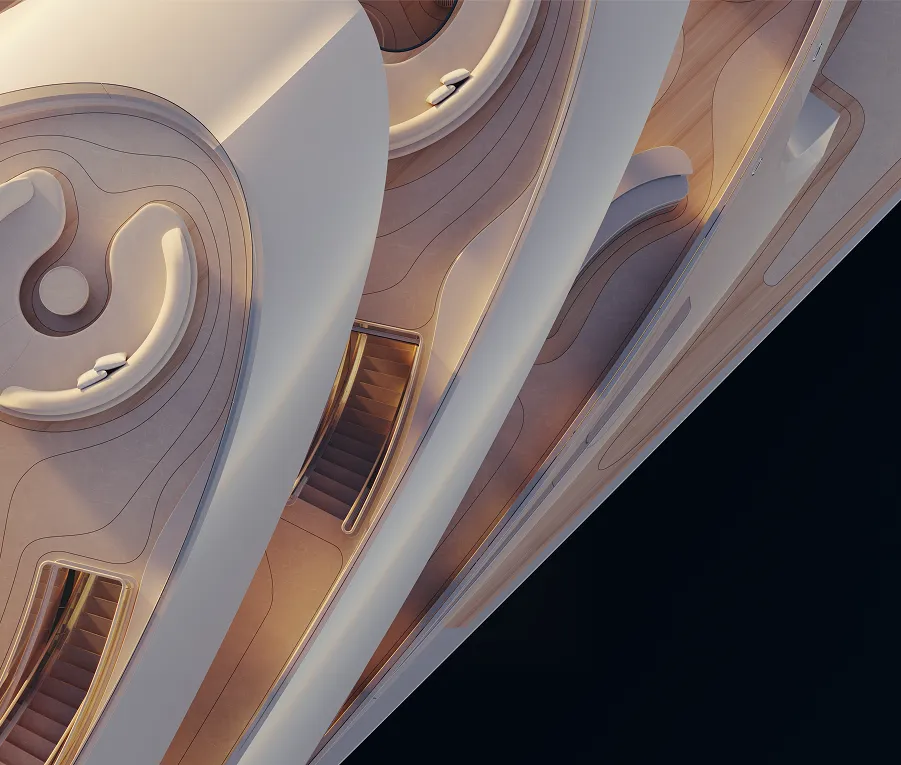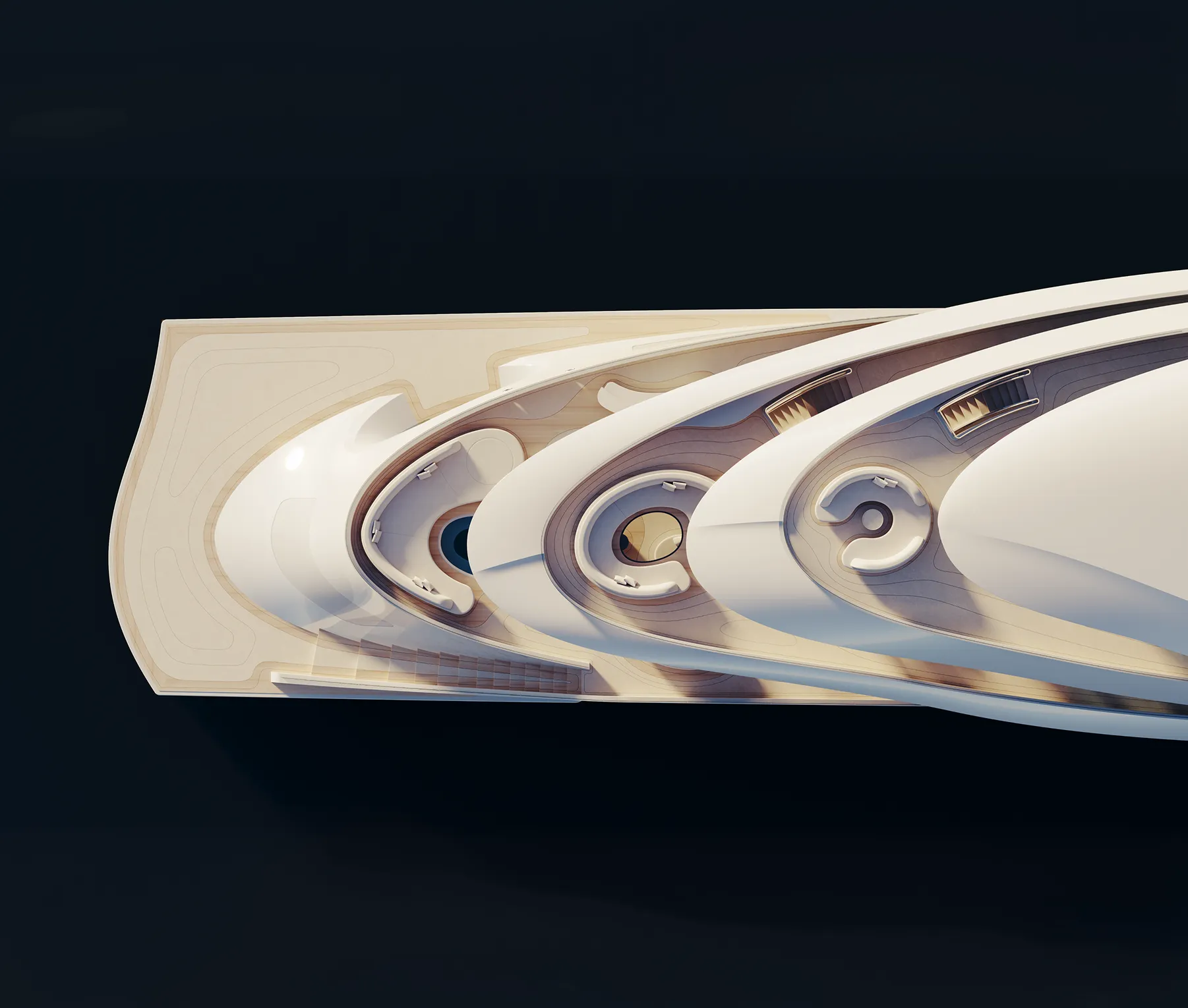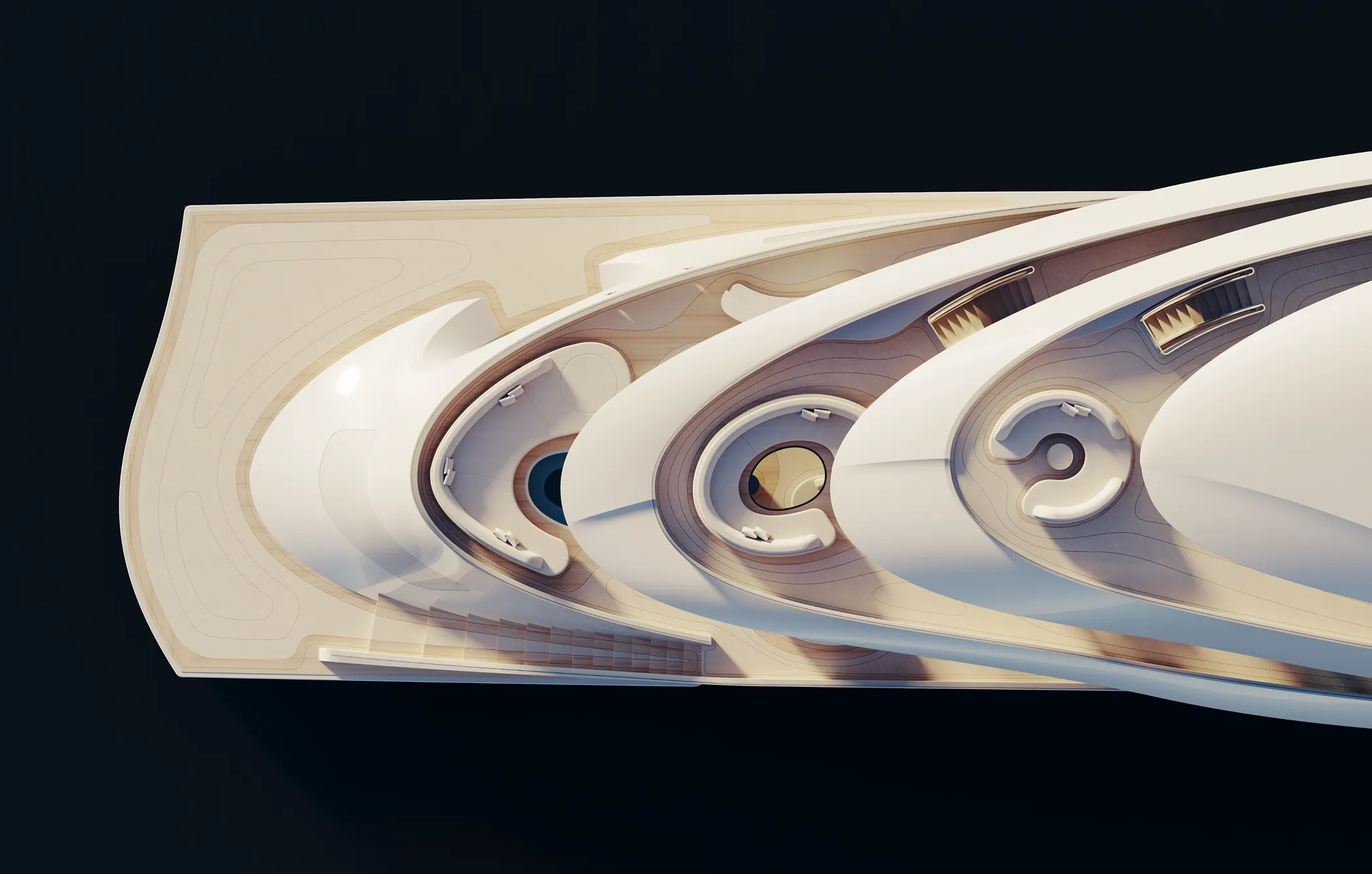Dunes explores how natural forces can shape the future of superyachts. Developed by Studio De Voogt and Feadship’s Knowledge & Innovation team, the concept translates wind, shade and landscape into intelligent design solutions.