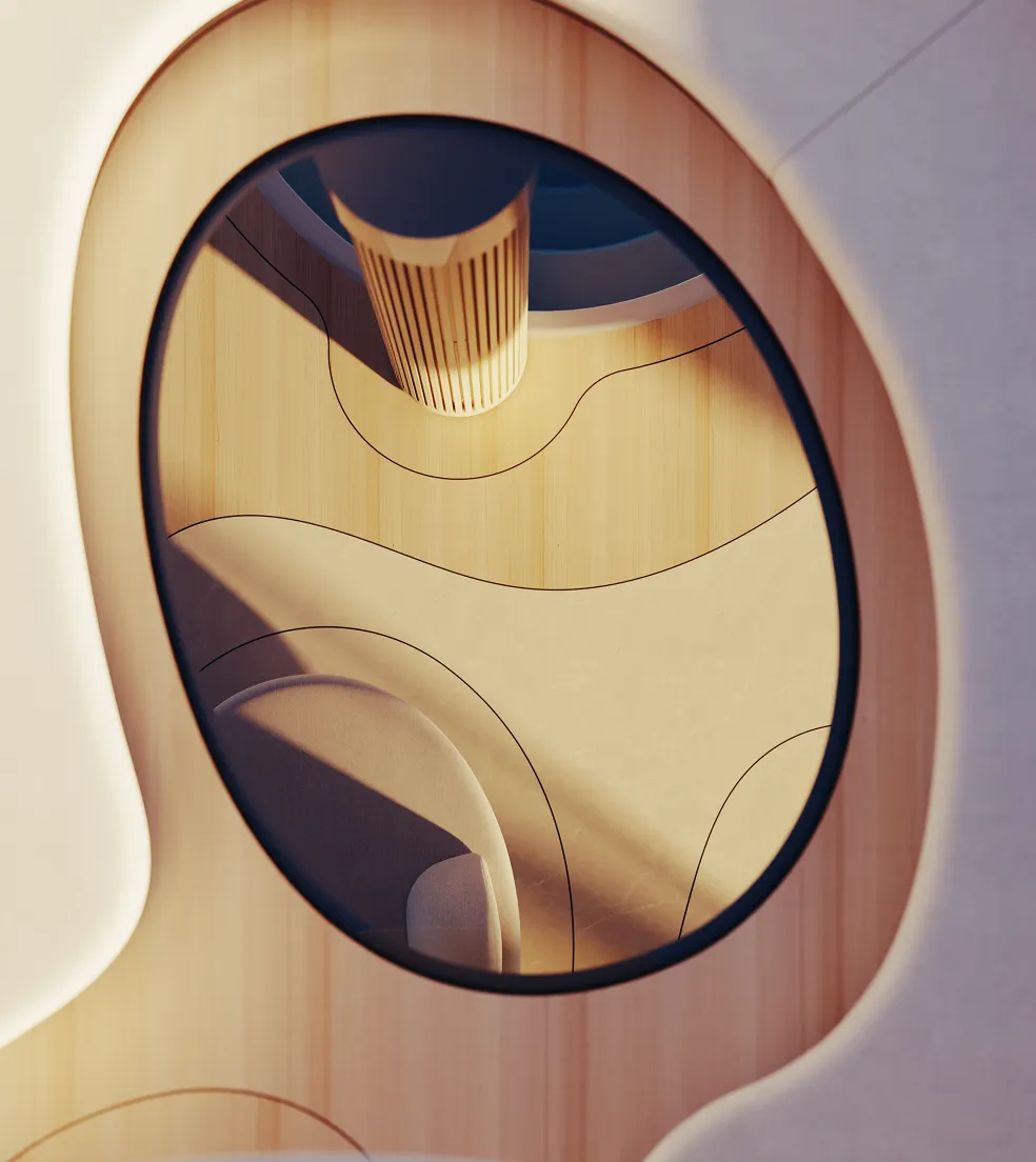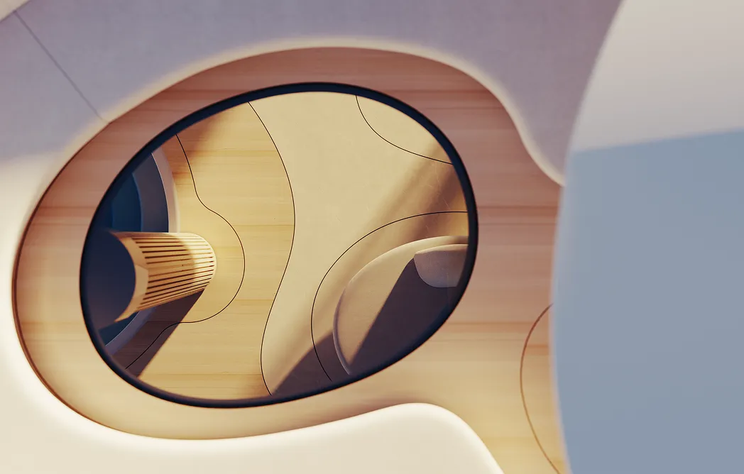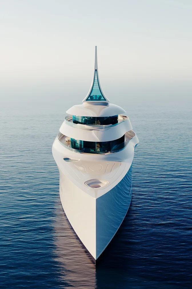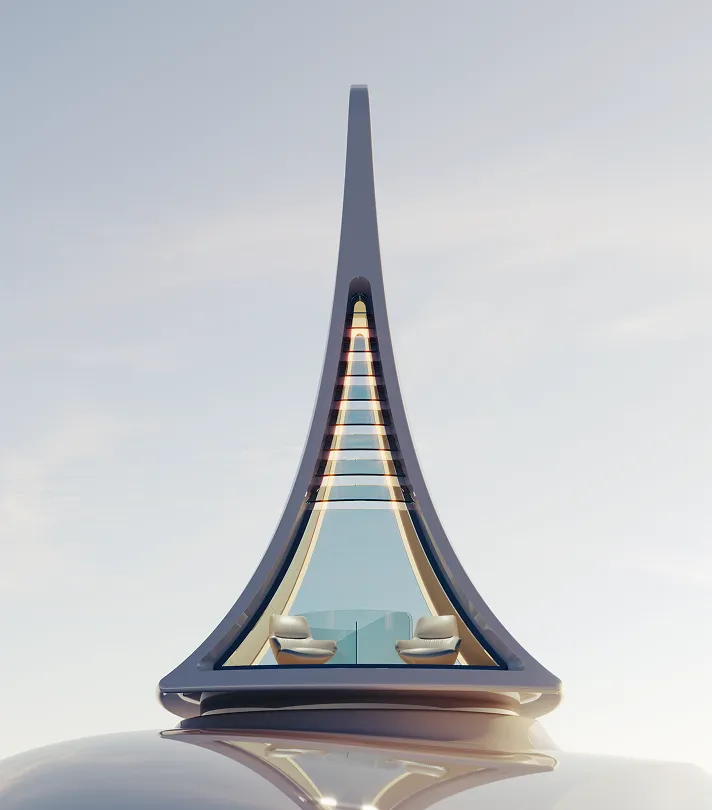 The sculpted tower atop Dunes rotates to align with prevailing winds, creating a natural airflow through the yacht. By drawing warm air out and inviting cooler air in, it enables passive ventilation.