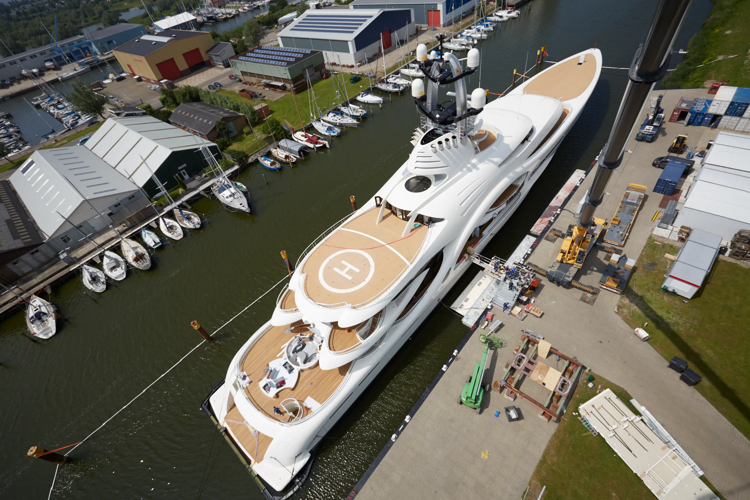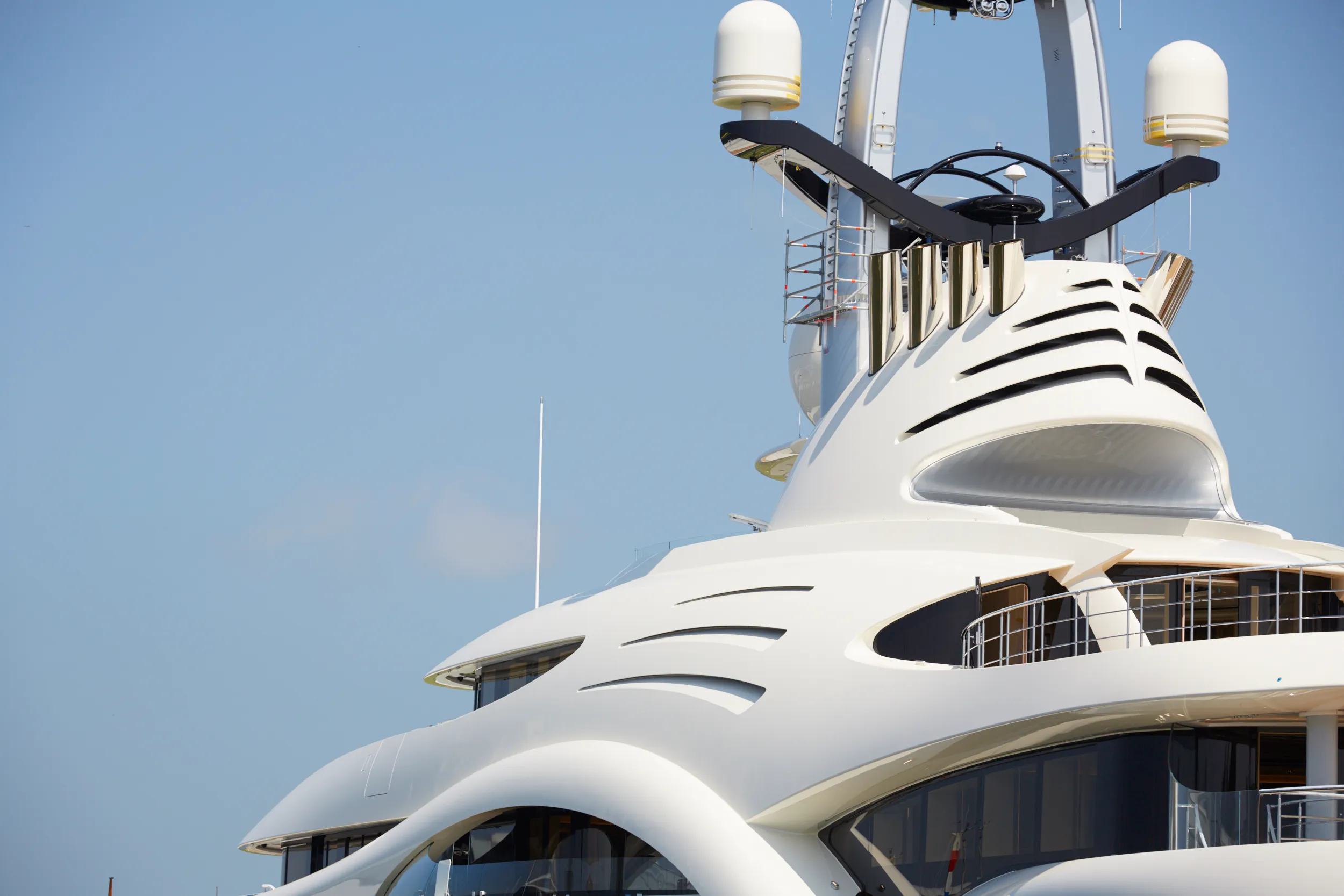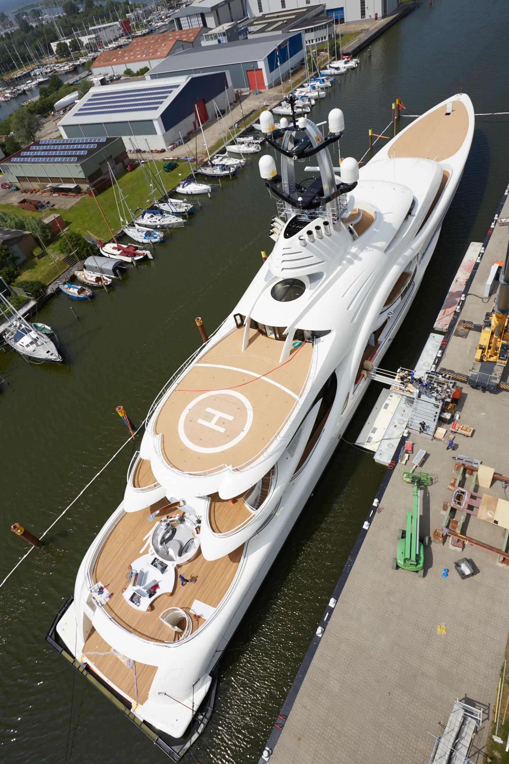 Ambassador's oyster-white hull features hand-sculpted organic shapes, metallic silver/jet black elements and huge slabs of glass, topped off by a giant funnel and mast. The mast is an ingenious architectural feature in its own right, designed in a highly functional manner that offers the best possible internet coverage and transmission. The foredeck doubles as a second fully equipped helicopter pad which can be swiftly transformed into a football pitch through the clever use of artificial grass and netting. The large aft deck serves as the main helicopter platform while also making Ambassador the first superyacht capable of landing a tilt-rotor aircraft.