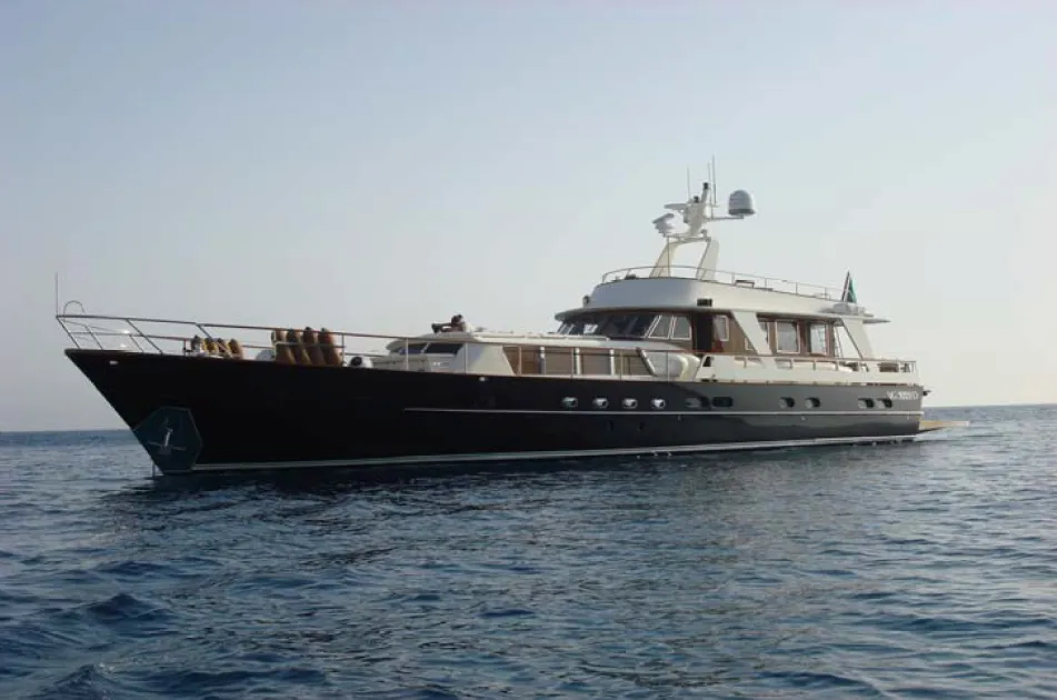 The 22.50-metre Caravelle – the sixth in the Caravelle series – was not exhibited inside the 1964 Genoa International Boat Show but outside at the nearby harbor in Ducla degli Abruzzi. Purchased by an Italian owner, she later changed hands and names – first Quien Sabe, then Andios – as she eventually made her way to down to Rome.
