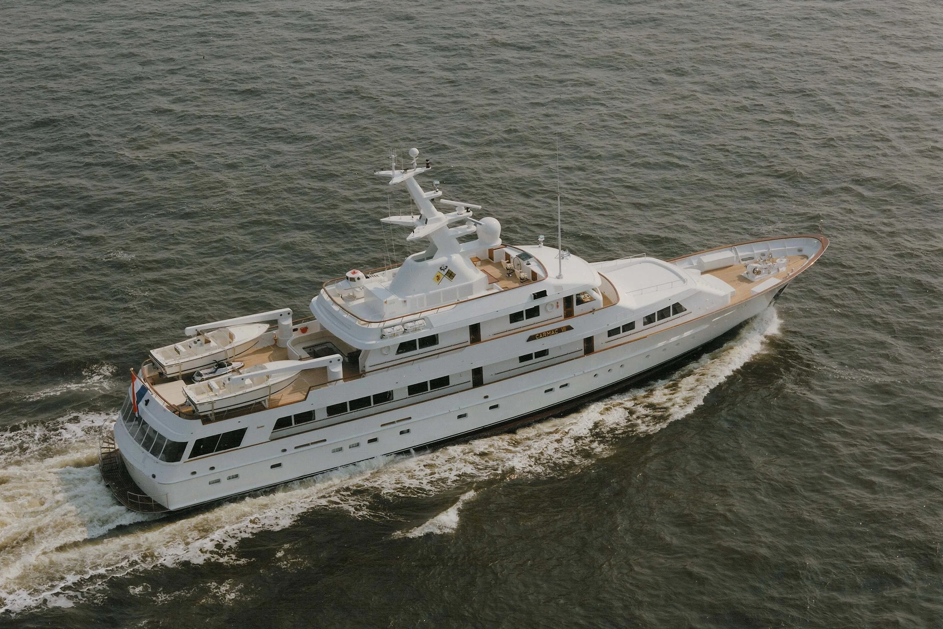 The 45.72-metre Carmac VII was the third yacht built for a devout Feadship owner and followed in the footsteps of previous Feadships – the 41.70-metre Carmac VI and 21.48-metre Patricia. When building his new yacht, the owner remarkably had the 200-year-old hand carved walnut and cherrywood paneling, 150-year-old leaded glass china cabinets and custom woven carpeting removed from his previous Carmac and installed onboard Carmac VII.