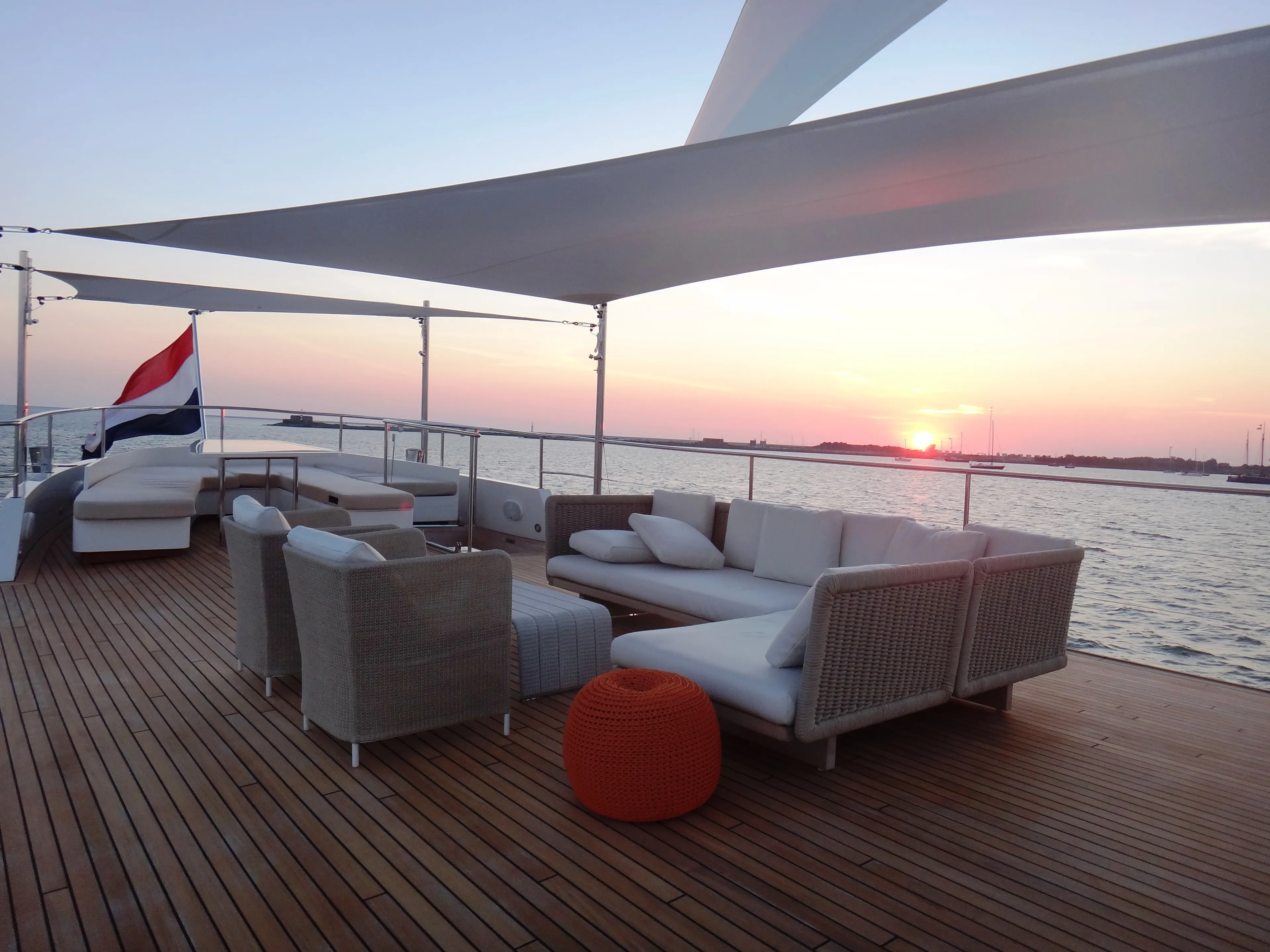 Launched in 1969, the 25.80-metre Din-Dina III was purchased by Italian owners and immediately sailed off for southern Europe’s warmer waters. In 2007, however, she was discovered quite dismantled in an Italian port by Kees van den Hoek. Nothing was working except the two old Gardner diesels. Van den Hoek found a new owner and it was decided to bring the yacht (or what was left of it) to the Netherlands. It turned out that all technical data were available in the Aalsmeer shipyard archives and after careful study, it quickly became clear that the best place for the 'refit' would be the yard in Makkum. Re-named Sultana, she is now celebrating her renewed life in the Med.