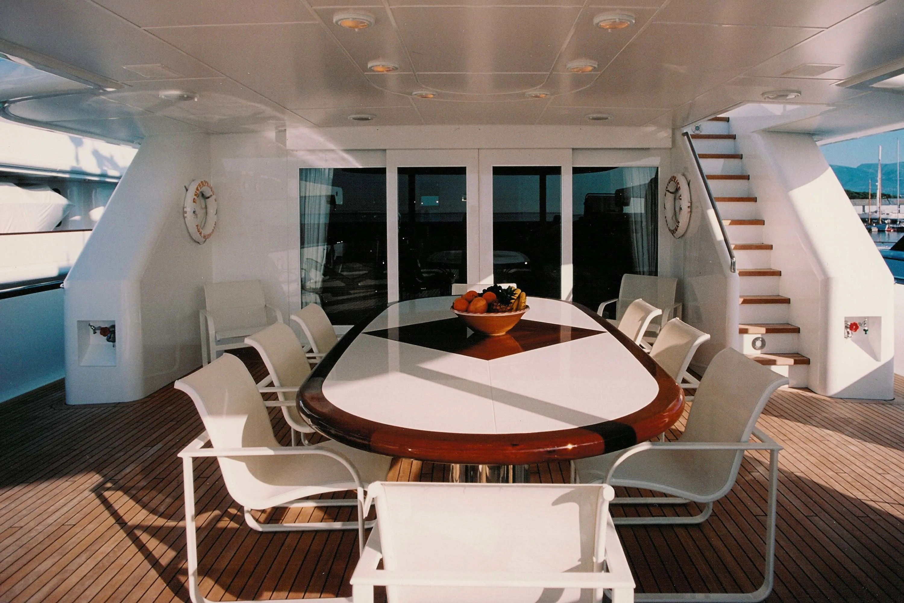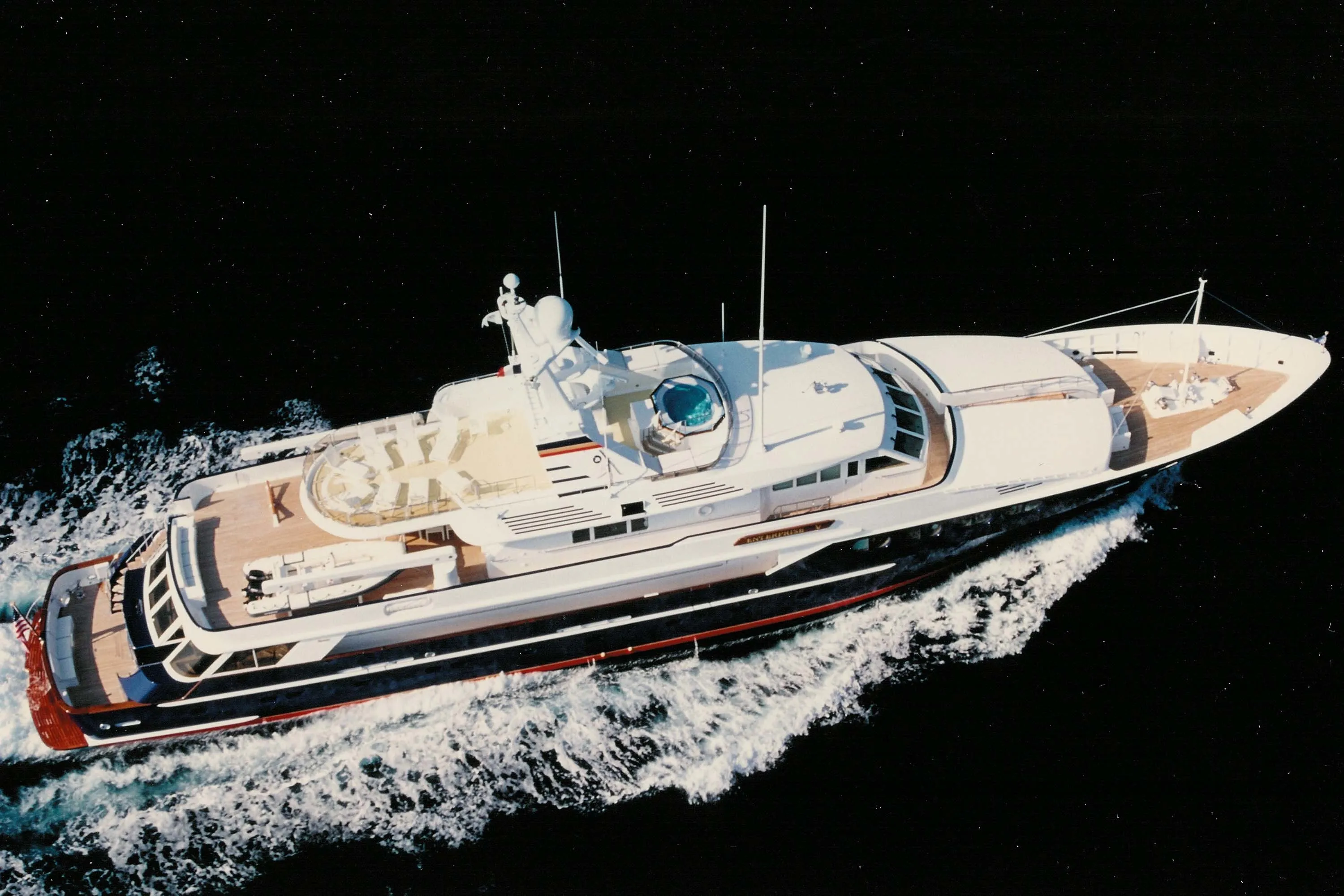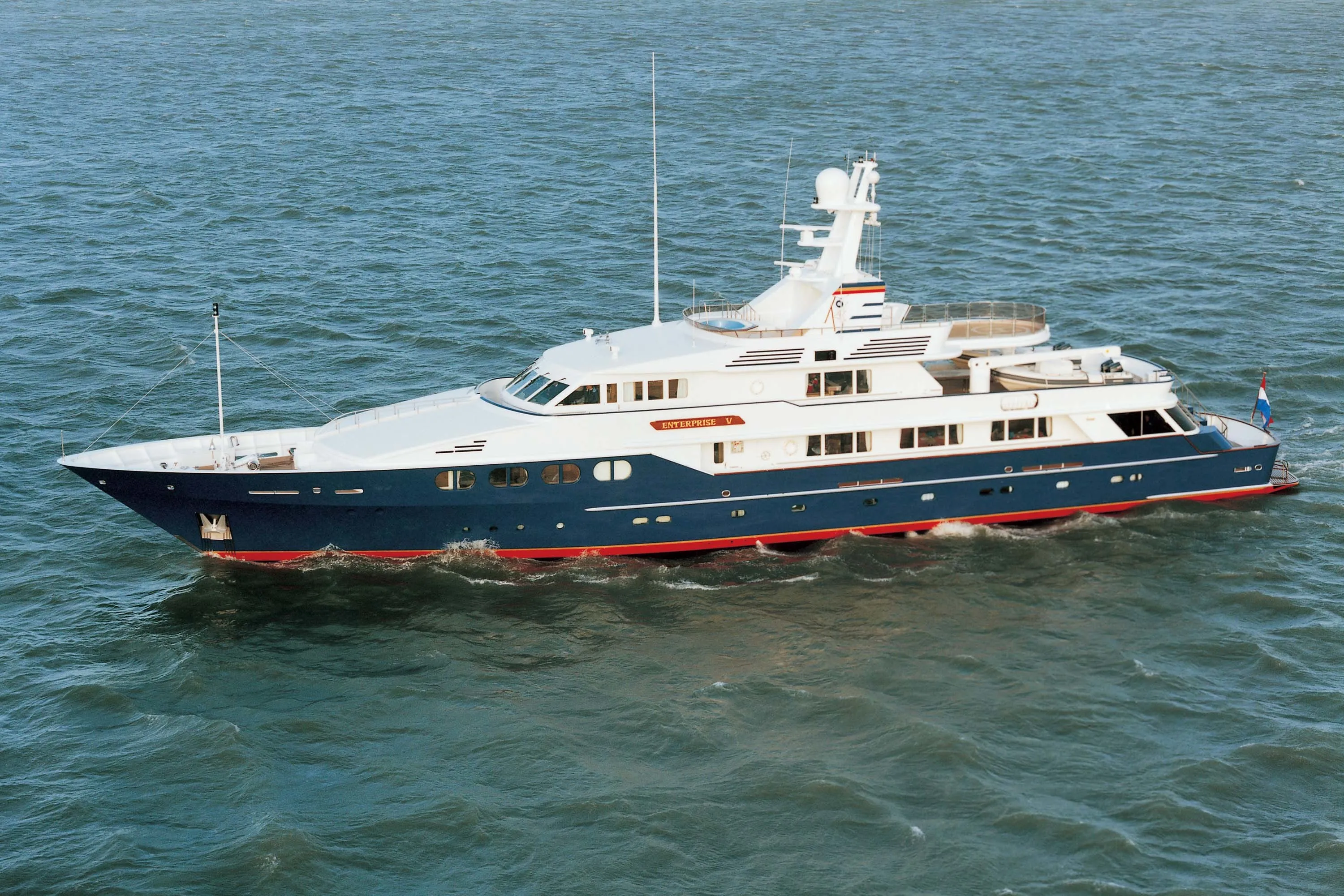 The owner of this 51.20-metre yacht describes why Enterprise V was the favorite of his four ships: “I guess what really stands out is her dark blue hull. We've taken her to Europe and back to the Caribbean five times and up and down the Eastern seaboard. She's got lots of miles on her and still works great. I have always thought that the real test of a boat is how she looks ten years after being built. With a Feadship, you just put on a coat of paint and it is as good as new. A Feadship is a joy to have.”