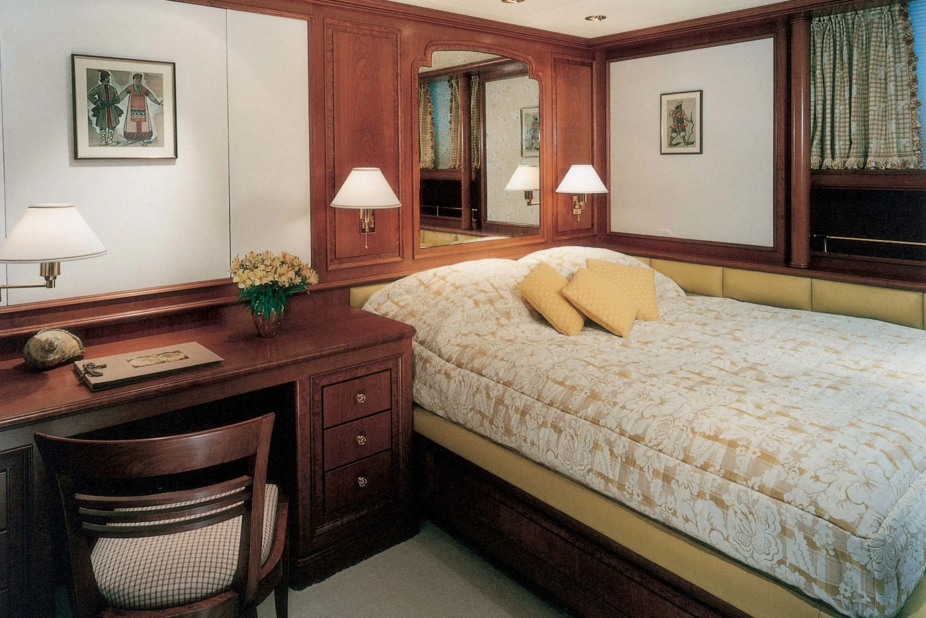 Much has been made of Irina’s superb handling in all sea conditions, the result of a number of innovative design features. The owner's very specific requirements - fitting a hydraulic bathing platform and a full-headroom lazarette into a hull of less than 40 metres, guest staterooms to be amidships - clearly taxed all of Feadship's creative ingenuity.