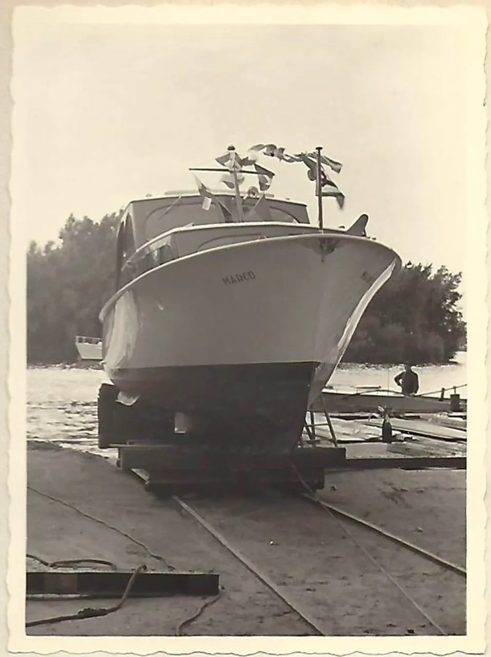 Designed by Cees van Lent and launched in 1956, the 9,50-metre Marco was (re)discovered on the Dutch online marketplace Marktplaats in 2016, hiding in a yachting enthusiast’s shed as a fixer-upper. Purchased by Jolande van Lent, who had just joined Feadship Heritage Fleet’s research committee and felt she needed a boat to match, she approached designer Willem Nieland to restore her by staying true to her great grandfather’s original lines but adding an open cockpit. A year later, in 2017, Marco was back in the water and rechristened Margo in honour of Jolande's grandmother Margo Akerboom.