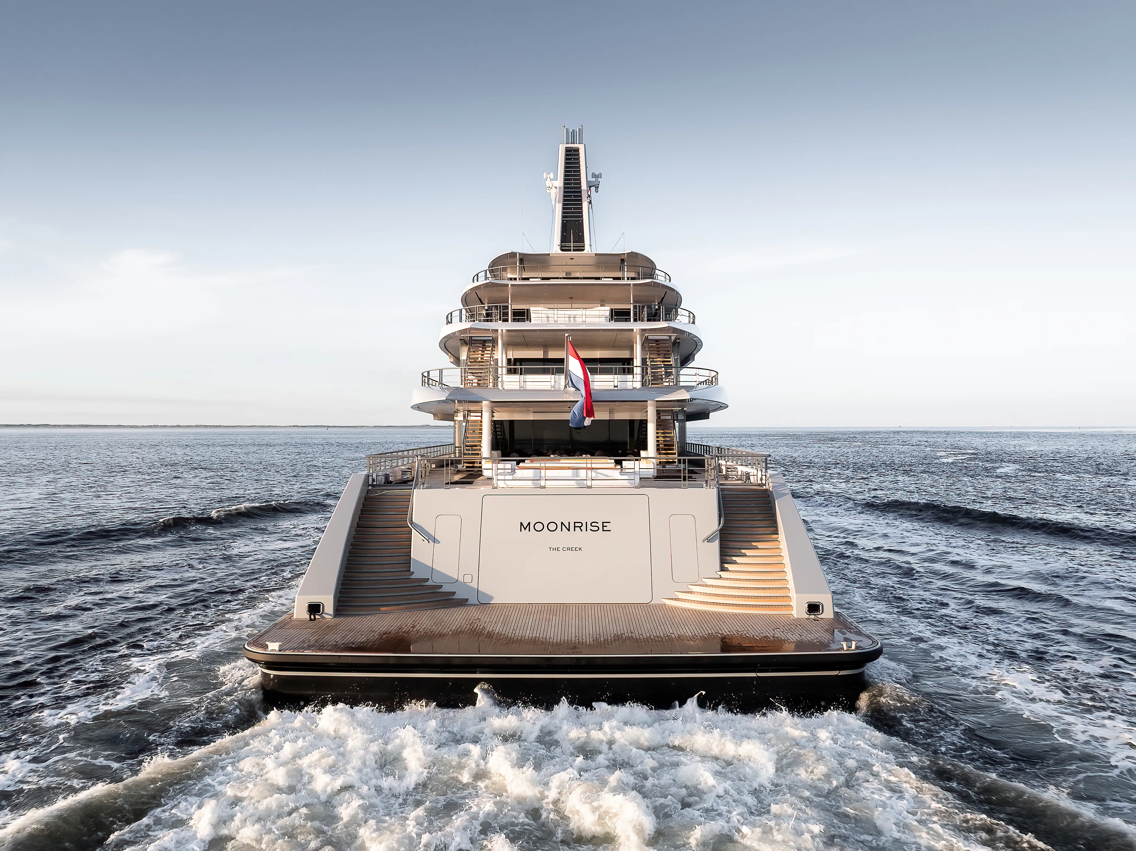 At 101 metres, Moonrise embodies the refinement and innovation that define Feadship. Building on the legacy of her 2020 predecessor, she combines the signature exterior lines by Studio De Voogt with an elegant interior by Rémi Tessier. Her streamlined profile is enhanced by the seamless integration of Starlink connectivity, removing the need for satellite domes. A taller mast and expanded sun deck provide space for a massage area, gym and hairdressing salon, while extended decks and a generous swim platform further enrich the outdoor lifestyle. Inside, a dedicated owner’s deck and private cinema add to the sense of exclusivity. With optimised naval architecture, reduced underwater noise and pioneering resilient-mounted systems, Moonrise offers exceptional comfort and technical sophistication.