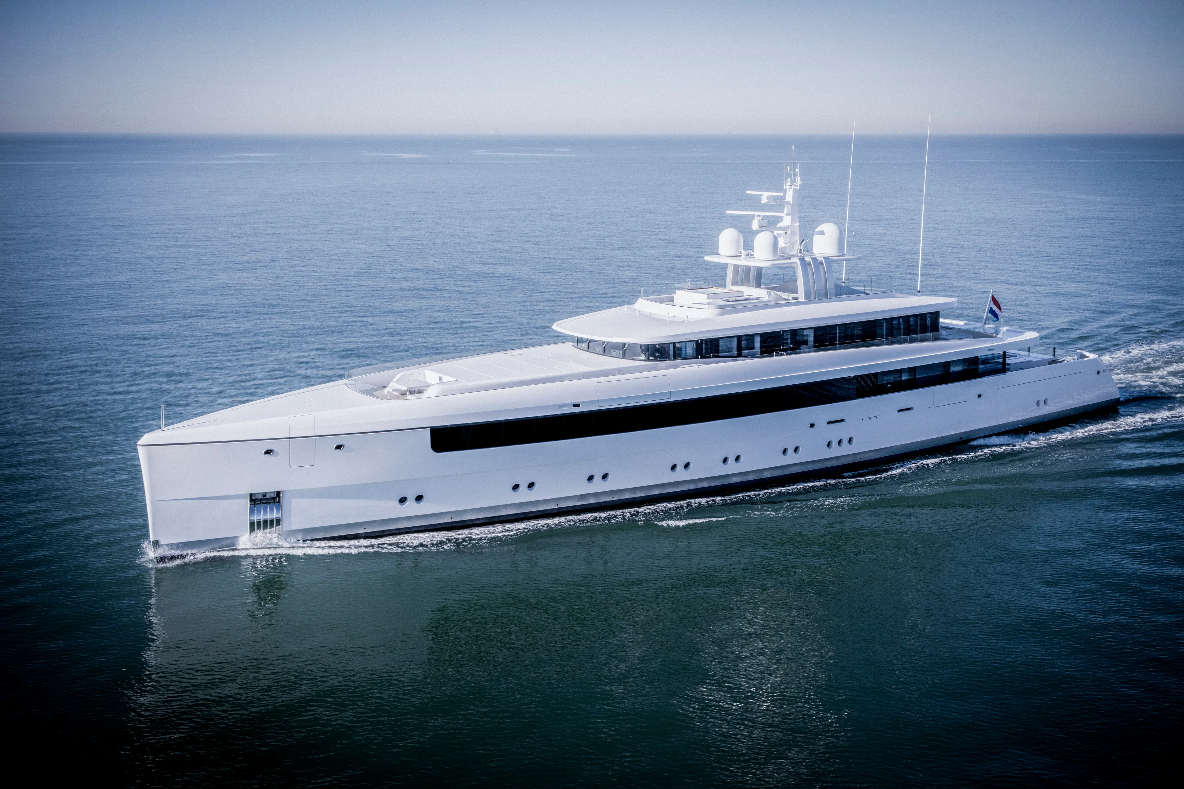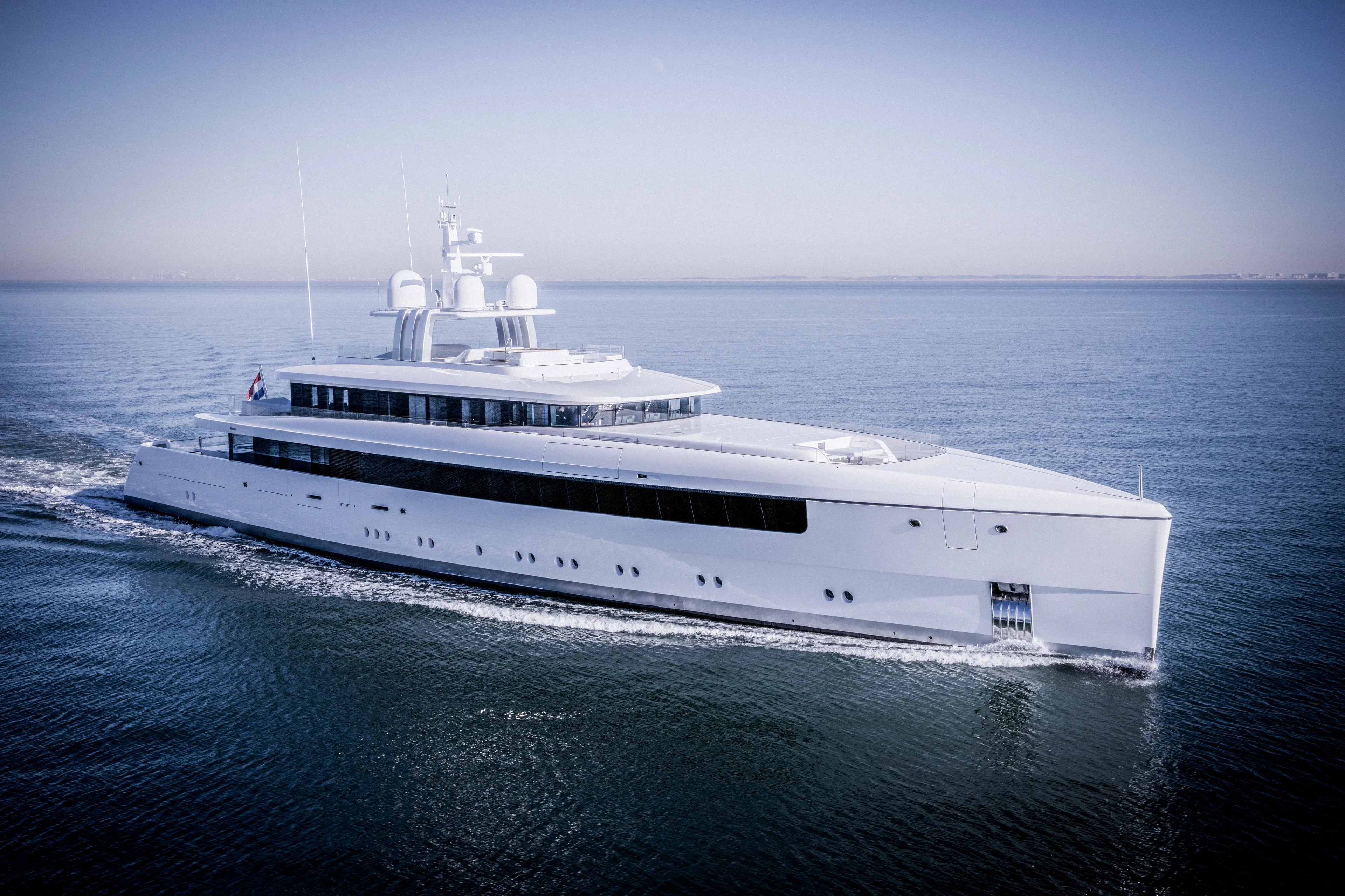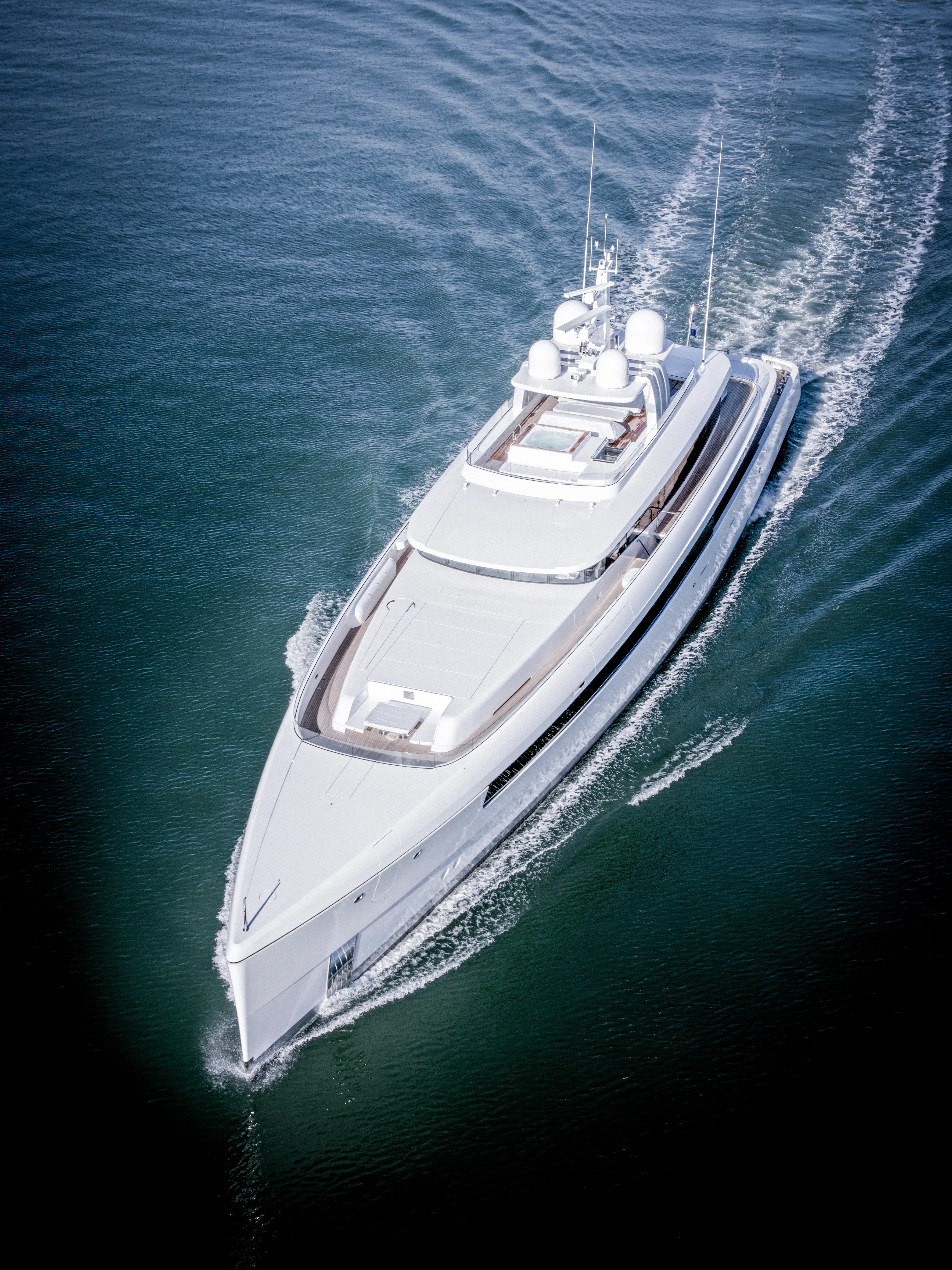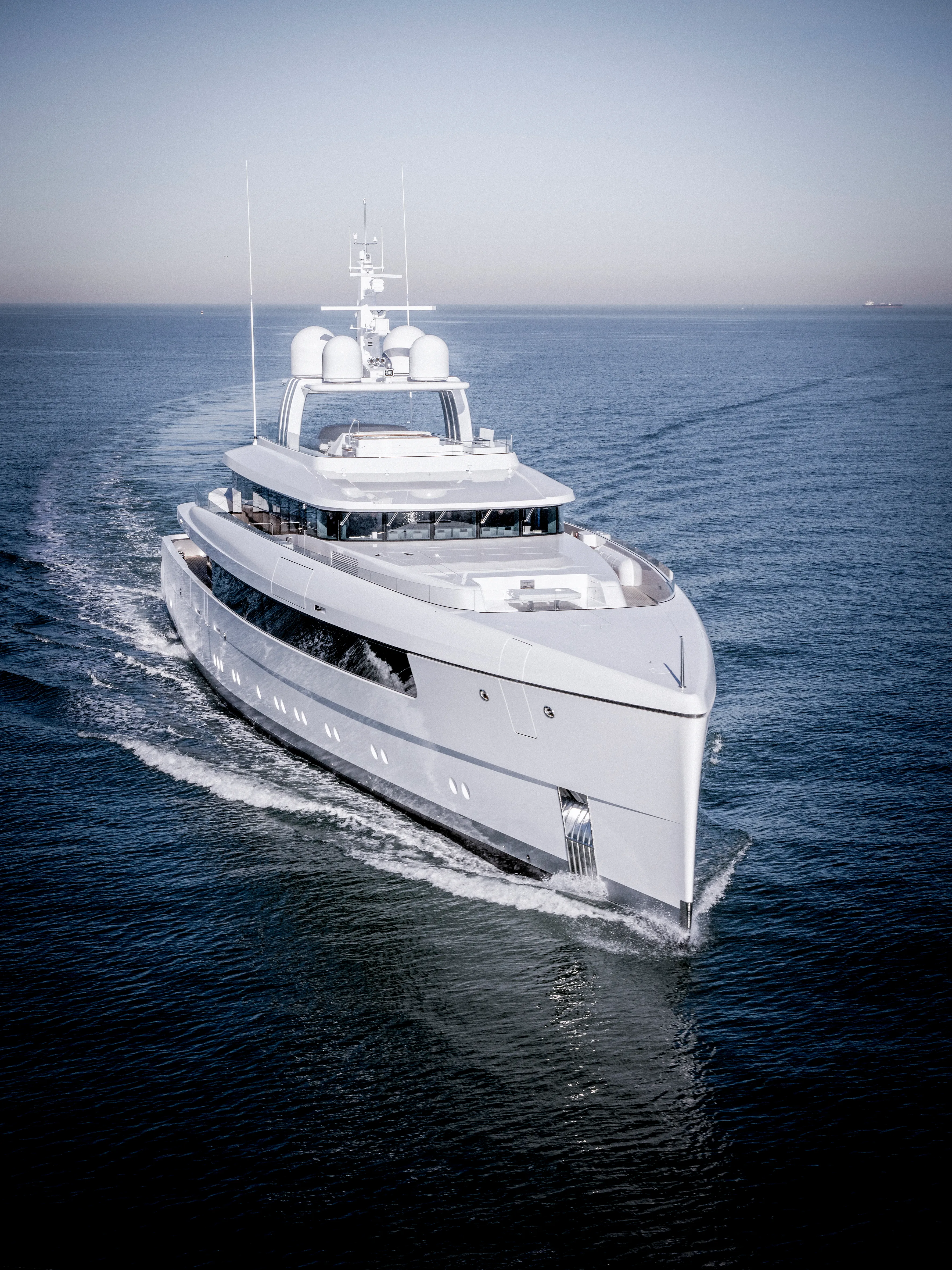 With a name that translates into ‘noble’, the distinguished and elegant 58.00-metre Najiba certainly lives up to her name. Designed as a family superyacht for experienced owners, she blends sleek and minimalist exterior lines with a detailed, high-end interior with a highly original layout that includes two master staterooms. An open plan arrangement on the main deck – with no central staircase area blocking the vista – allows for views all the way forward through one of those staterooms (when open) to the bow.