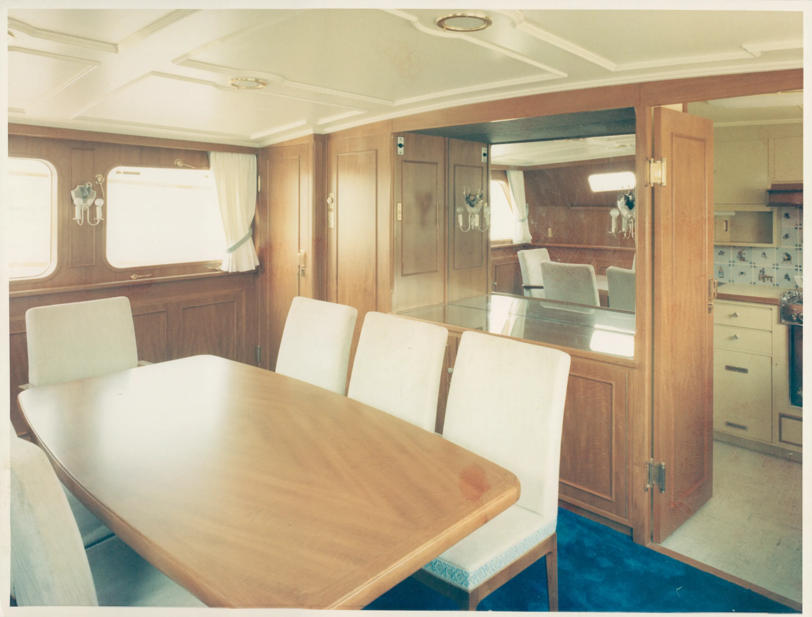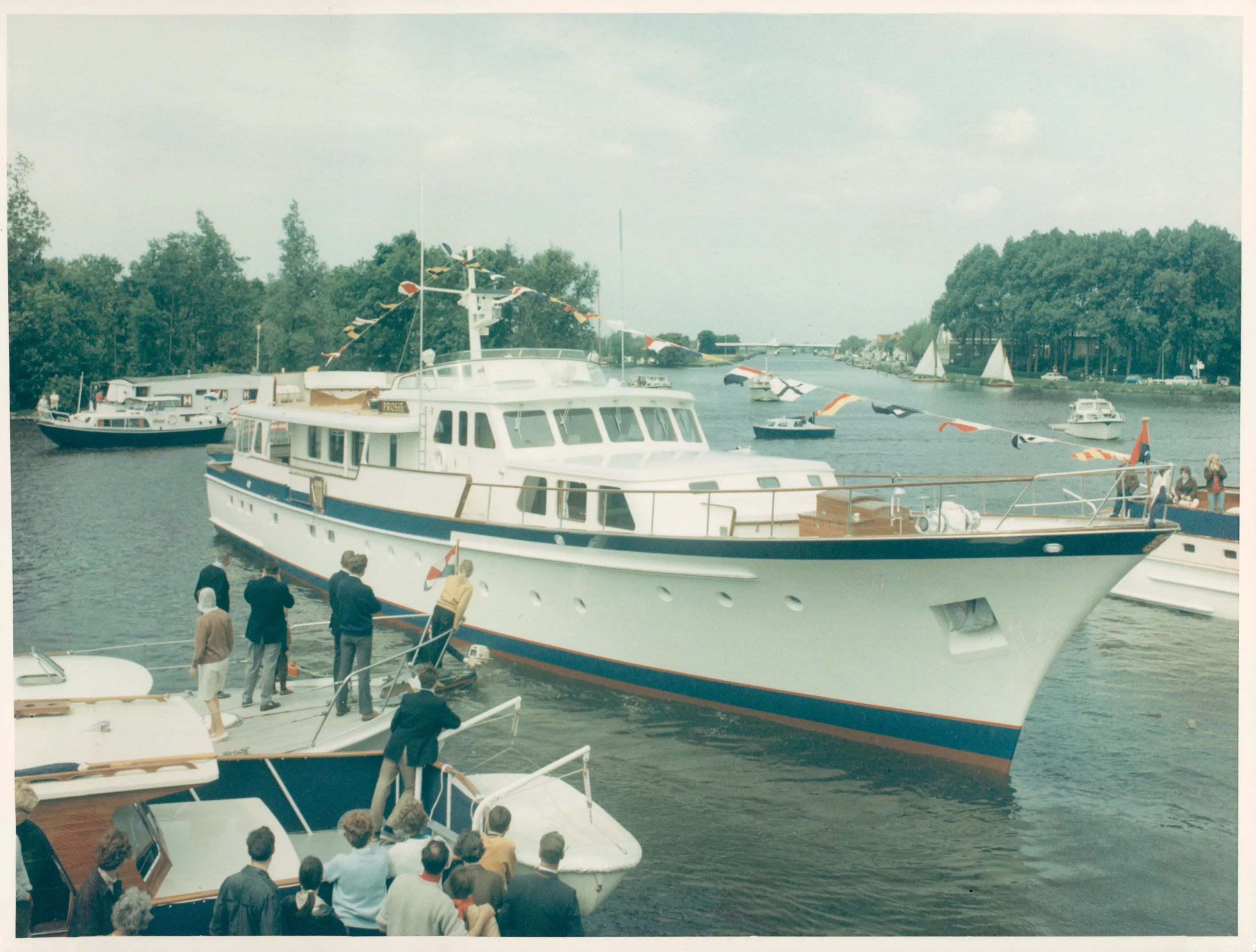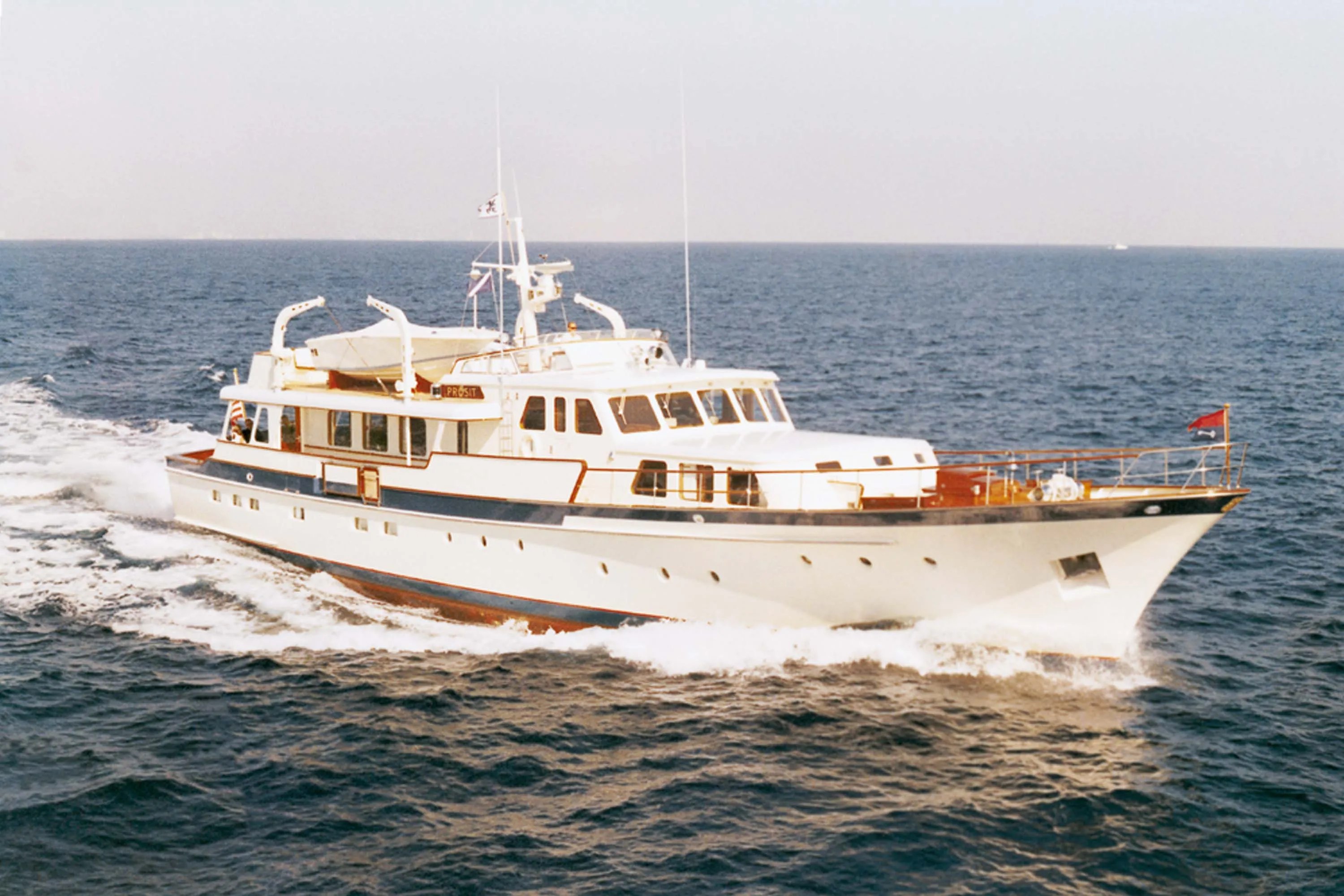Launched in 1969, the 36.81-metre Intent was primarily intended as a family boat. Particular attention was paid to the layout, furnishings and equipment to ensure a genuine homely feel in the lounge, owner's stateroom and four double-bunk cabins. Along with the 36.80-metre Intent, Prosit was one of the first yachts to cross the Atlantic under its own power rather than being delivered by the Holland America Line.