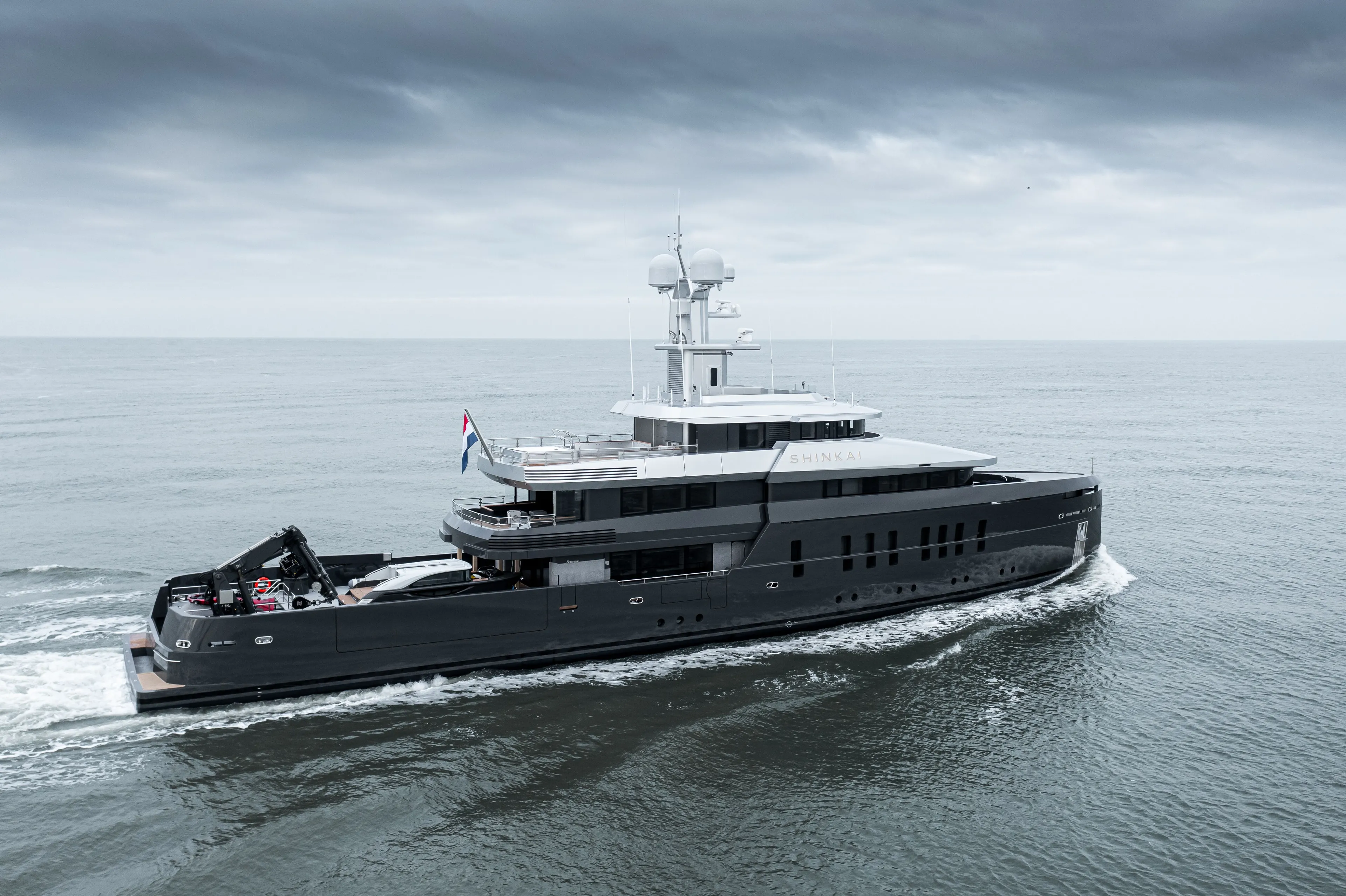 A striking mast and her own submarine were just two of the specific requests by an owner who has enormous experience of discovering the world by sea. Like every genuinely custom superyacht, the design for Shinkai revolved around how best to incorporate a 7.2-tonne submarine on the aft deck along with the giant crane required for launch and collection. Taking this as the starting point, Vitruvius and Feadship developed a 54.90-metre explorer yacht capable of remaining self-sufficient and fuel-efficient while travelling the world.