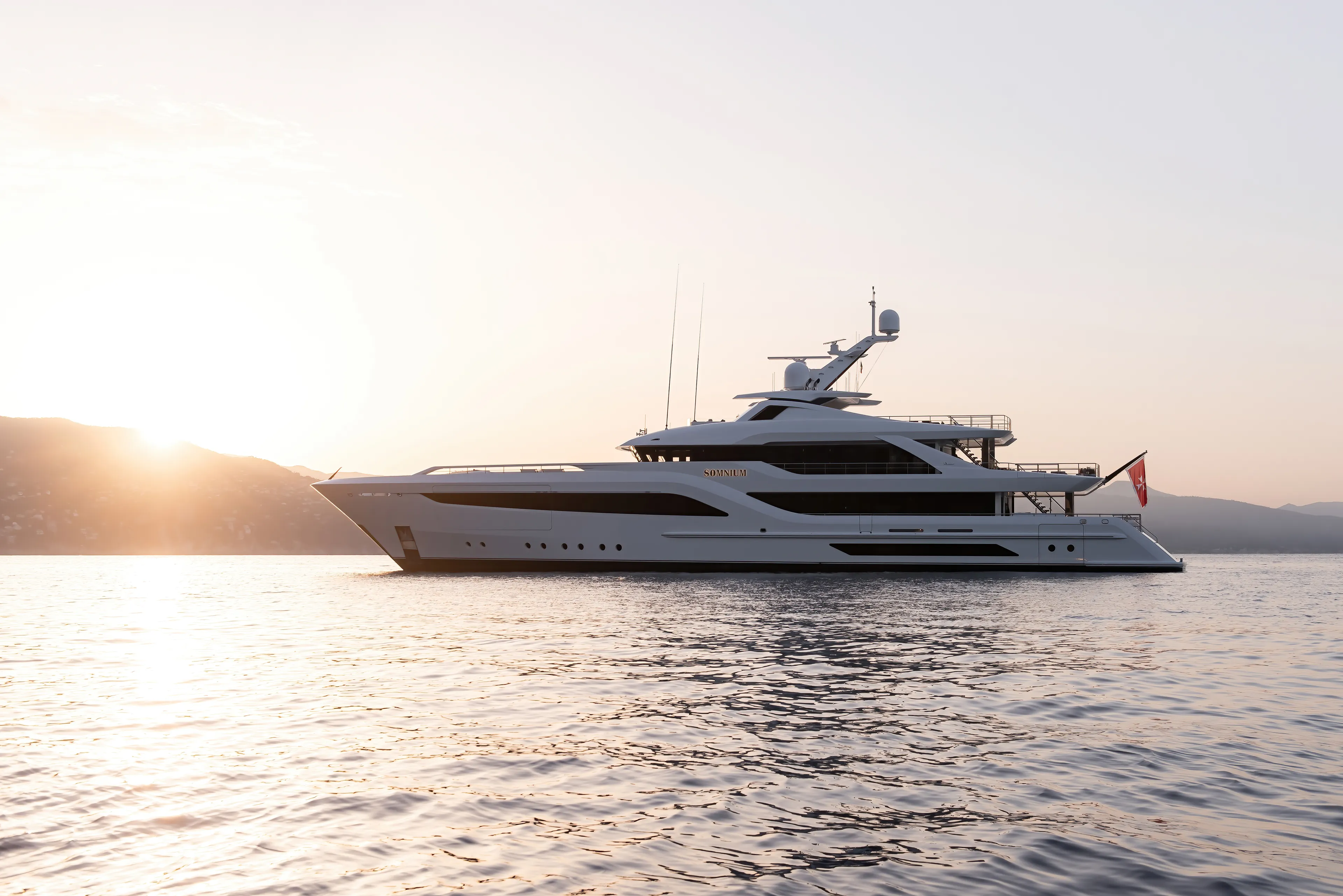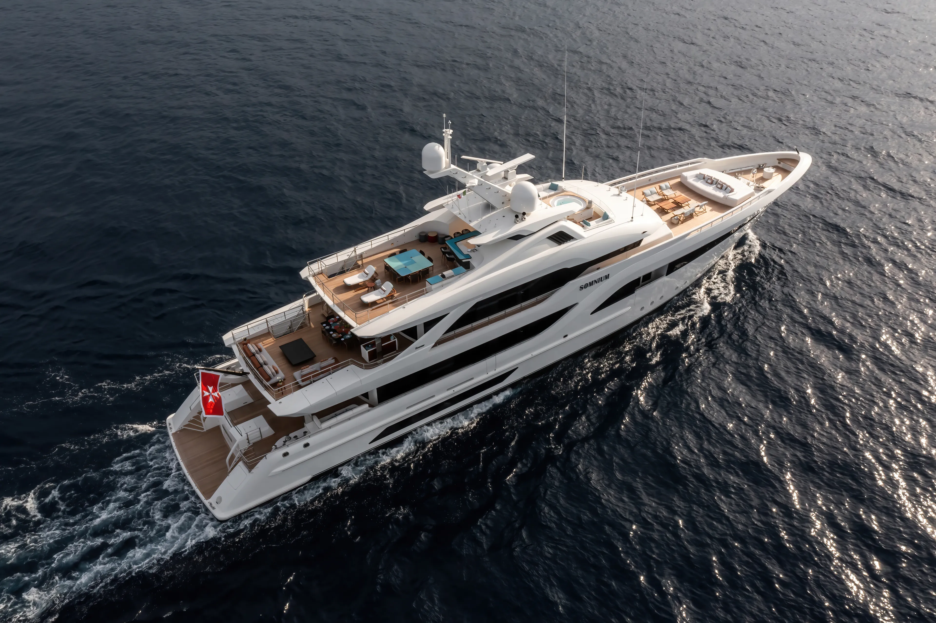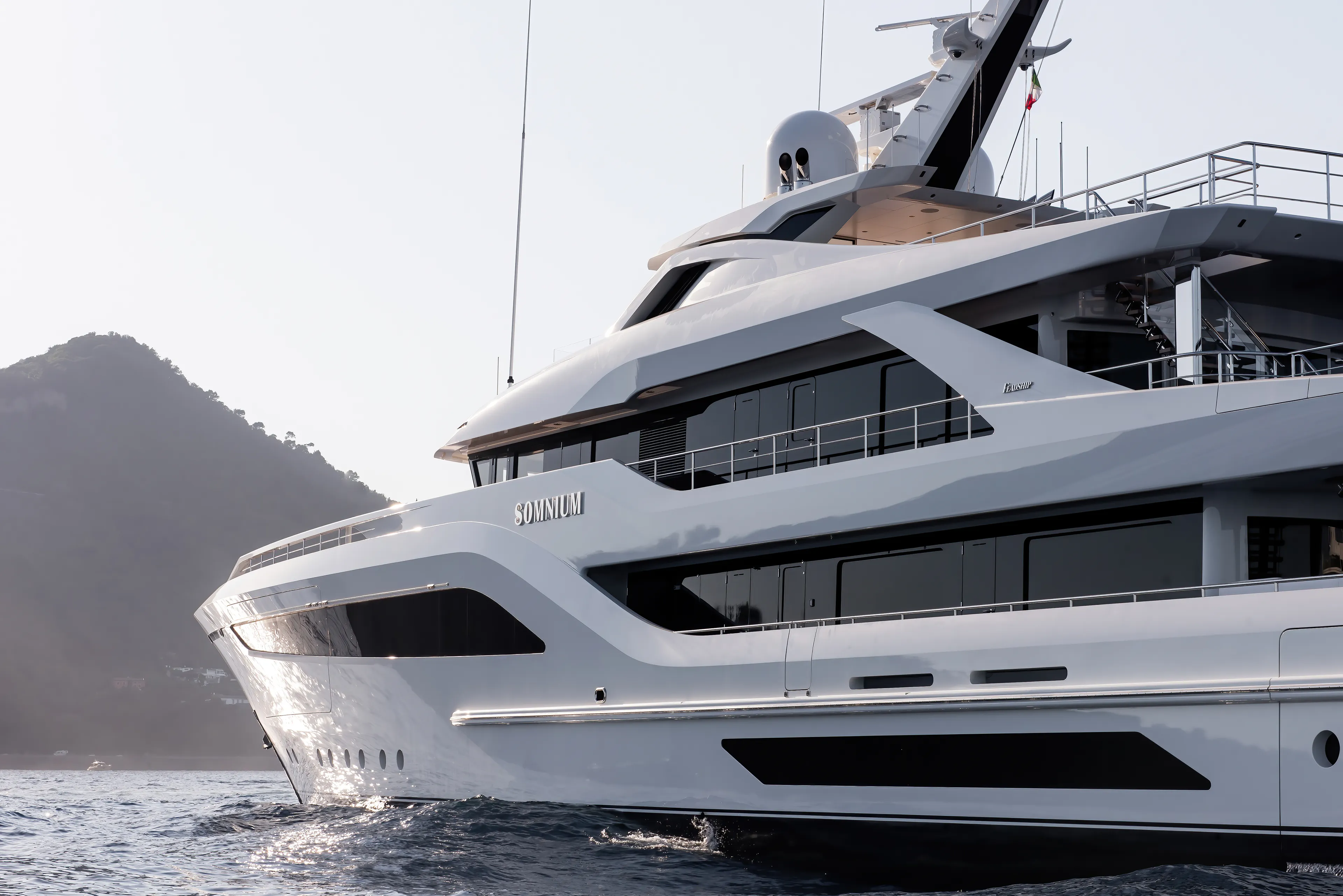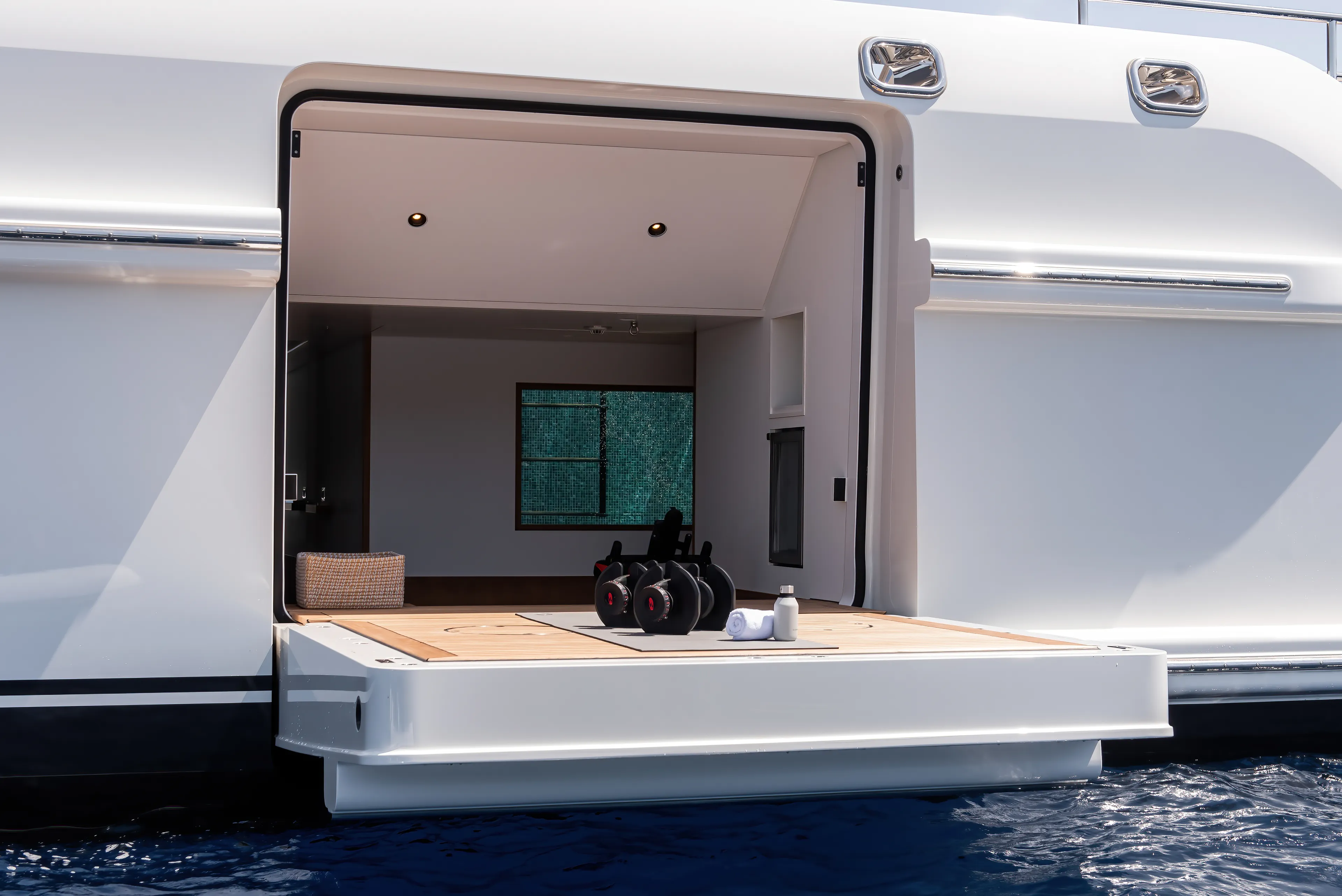 Designed by Studio De Voogt with a beautiful interior design from FM Architettura, Somnium’s aluminium hull enhances efficiency and ensures the shallow drafts required for exploring at will. Once anchored at their destination, the family can access all the benefits of an enclosed tender garage and dedicated dive equipment store. Somnium’s vast outside decks include an exclusive lounge area on the foredeck, a pool with adjustable floor and contraflow on the aft deck and an inviting Jacuzzi island on the sun deck. Interior highlights include a gymnasium with a fold-down platform and a full-beam owners stateroom with a balcony.