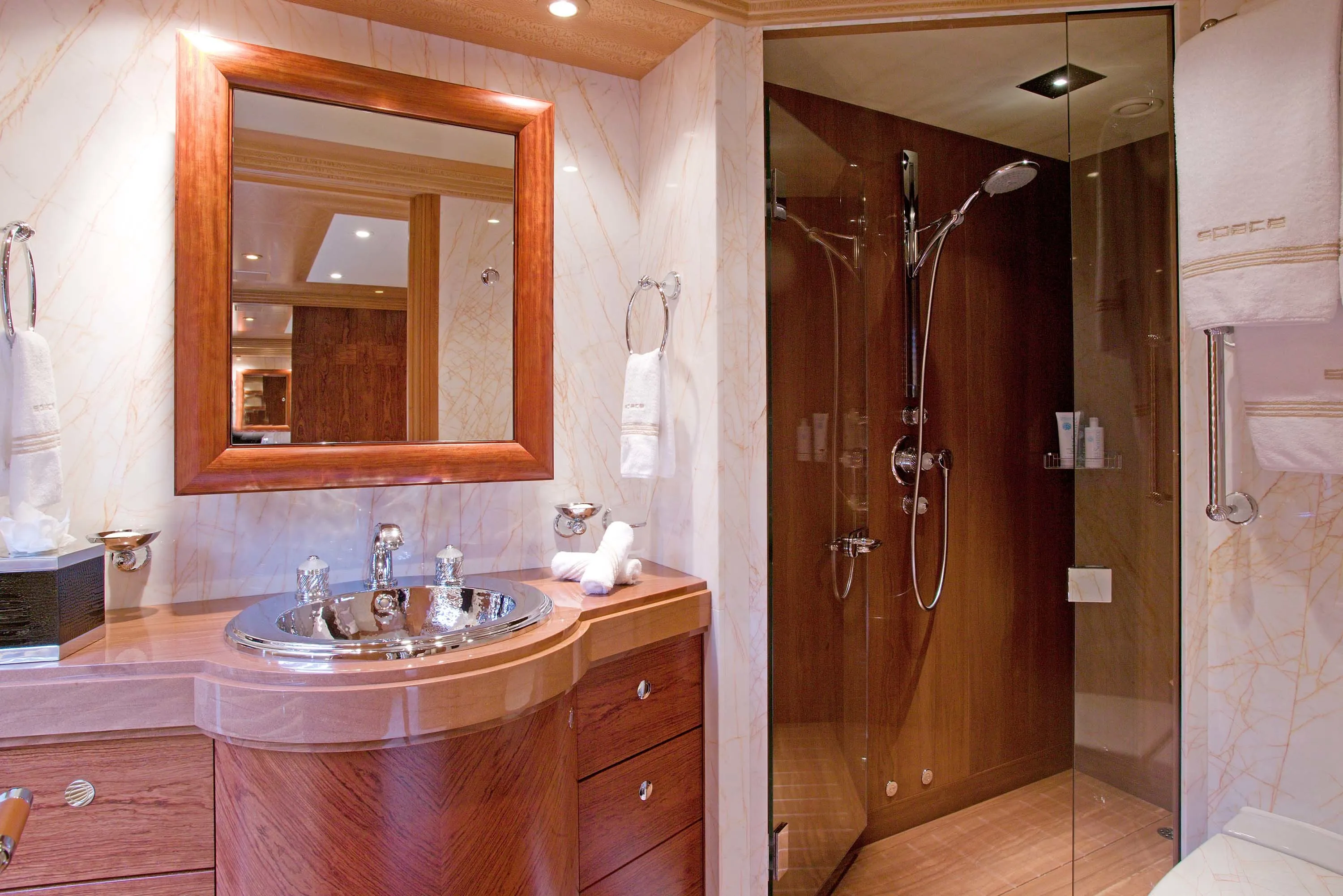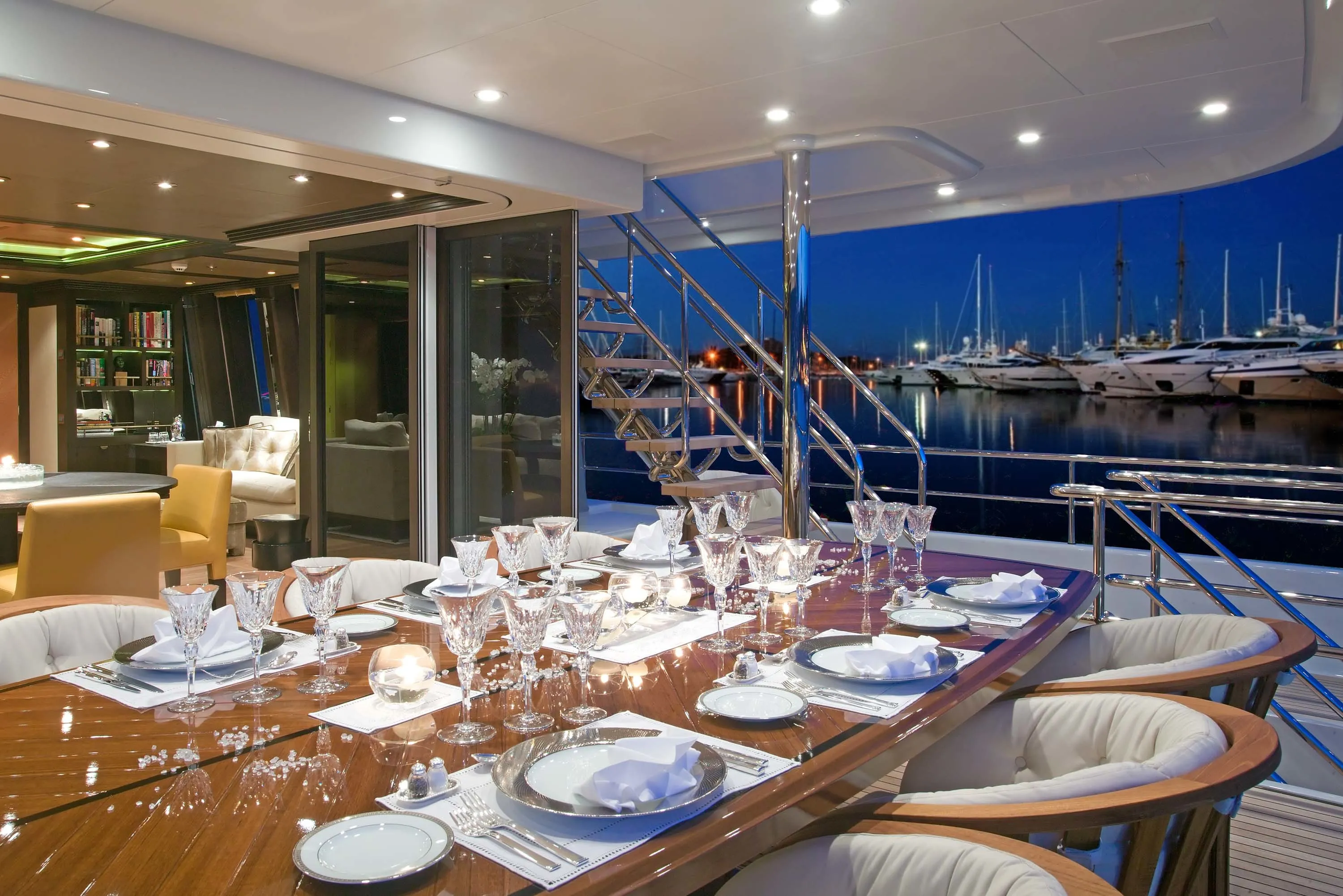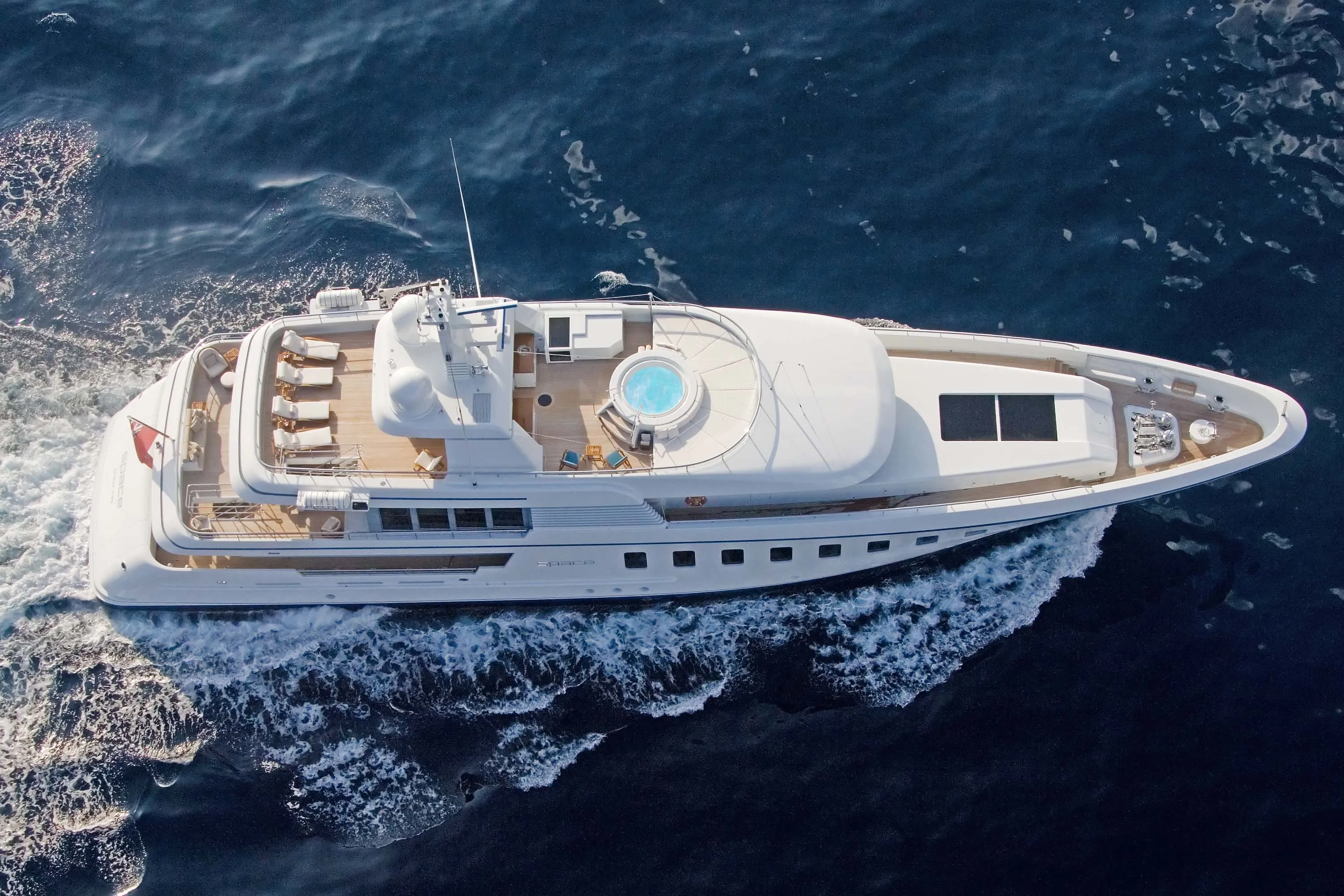 Launched in 2007, Space is the first of six F45 Vantage motoryachts designed and built between 2007 and 2008. Developed by De Voogt Naval Architects and Snot Design Associates, the series enjoys some infamy at Feadship for being one of the few moments in history that Feadship ventured beyond full-custom yachts. As the first in the series, Space became its flagship vessel, and the owner embraced his first-mover status by personalizing the design with a remarkable central circular glass staircase with polished stainless-steel frame and illuminated glass steps. In 2024 she returned to the Kaag yard for a comprehensive refit.
