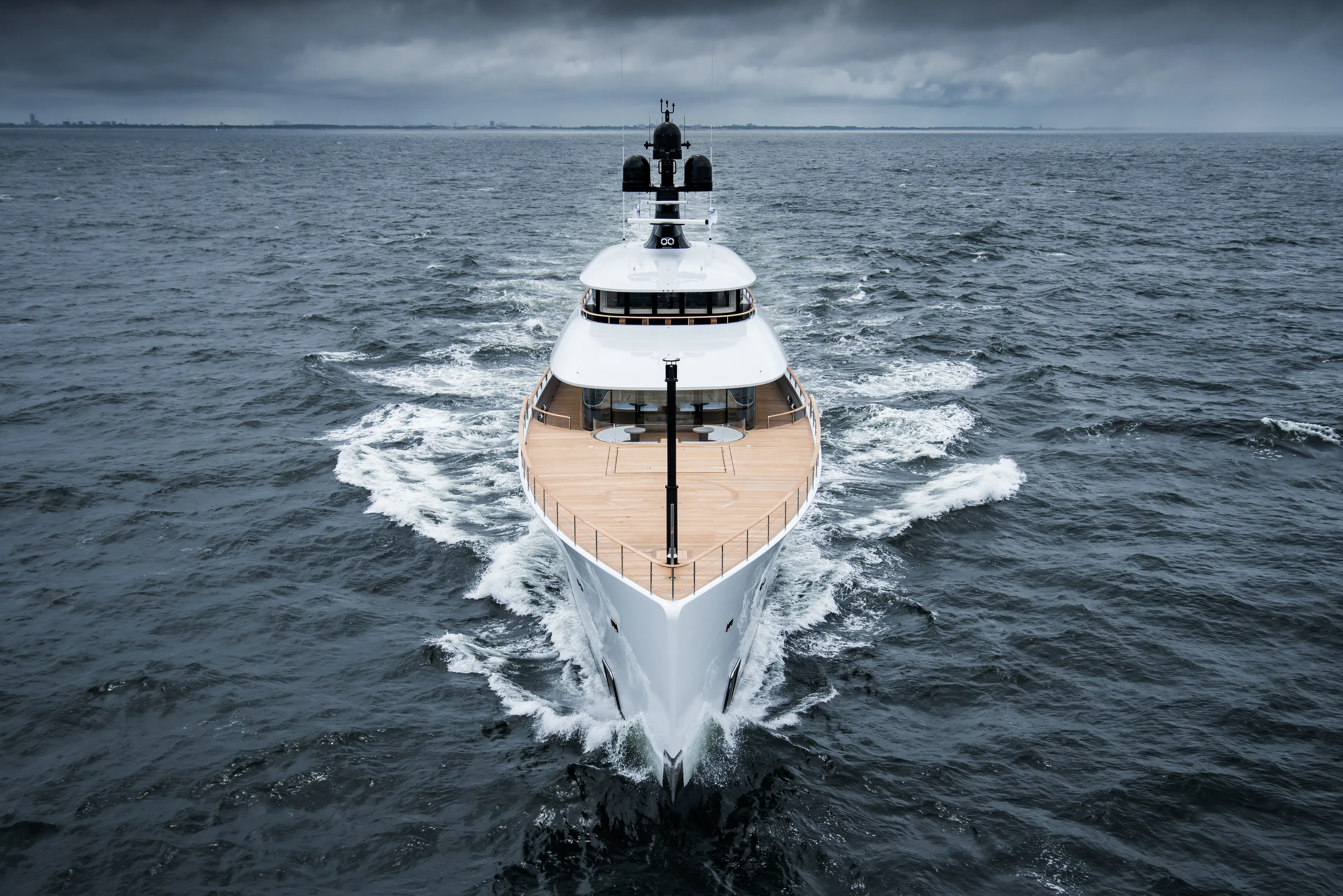 The evolution in the way glass is deployed as part of a yacht’s construction reached a new pinnacle with the unveiling of SYZYGY 818. Her all-glass envelope is an astonishing feat, not least because the giant slabs of perfectly clear glass are both vertically and horizontally curved. What’s more, every piece has a unique mathematical form of its own, ensuring a flair of the highest possible quality. Bringing the outdoor environment into intimate contact with the interior, all the glass panels are part of the watertight integrity of the yacht.