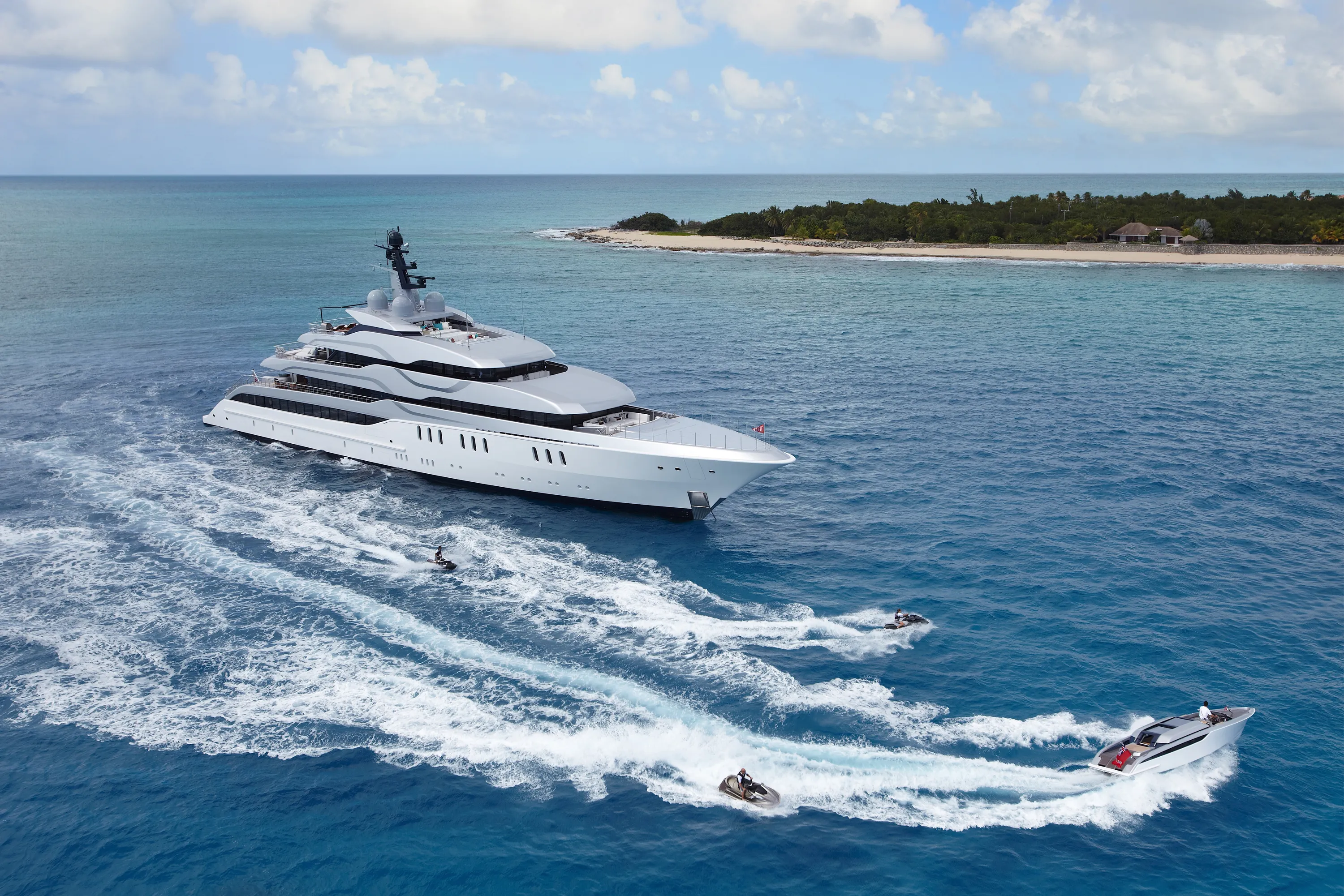 A very distinctive styling makes the decks of Tango’s aluminium superstructure seem to float on a sea of virtually full-height glass. The way the signature lines reflect in the water is highly impressive, as is the alignment of the knuckle line on the horizontal plane of the dodgers throughout the boat. Other signature aspects of this design are the shadow lines and recesses on the superstructure – which were very complex to create – and the deployment of metallic grey and blue paint on an unprecedented scale.