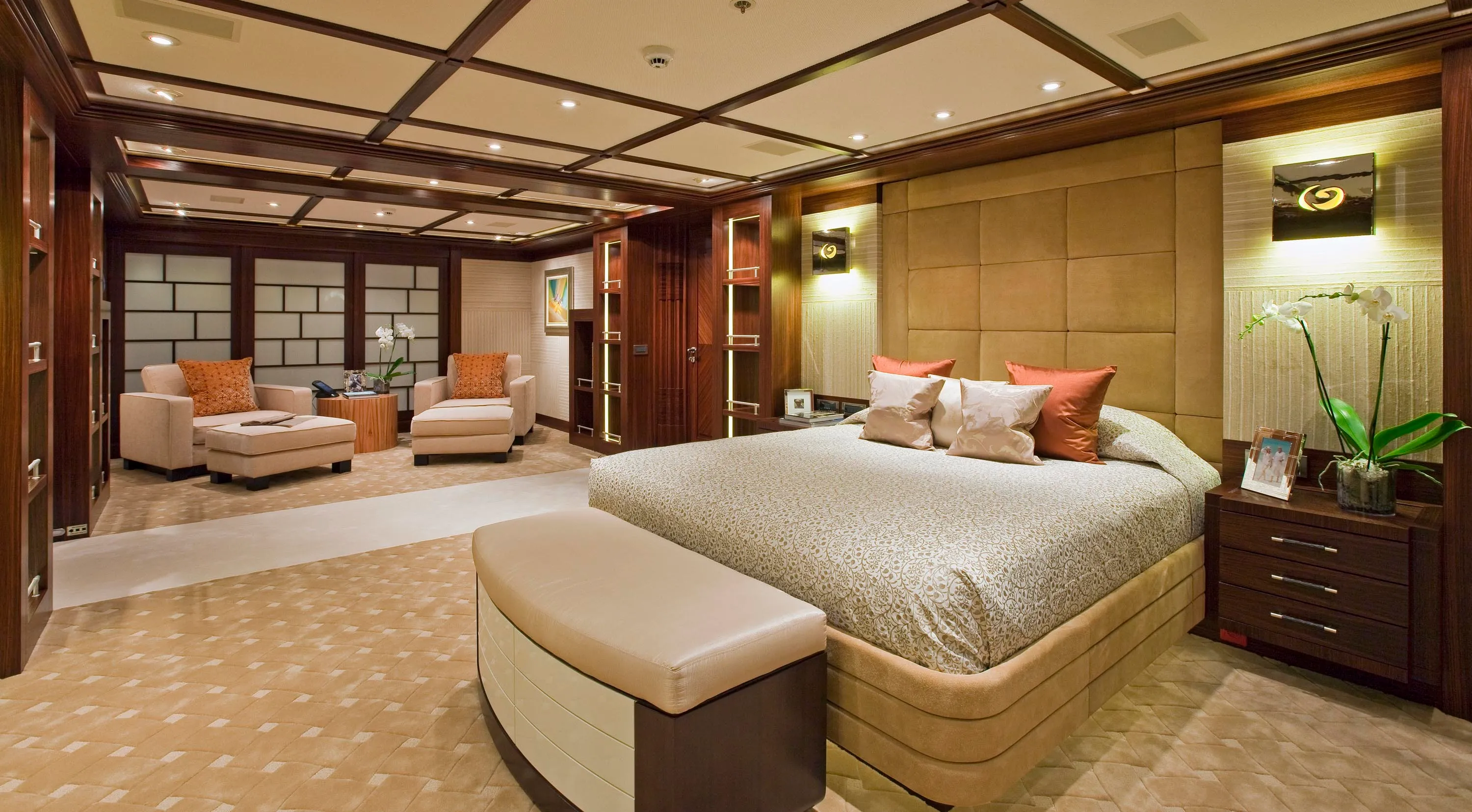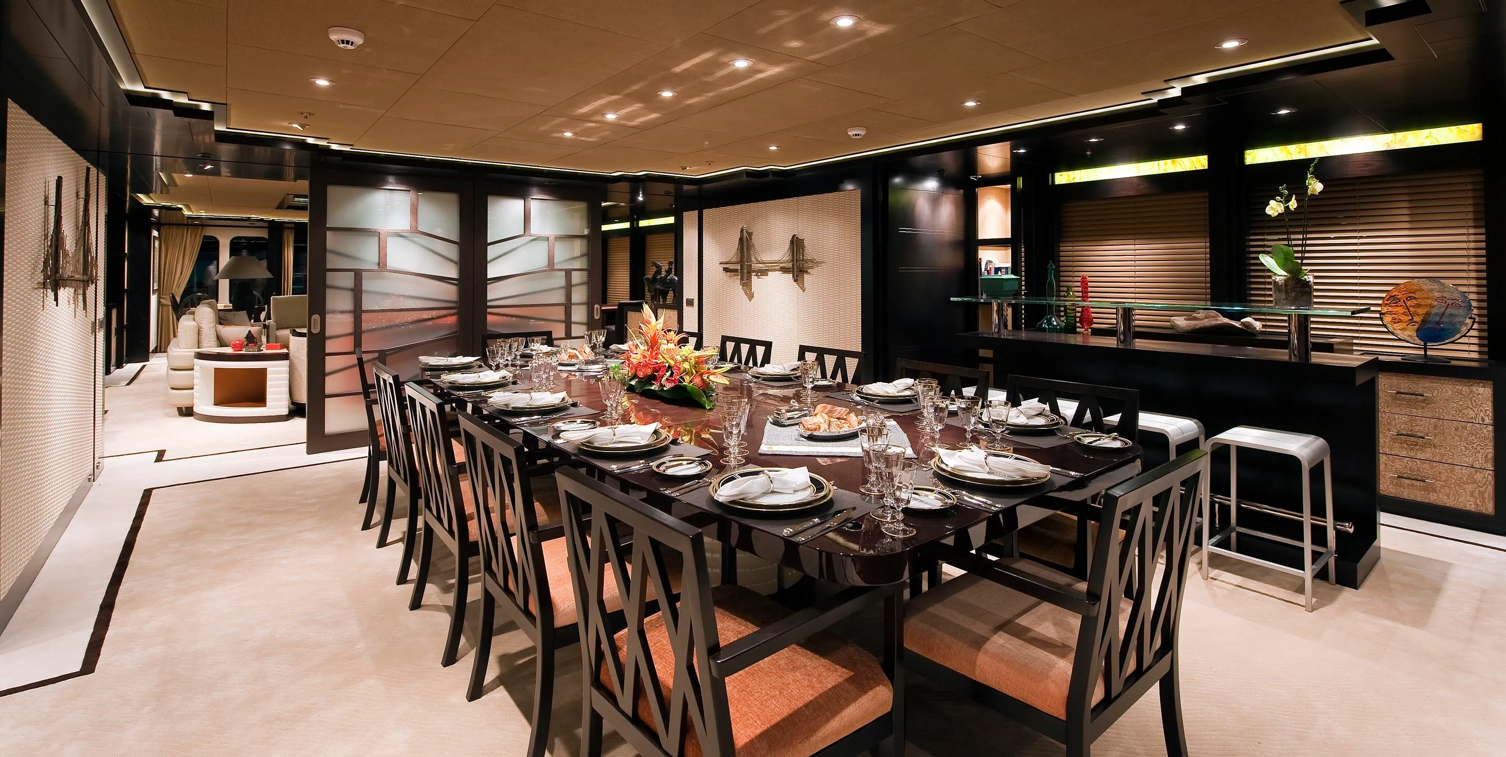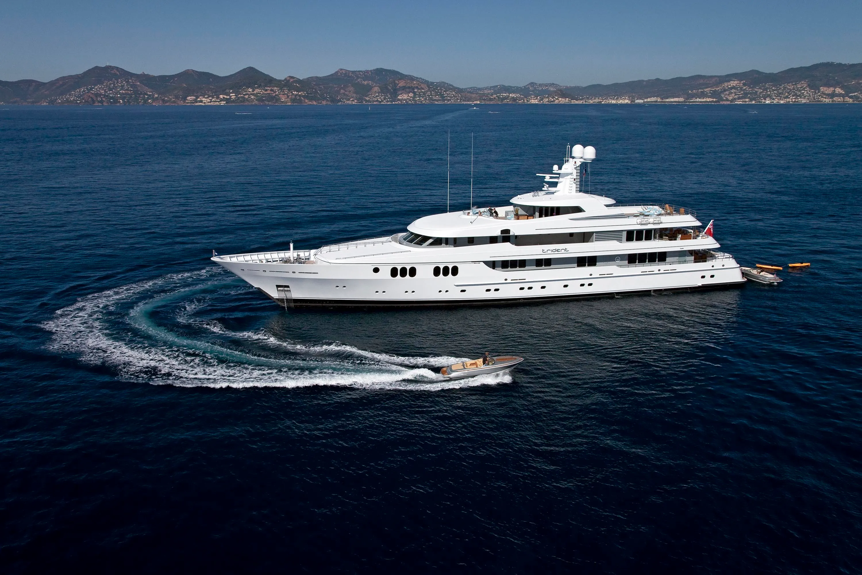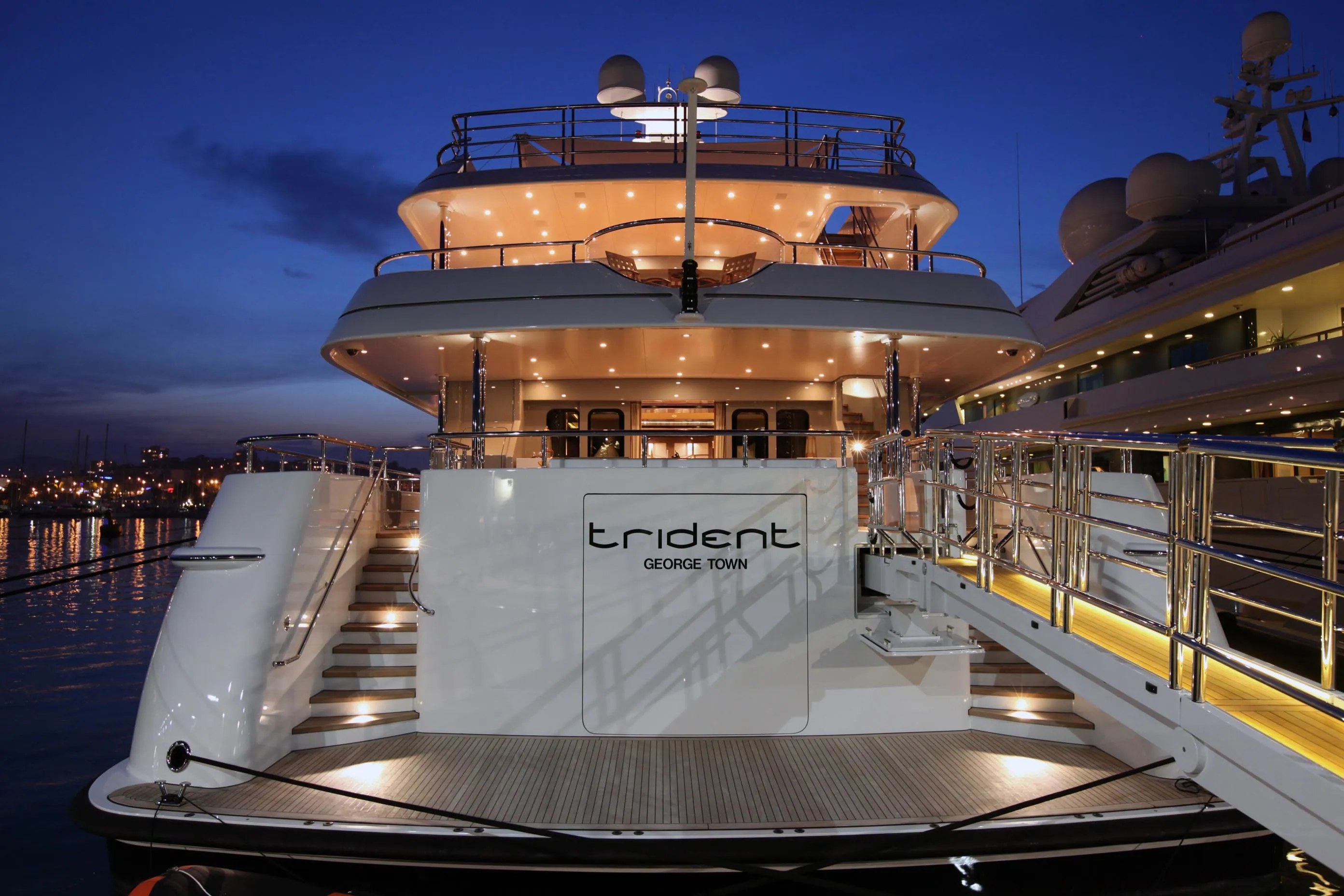 Trident blends a classic Feadship flared bow with modern touches such as semi-circular extensions with glass bulwarks on the aft decks. A visual connection between the three decks is provided by fashion plates on the stern, while Trident’s elegant wings bring a bright look and feel to the upper part of her profile. Along with a fabulous full beam master stateroom, the yacht offers superior accommodation to owners and another twelve guests in seven luxurious suites. The exquisite interior features exotic woods and rare marbles, synthesised with elegant combinations of white washed and high gloss finishes.