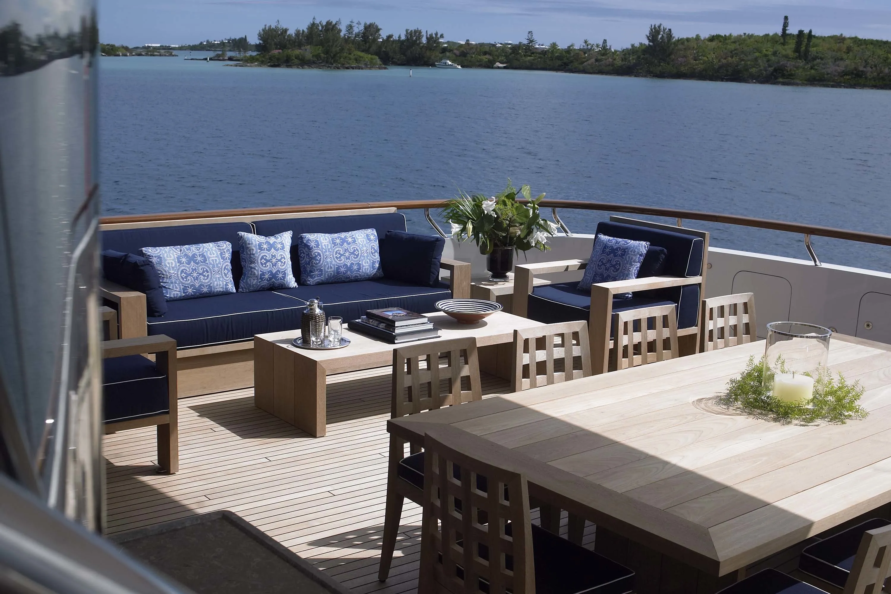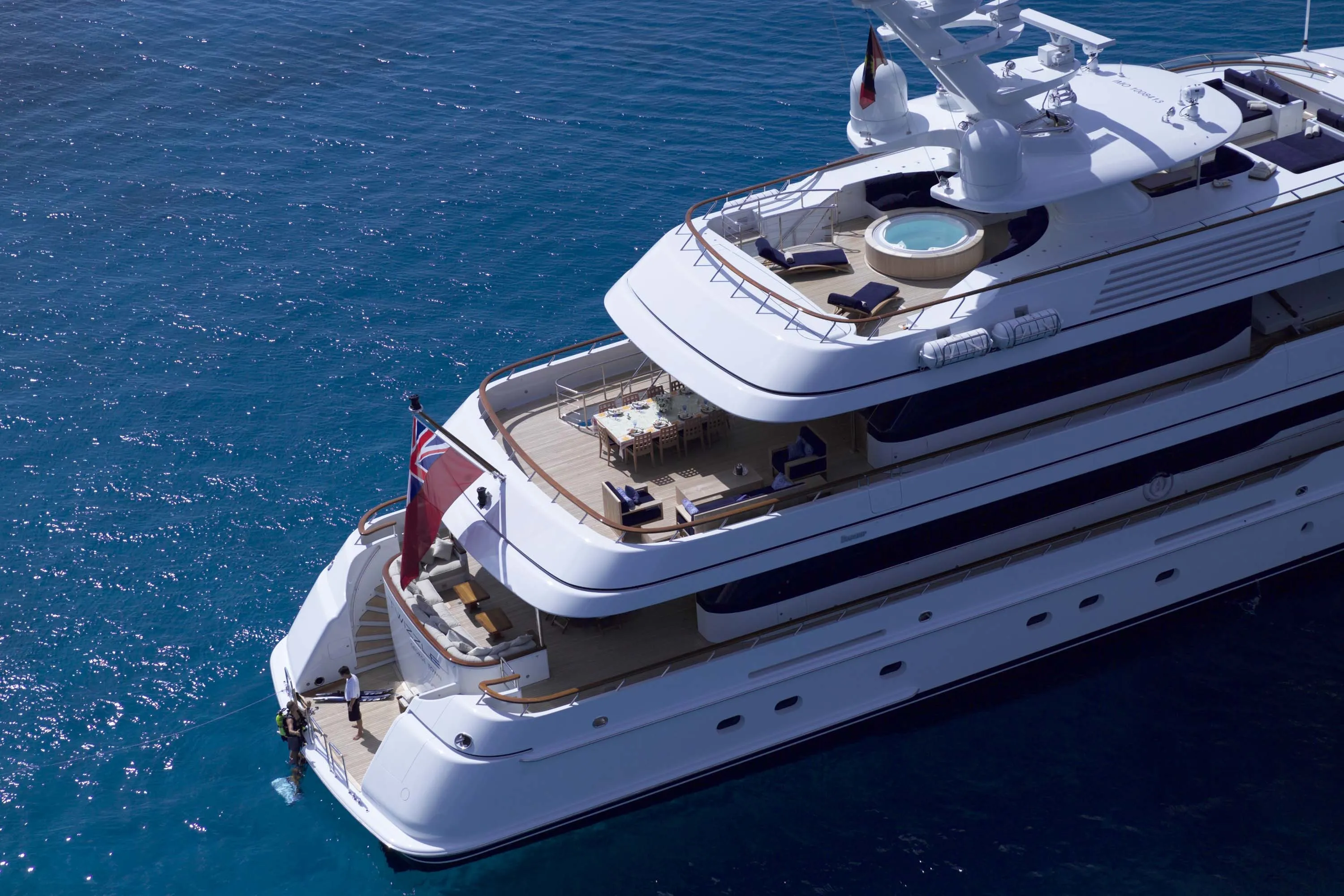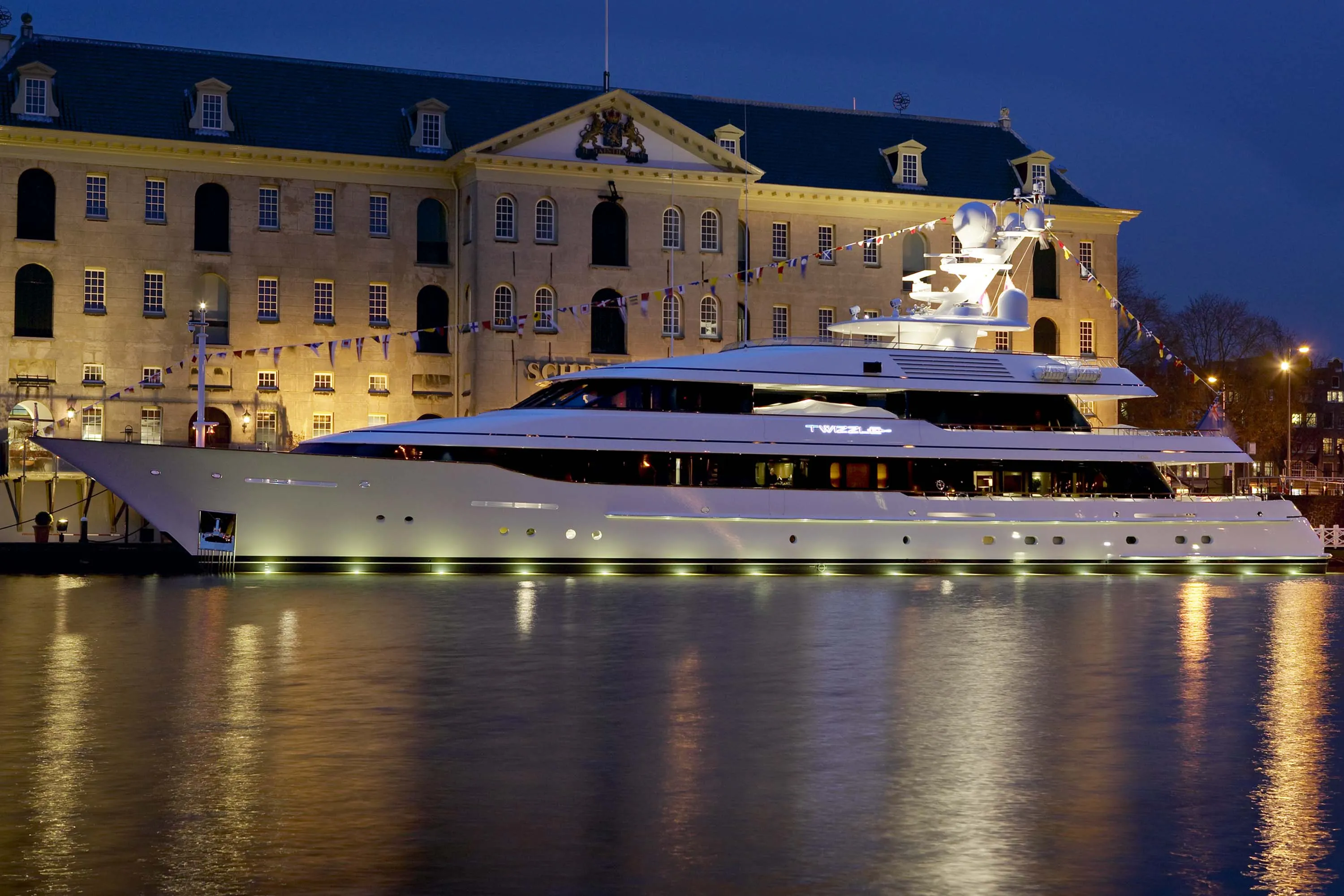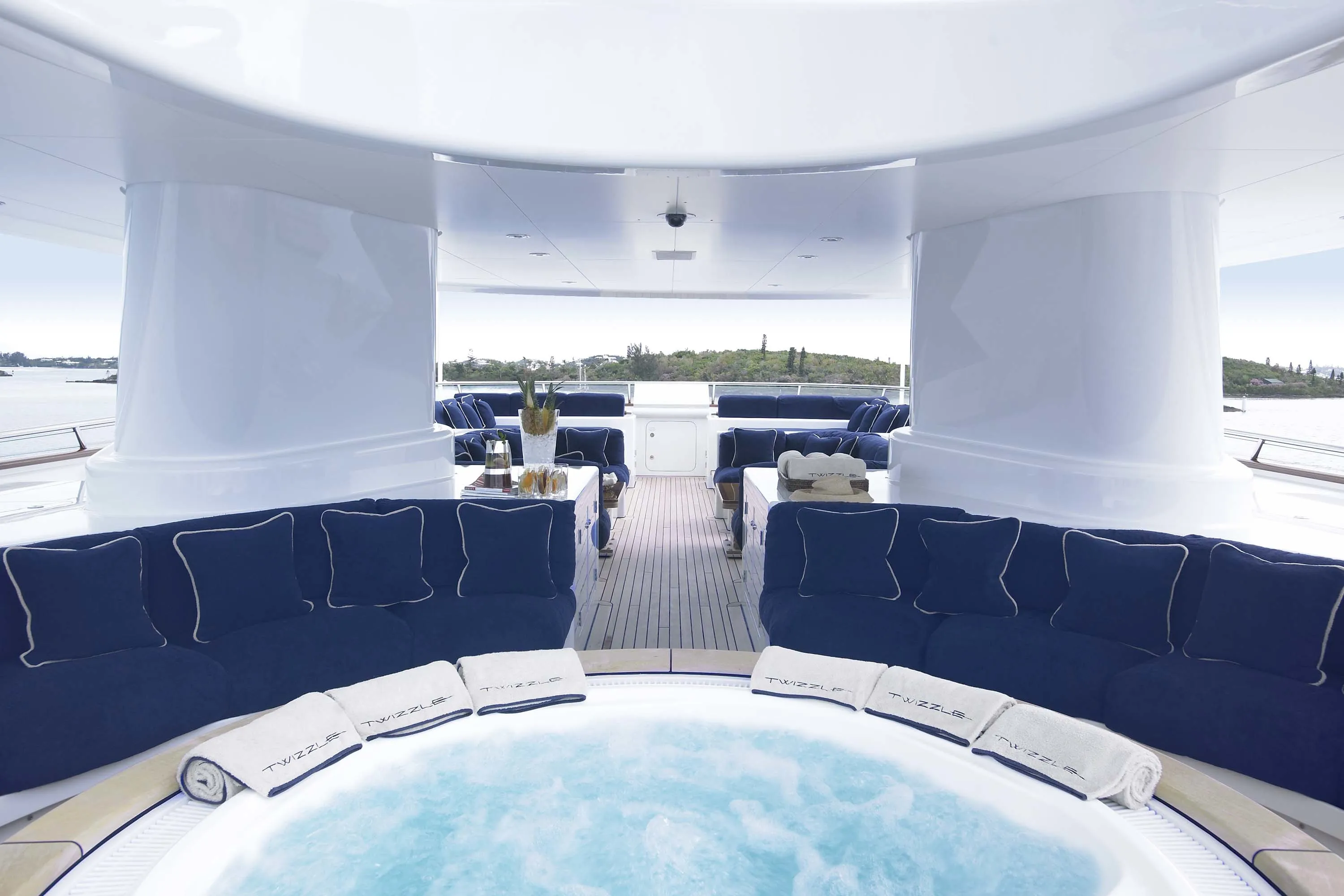 In keeping with the finest Feadship tradition, the 55.50-metre Twizzle is a stylish amalgam of classic features and modern shapes. Her superstructure has a low profile, while the modest interior volume allows a full walk-around deck and multiple outdoor seating areas. The large and well-equipped entertainment spaces aft of the main and bridge deck lounges are the height of al fresco living. Her continuously straight sheer line generates a highly modern impression, while the royal blue of the superstructure emphasizes Twizzle’s dynamic overall appearance.
