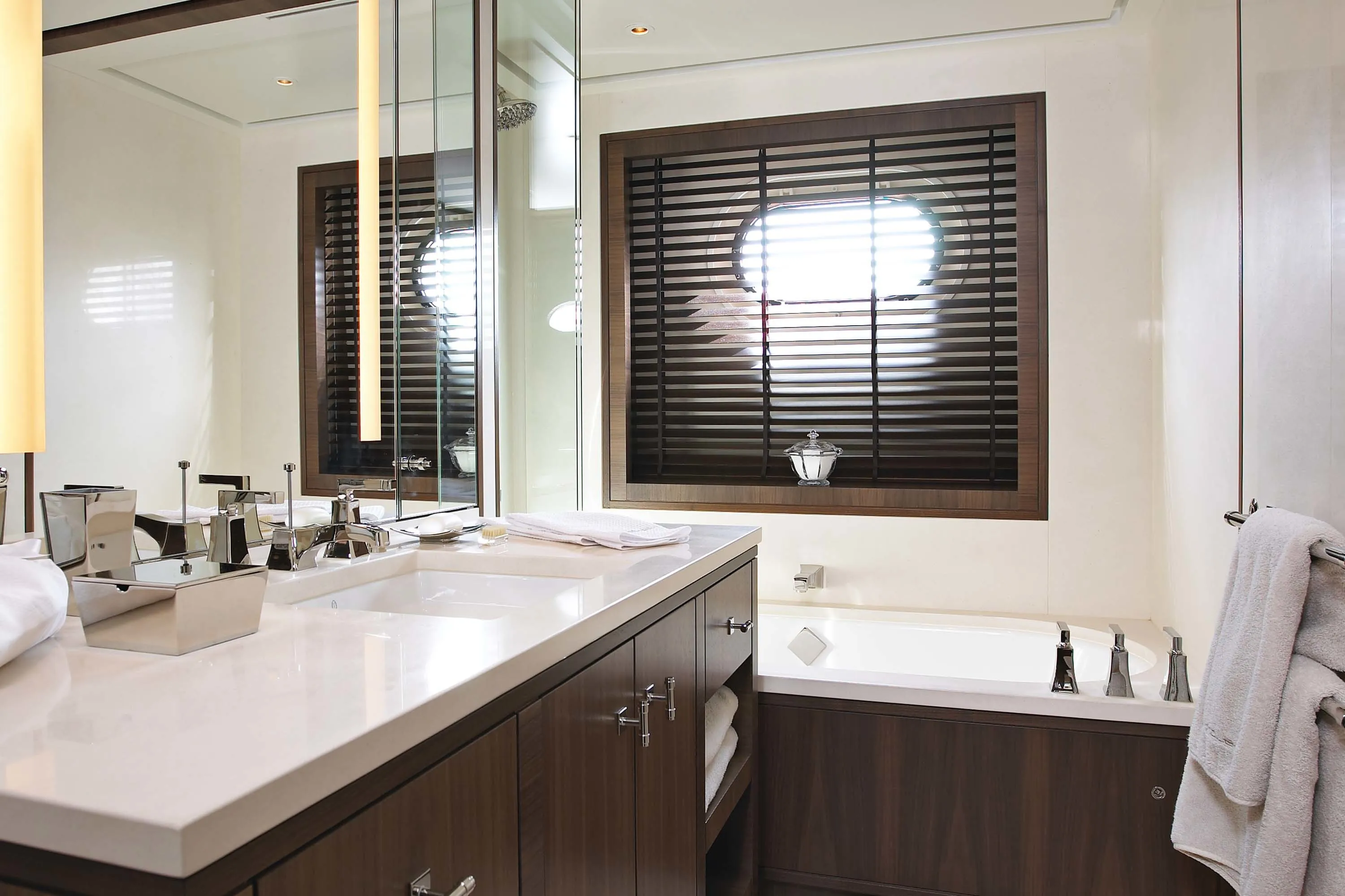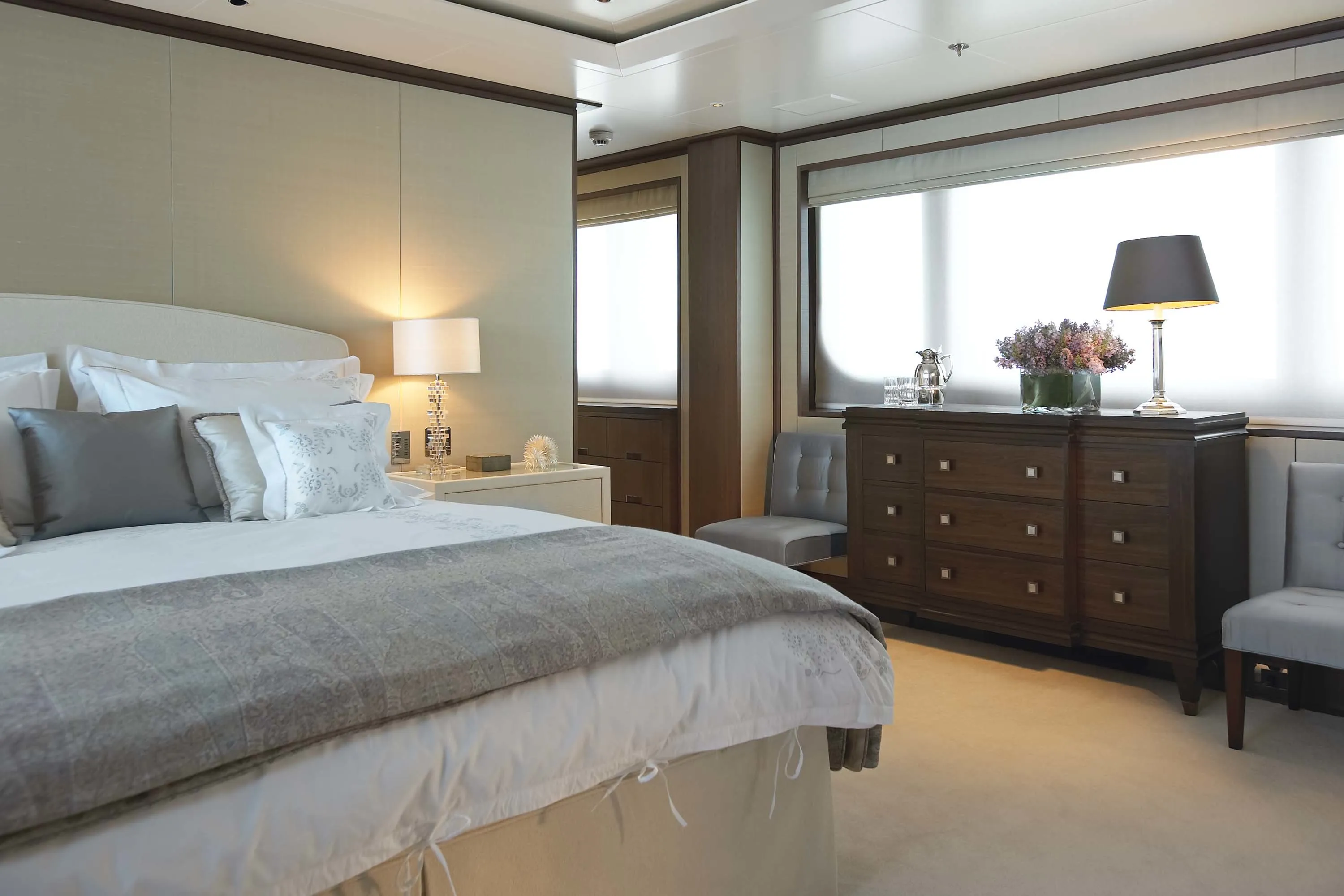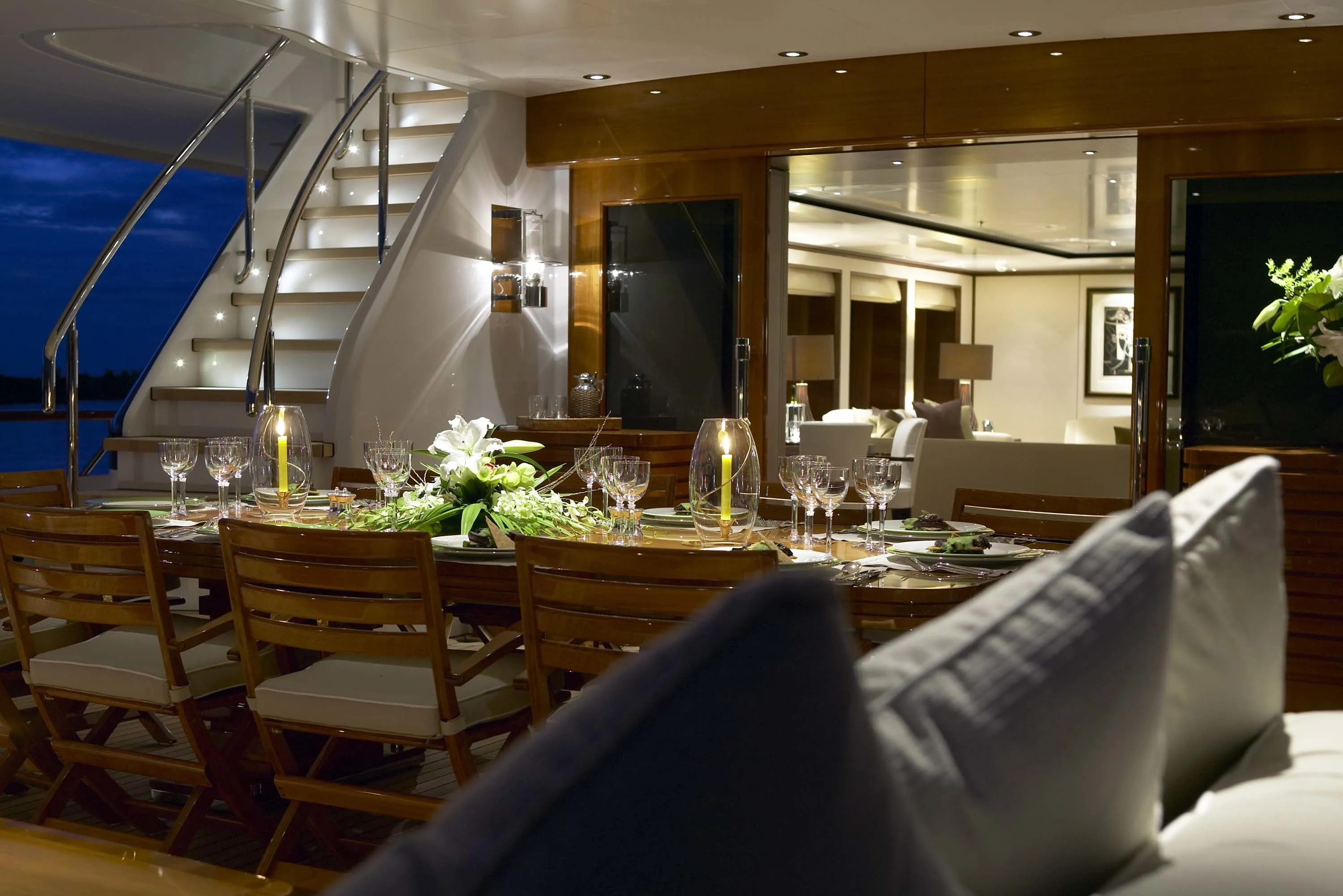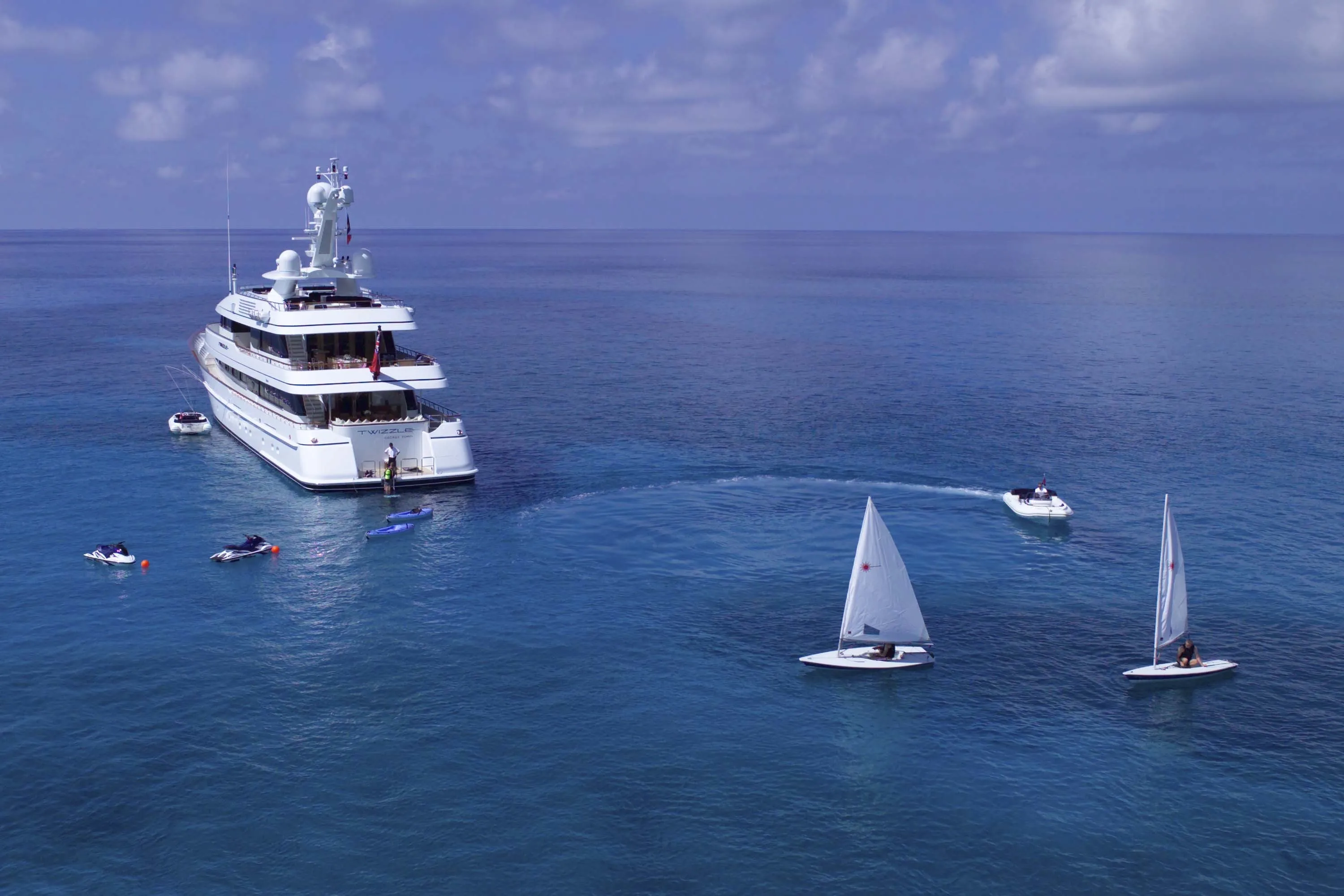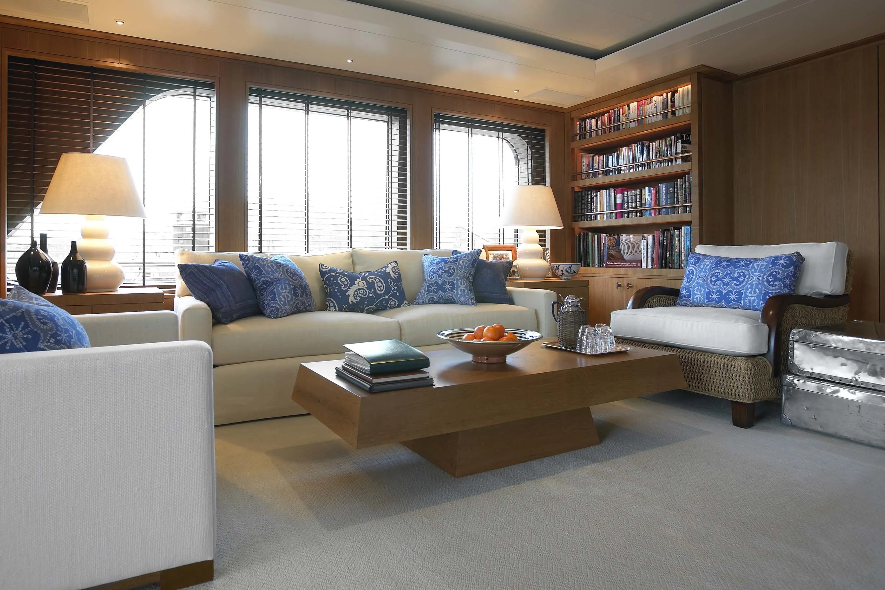 In keeping with the finest Feadship tradition, the 55.50-metre Twizzle is a stylish amalgam of classic features and modern shapes. Her superstructure has a low profile, while the modest interior volume allows a full walk-around deck and multiple outdoor seating areas. The large and well-equipped entertainment spaces aft of the main and bridge deck lounges are the height of al fresco living. Her continuously straight sheer line generates a highly modern impression, while the royal blue of the superstructure emphasizes Twizzle’s dynamic overall appearance.