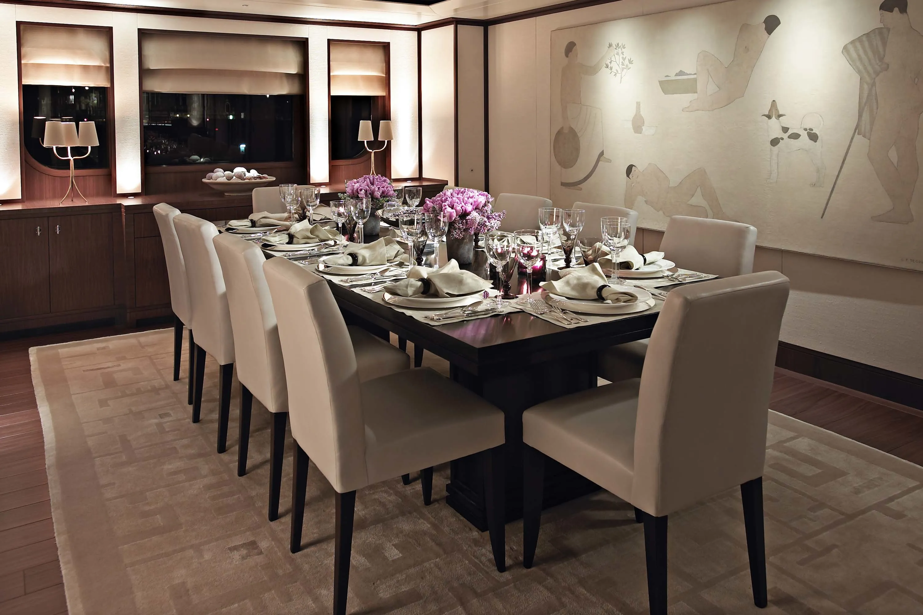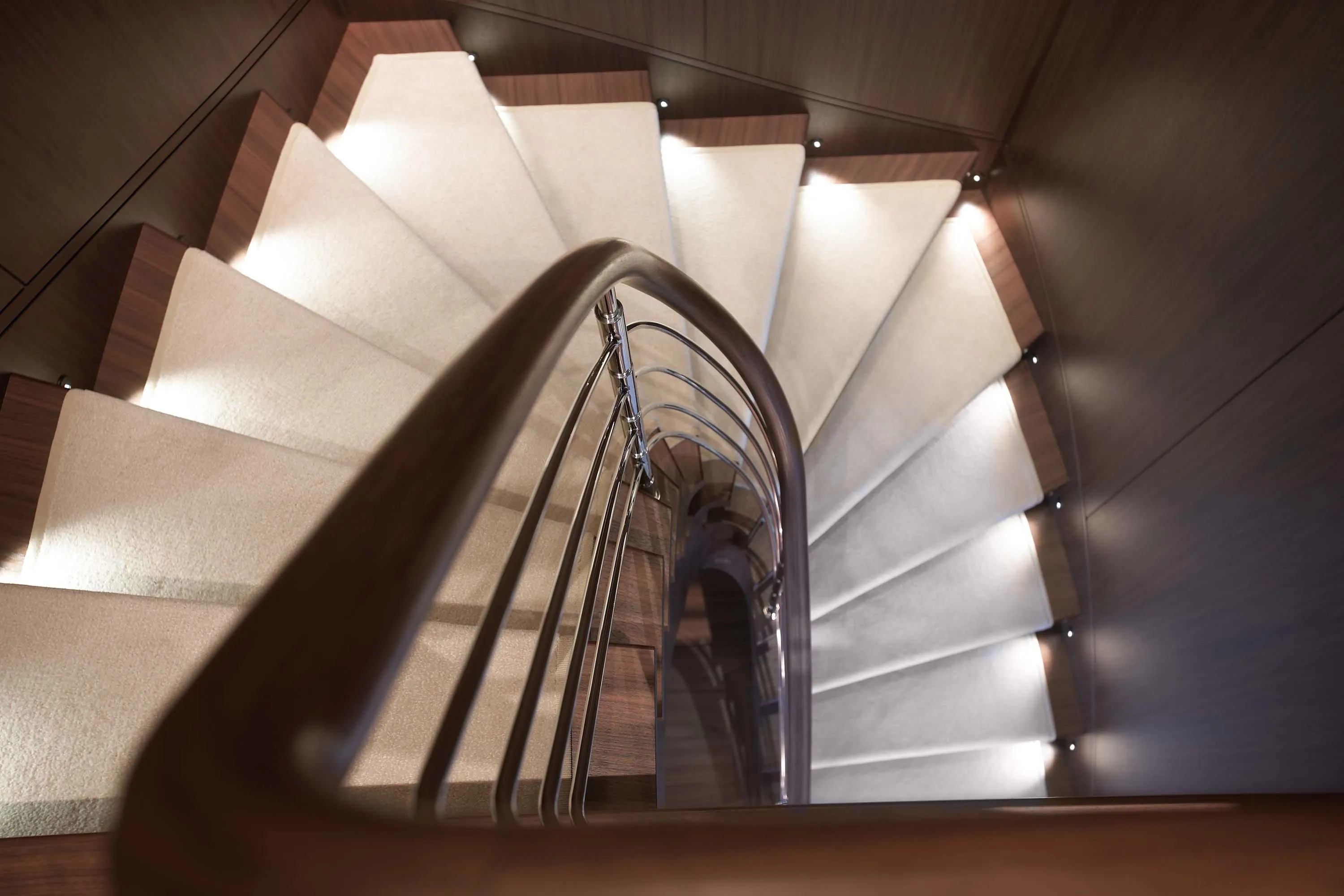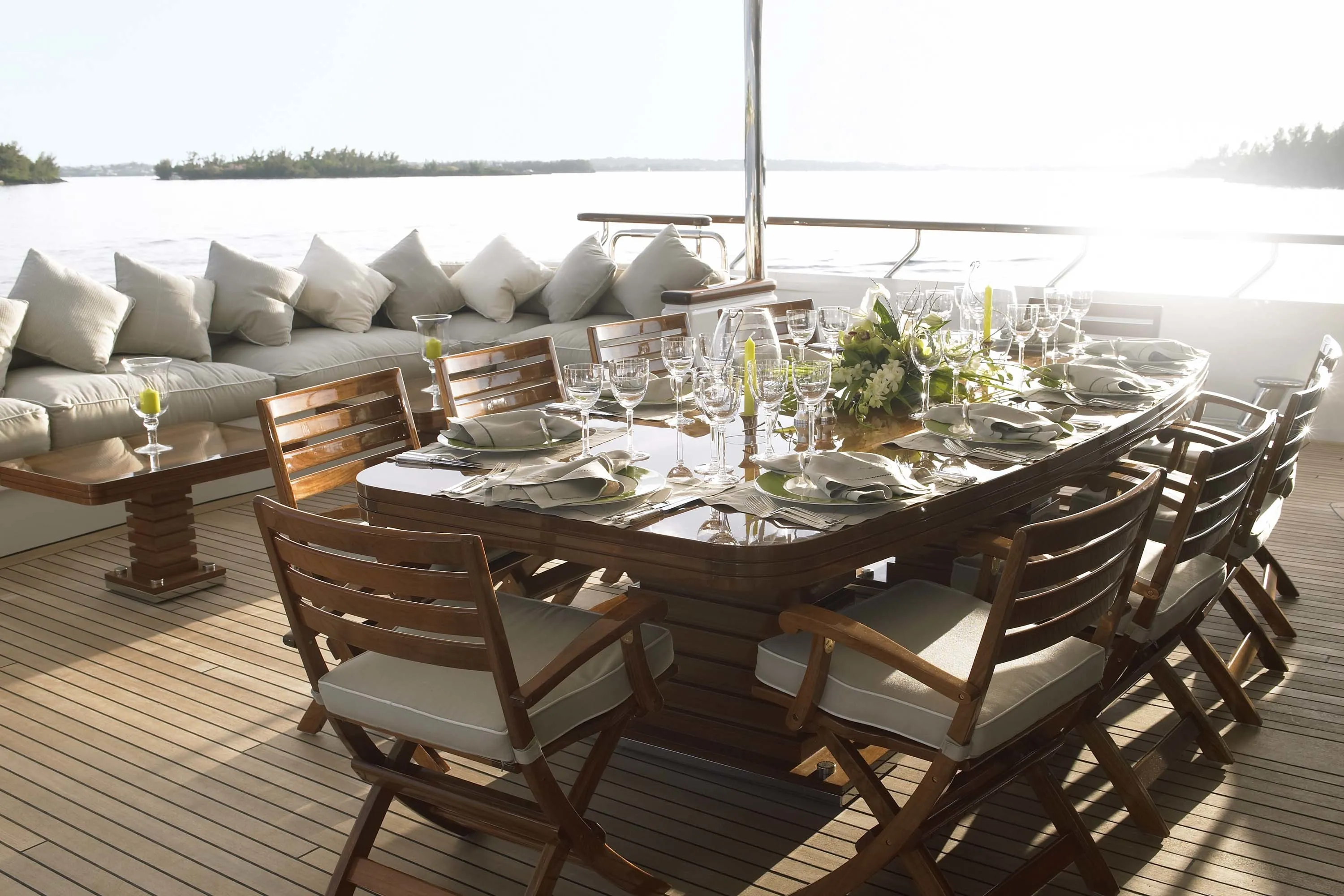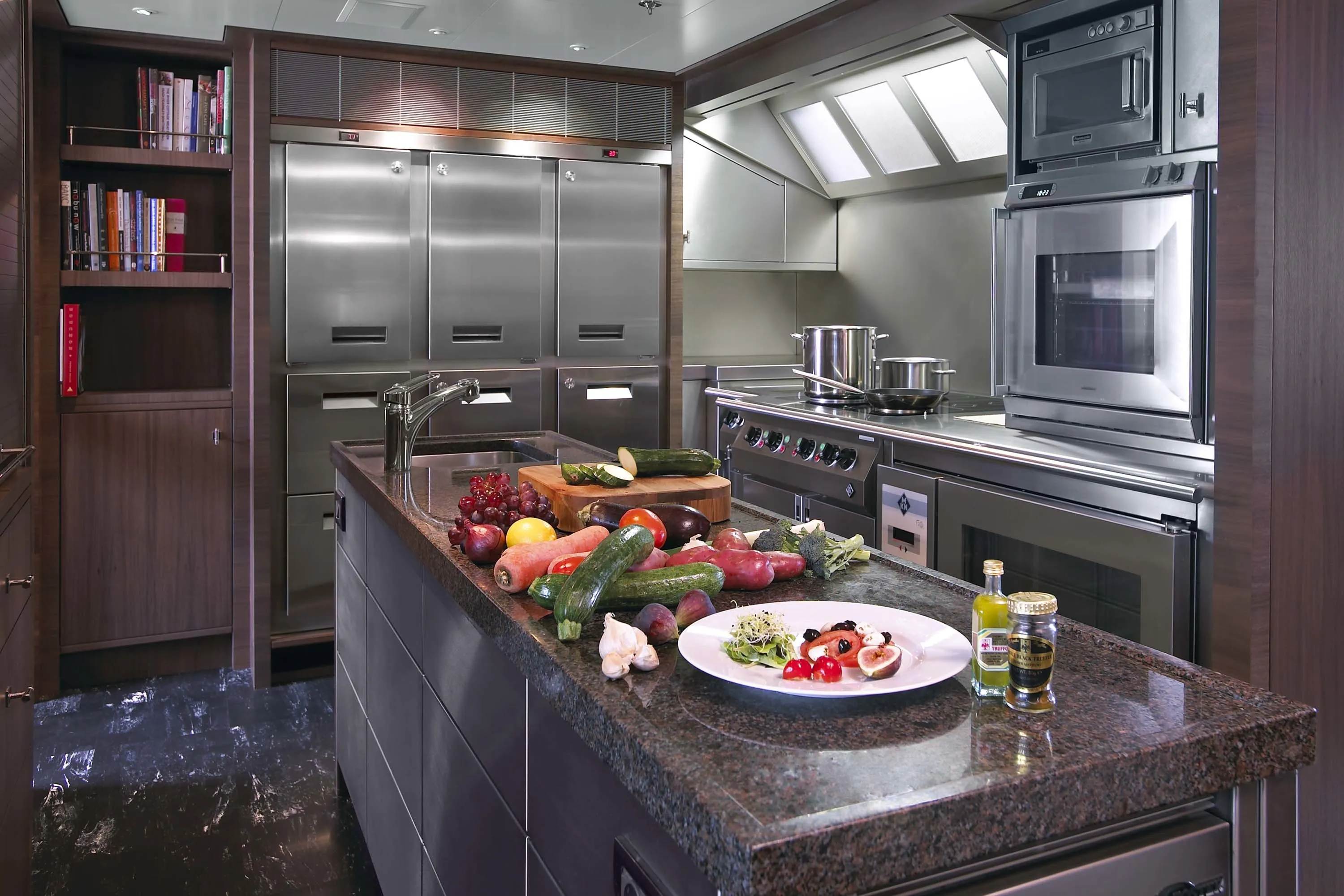 In keeping with the finest Feadship tradition, the 55.50-metre Twizzle is a stylish amalgam of classic features and modern shapes. Her superstructure has a low profile, while the modest interior volume allows a full walk-around deck and multiple outdoor seating areas. The large and well-equipped entertainment spaces aft of the main and bridge deck lounges are the height of al fresco living. Her continuously straight sheer line generates a highly modern impression, while the royal blue of the superstructure emphasizes Twizzle’s dynamic overall appearance.