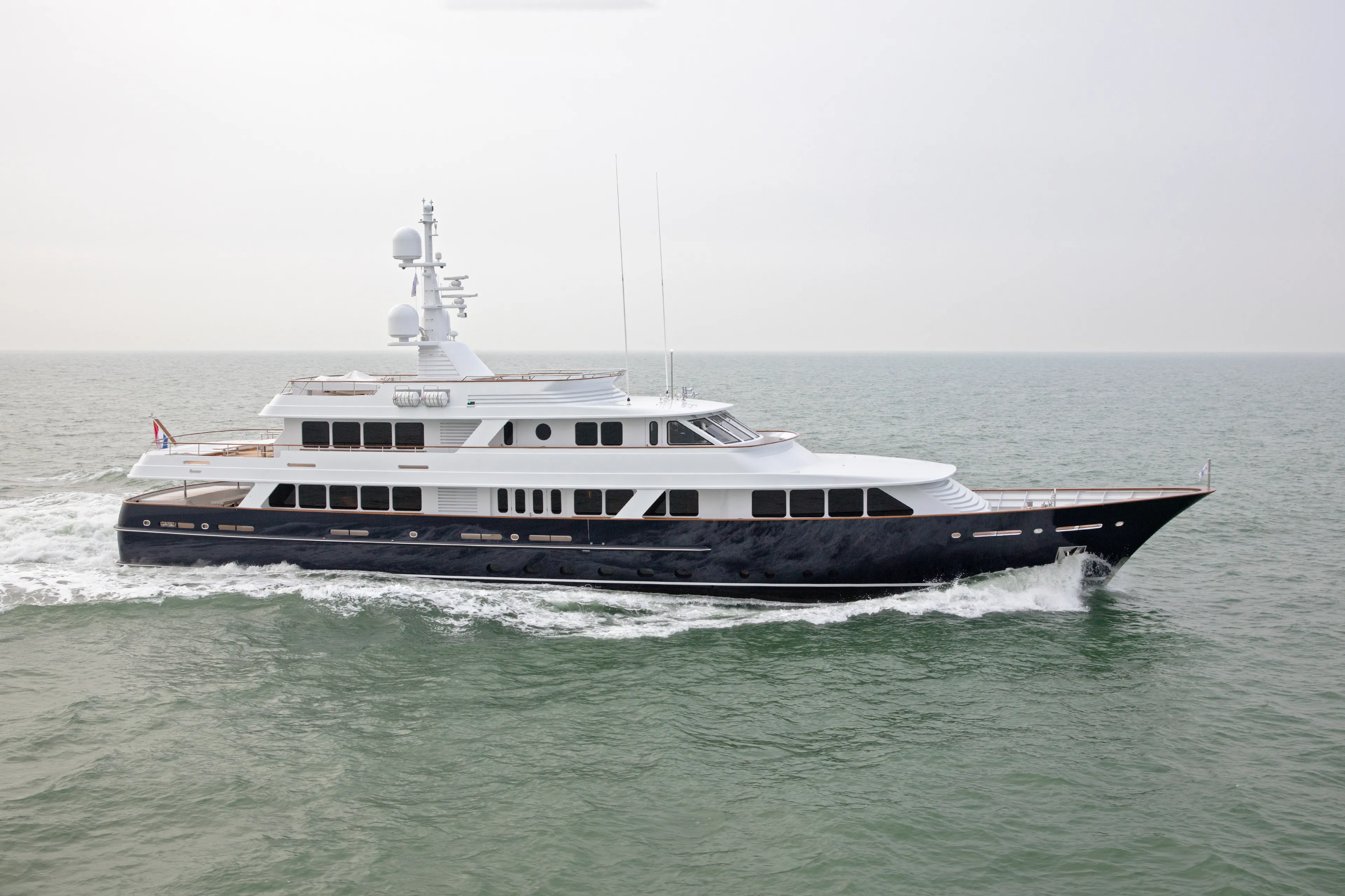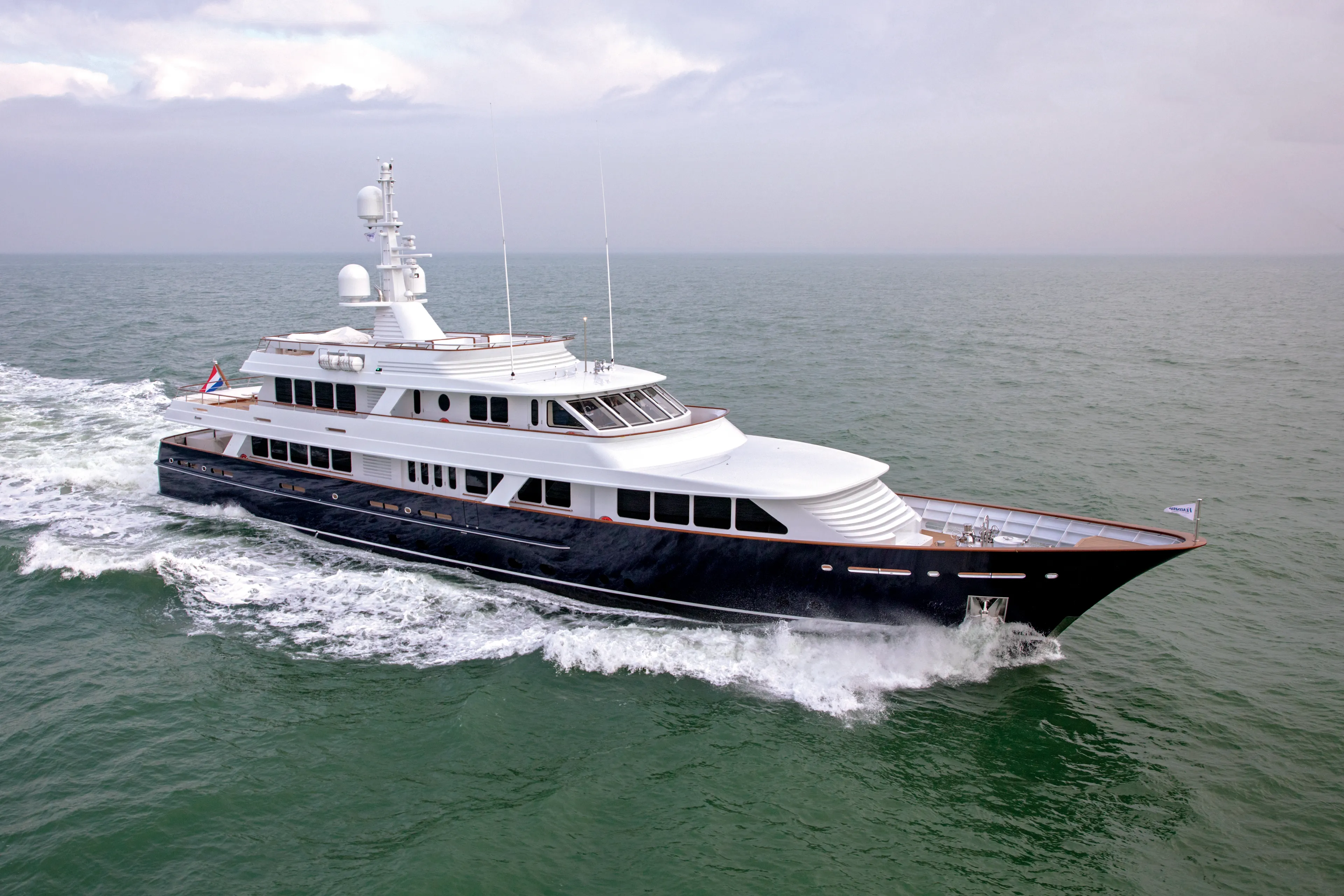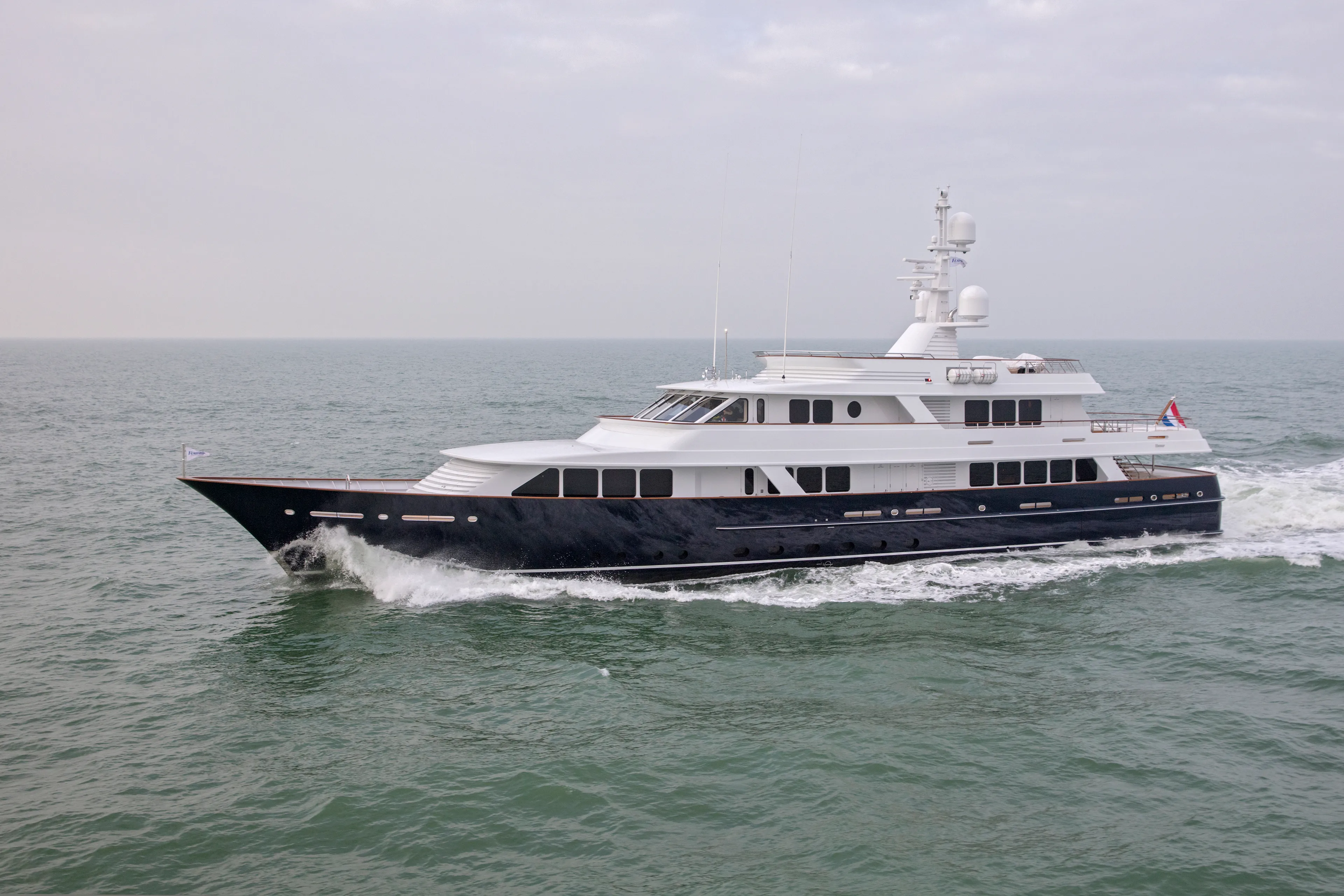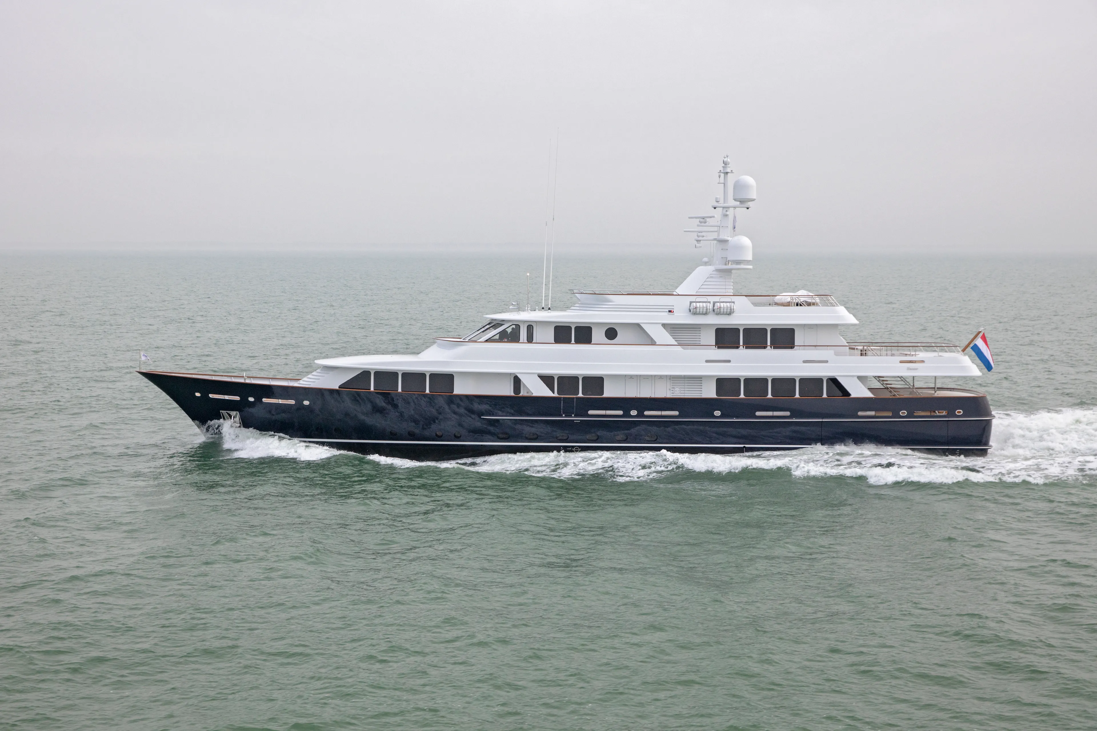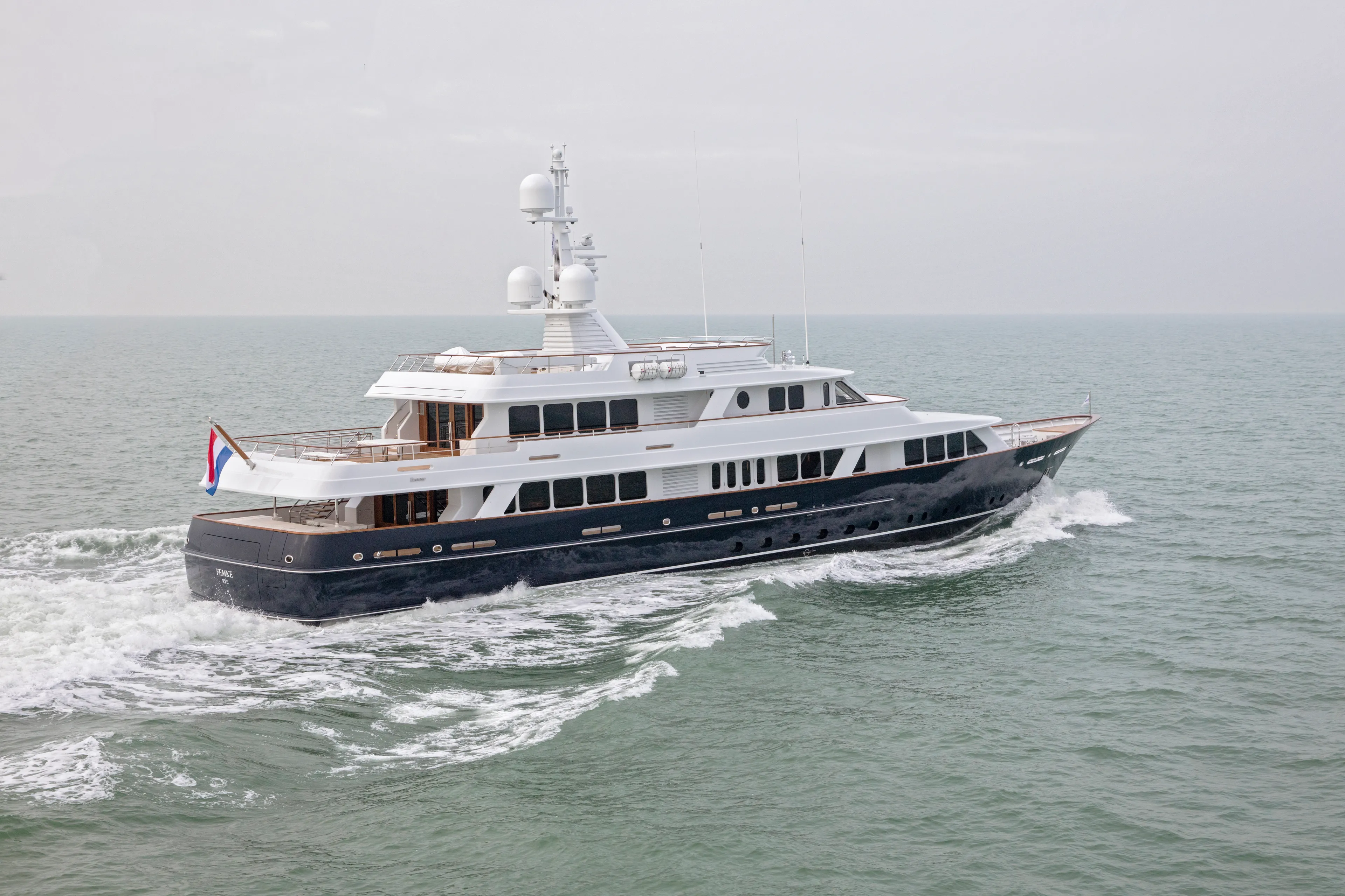 Valoria was built for an experienced owner keen to revisit the classic era of Feadship while enjoying a rich range of cutting-edge onboard facilities. Reminiscent of beauties such as Aurora B, she marries a striking Midnight Blue hull with a sophisticated superstructure in Matterhorn White aluminium and exterior teak woodwork with stainless steel details. Designed by Studio De Voogt, the yacht’s profile appears deceptively simple until you notice the delicate grace of her silhouette, the walkaround deckhouse, the curved gunwale of the sun deck forward and the cambered teak deck – all discreet characteristics underpinned by superlative craftsmanship.