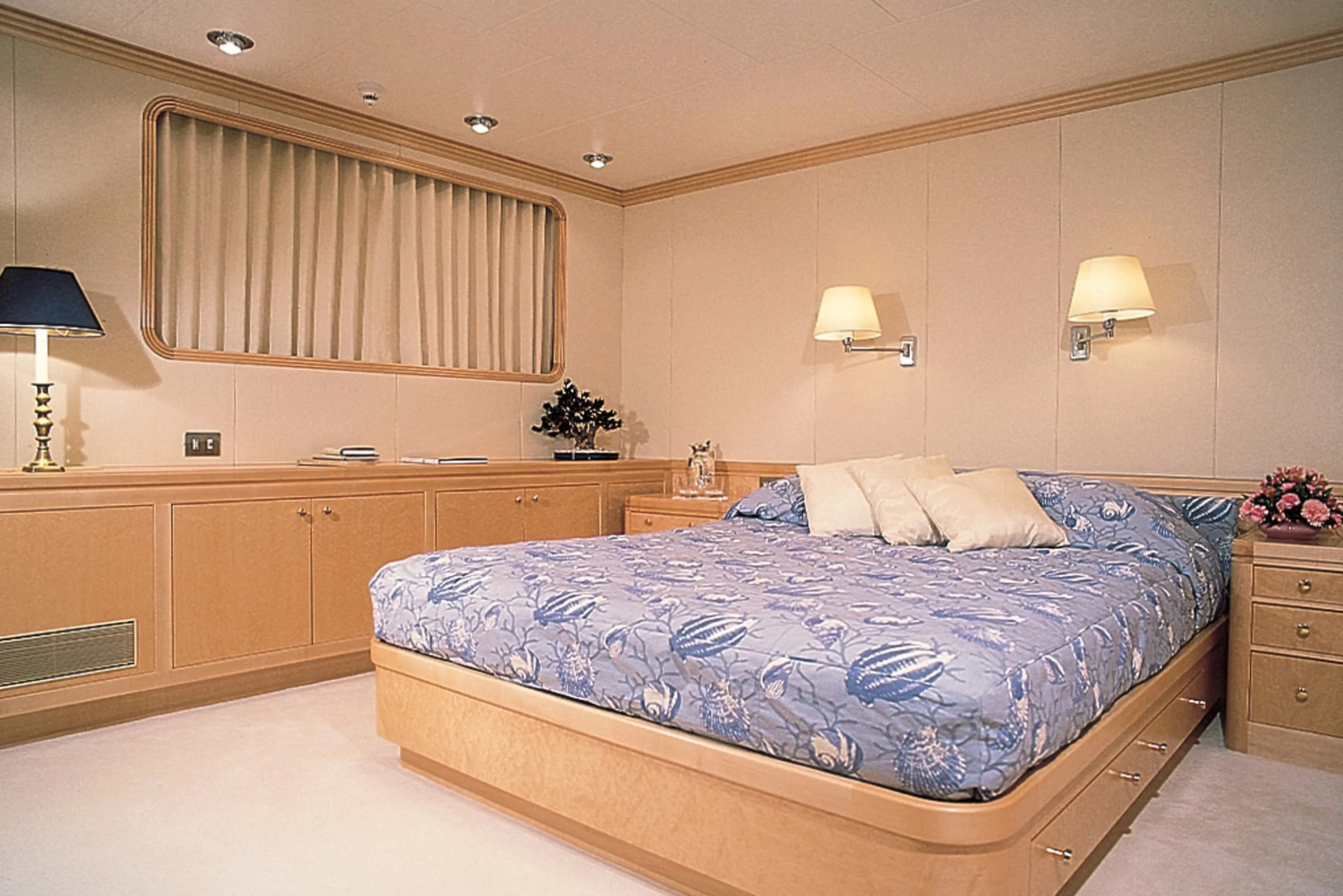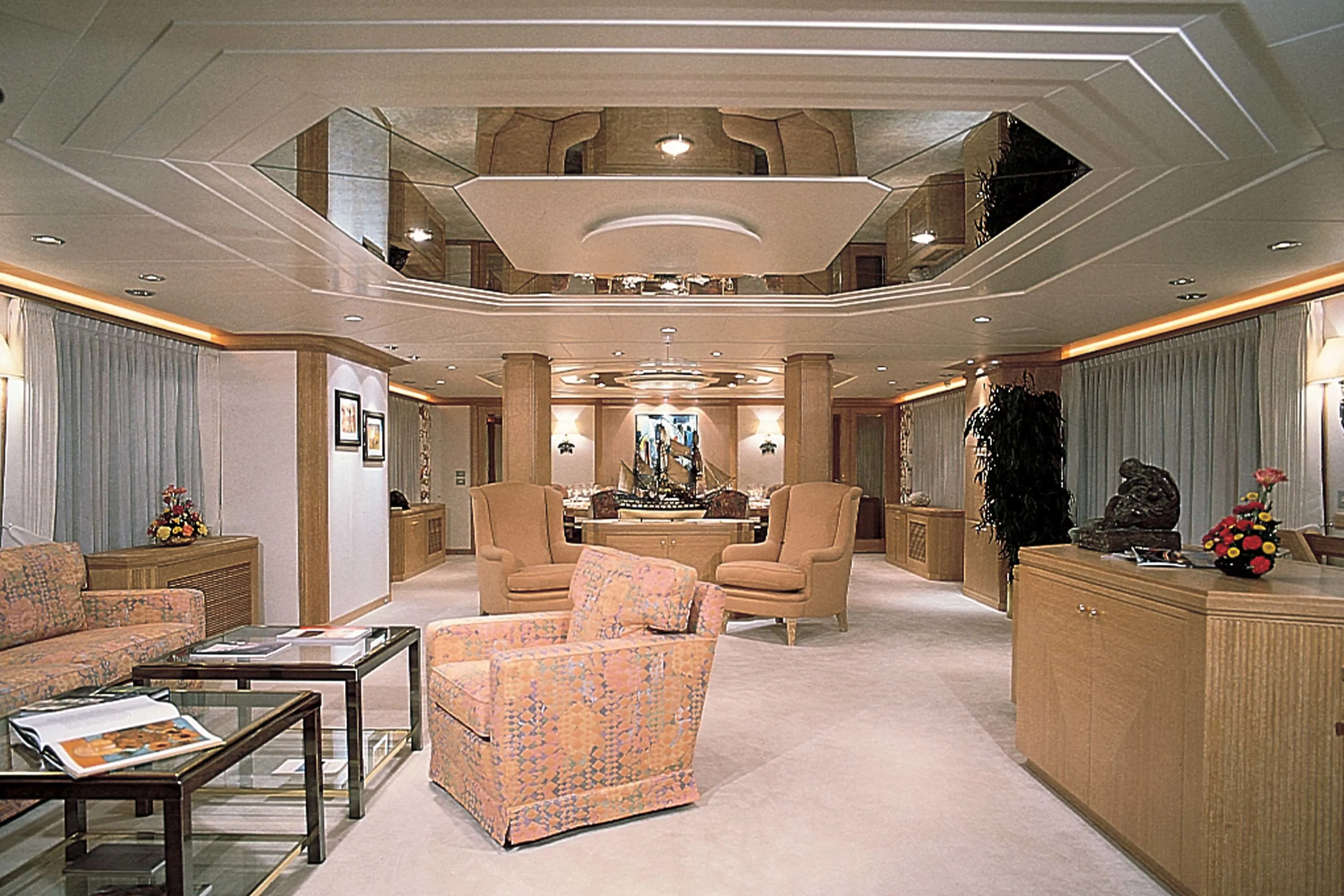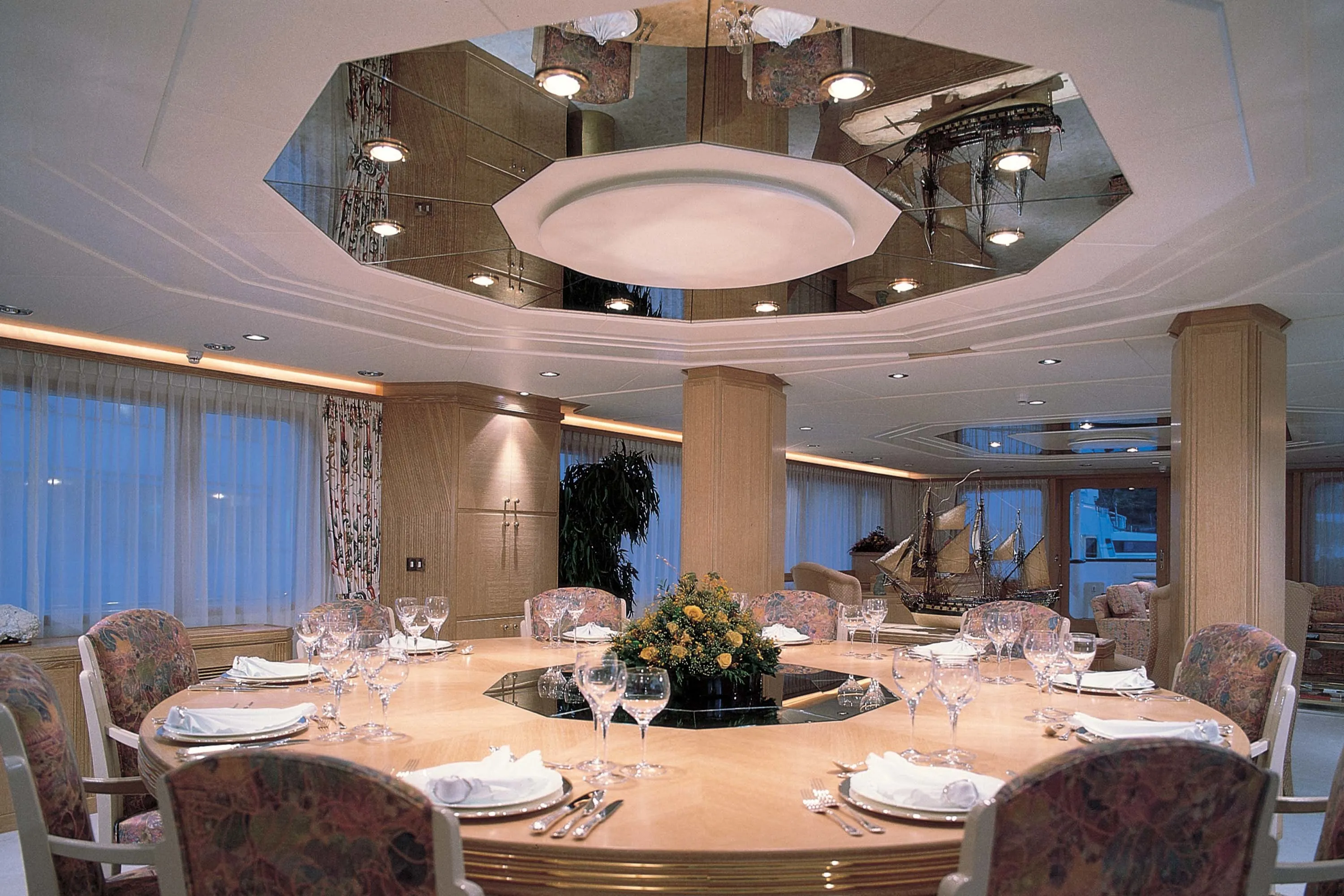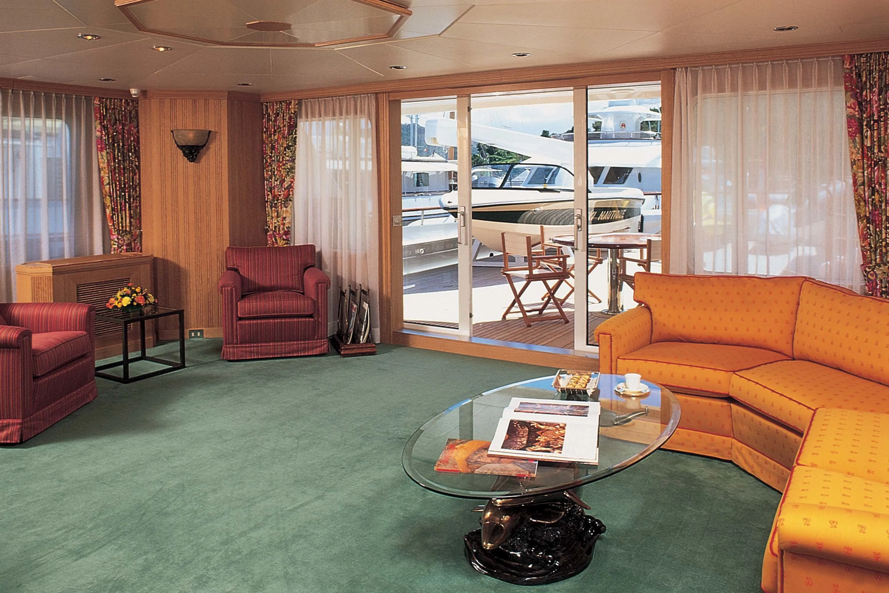 The primary stipulation of the owner of the 47.30-metre Vava was that he should enjoy the most peaceful long-distance cruising possible. In response, Feadship managed to surpass previous standards of sound-attenuation by building certain of the hull’s structural elements stronger than necessary. Noise transmission was also reduced via vibration breaks in the pipework and the establishment of a sound resistant box around the engine room. Furthermore, void spaces were specially sized to reduce airborne noise, while the entire interior ‘floated’ within the hull, mounted on rubber strips built into the structure.