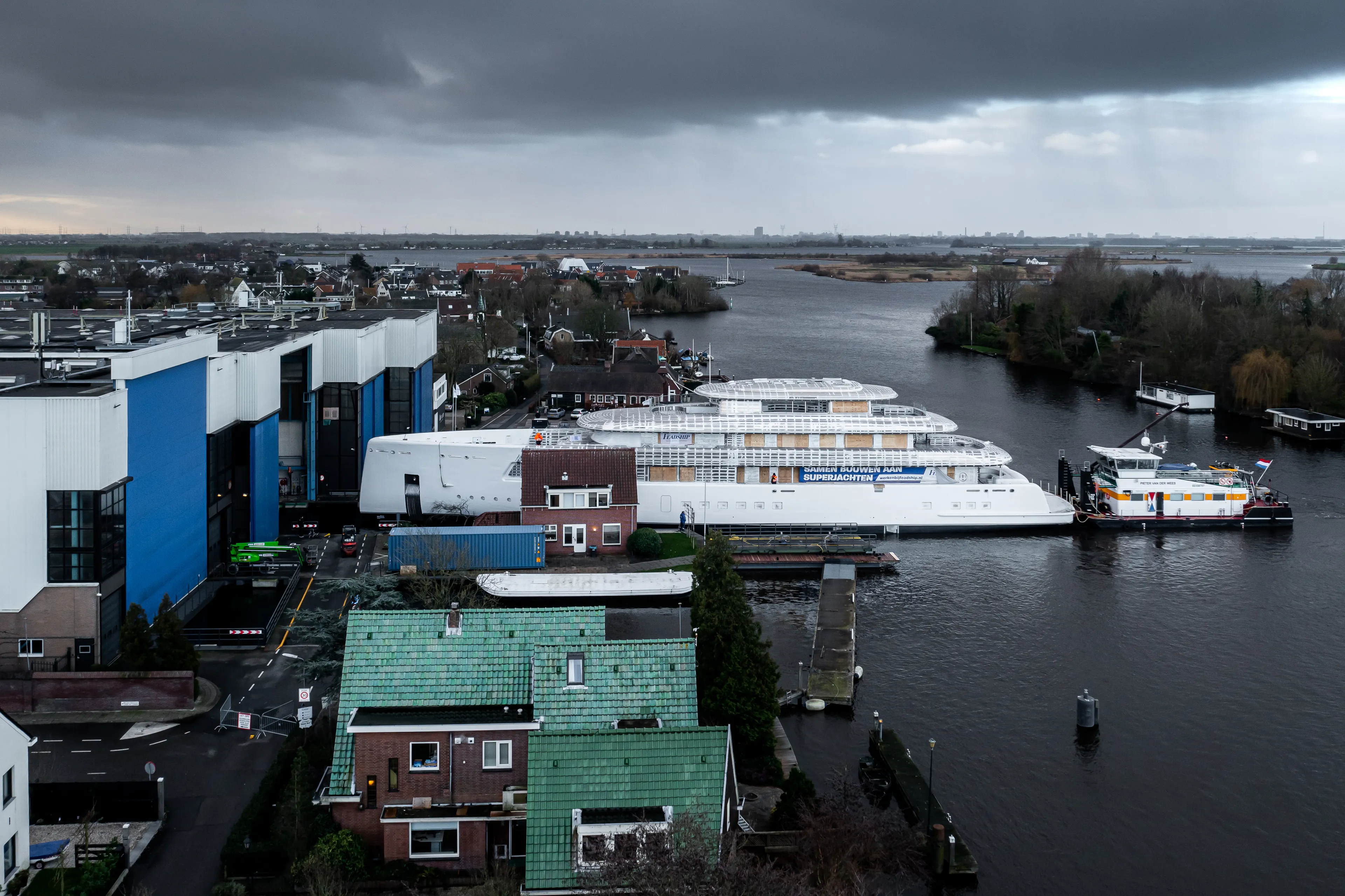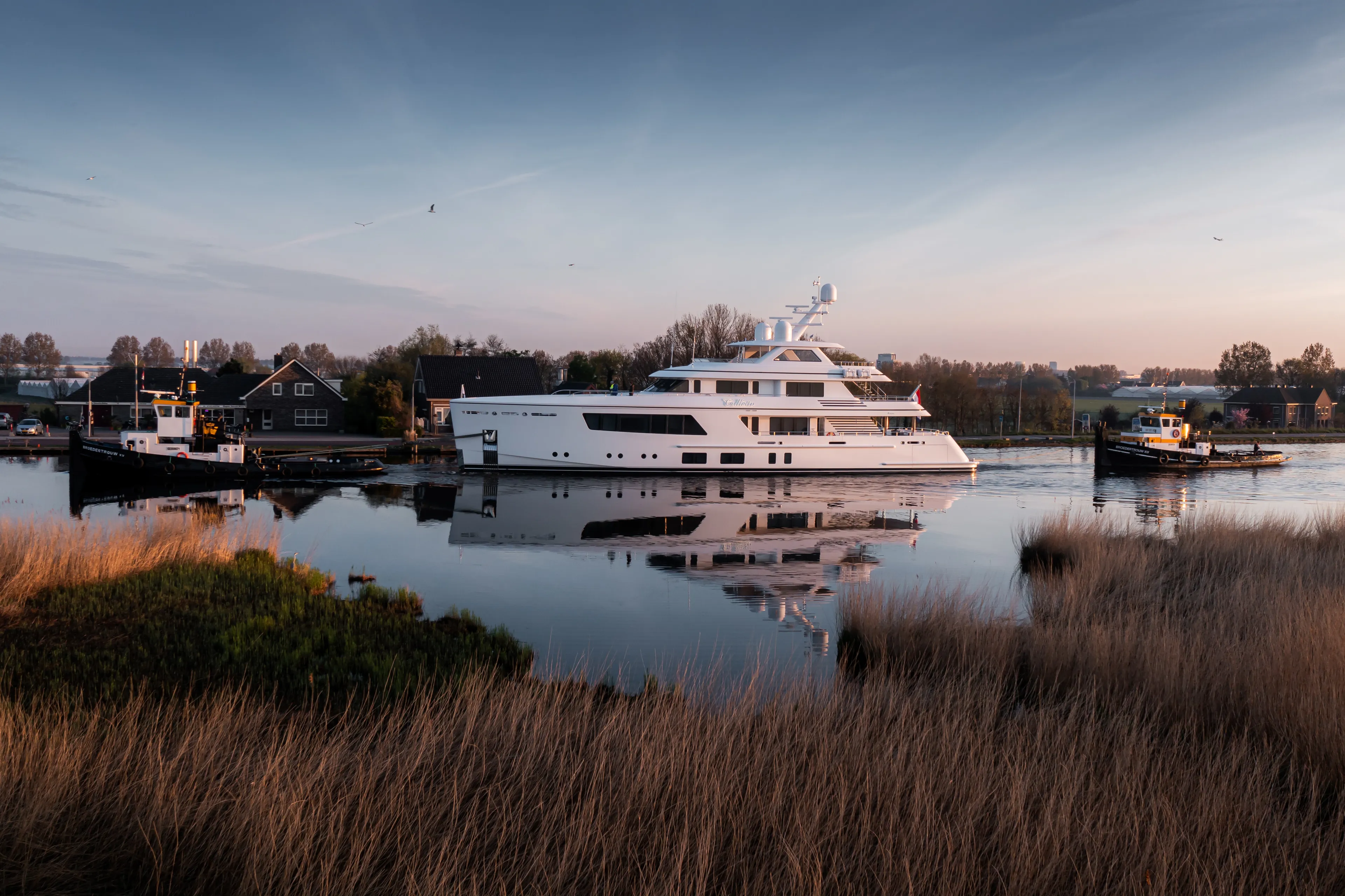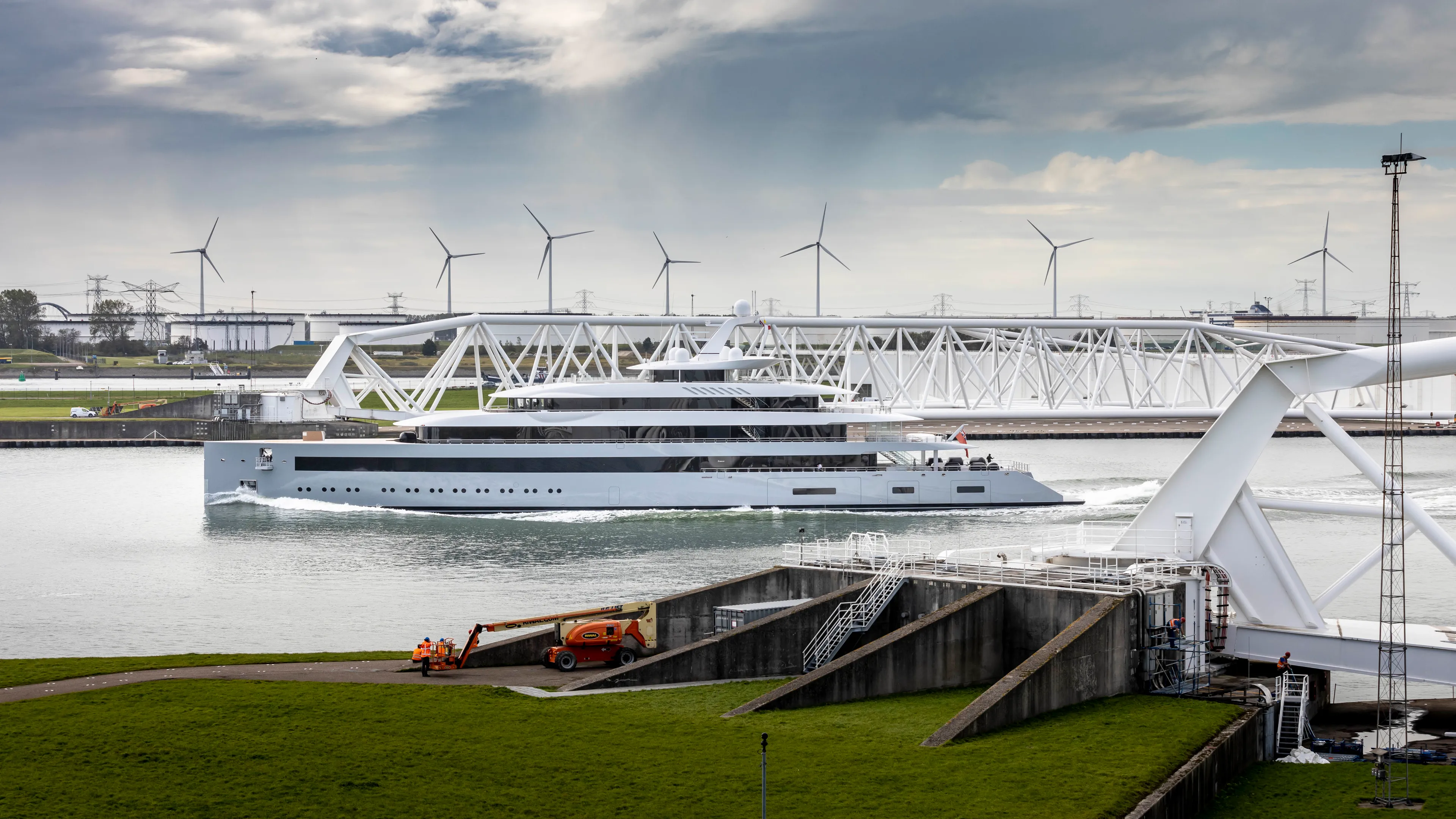 It took centimetre precision and perfect planning for this new 67.40-metre Feadship to pass through the eighteen bridges, locks and aquaducts to reach our outfitting facility in Kaag. As we went to press, Feadship workers were performing their magic on this beauty.