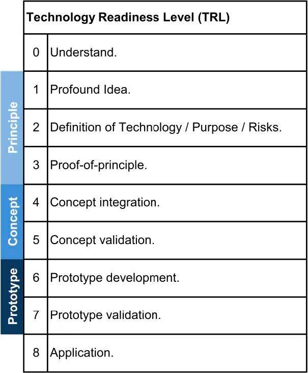 Change in technology, methodology and process requires definition, concept proving, detailing, validation, implementation and optimisation. Ranking this process enables consistent, uniform discussions about technical maturity and provides a model with which to manage work. It identifies essential steps to mitigate risks when considering application of a technology on a new yacht or its implementation within the organisation. Failure during development is an option but needs to be detected at an early stage and careful consideration will be needed before moving on to a next stage.