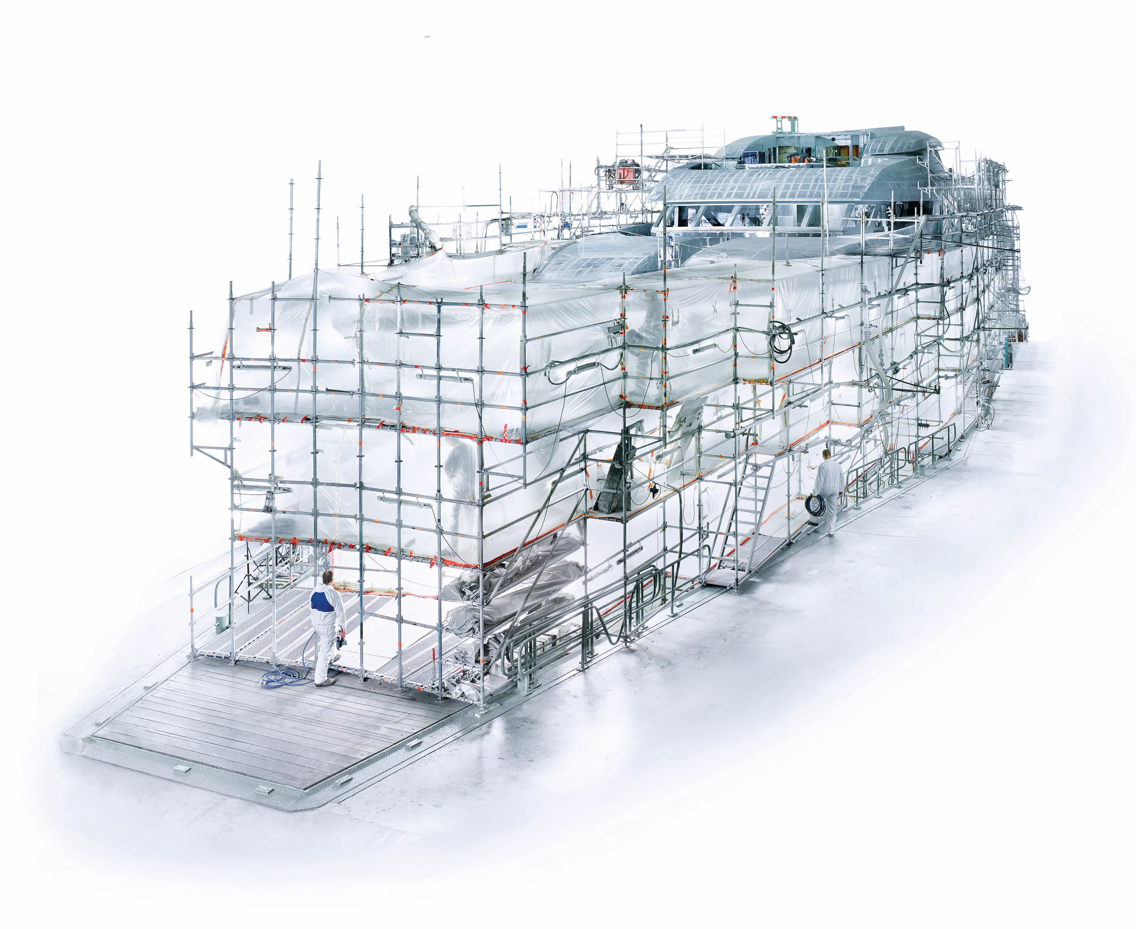The way we assemble our yachts has an impact on the production chain. It should support further customisation, the configure-to-order (CTO) production approach and scheduling flexibility, while also fitting the increasing scale of our projects. Alternative assembly methods are to be considered such as adhesion, interior modules and skidded engine room components.