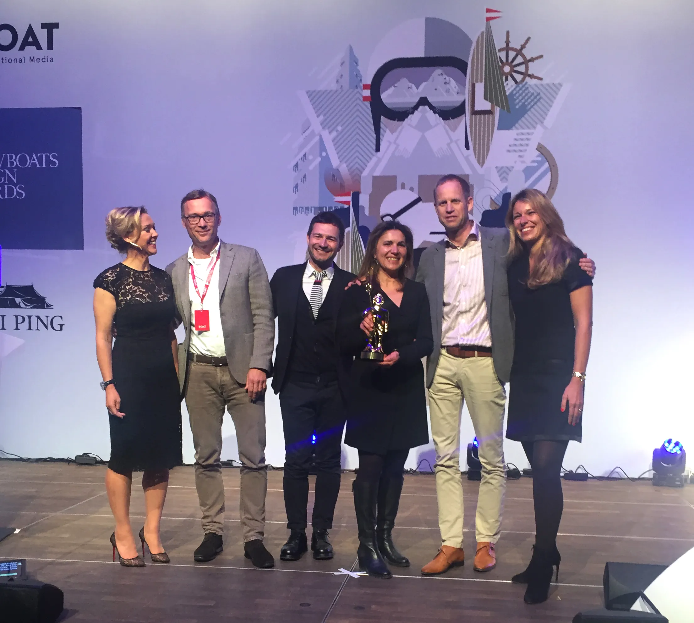 The Feadship flag was flying high in the Austrian Alps yesterday as we were awarded four golden Neptune trophies during the ShowBoats Design Awards in Kitzbühel. This annual event honours the creative talents behind the most innovative, elegant and inspiring new yacht designs, and we were delighted when Cristina Gherardi from CG Design took home three awards for her work on Savannah. Moreover, in a fine recognition of Feadship’s glittering past, Frits de Voogt won a Lifetime Achievement Award.