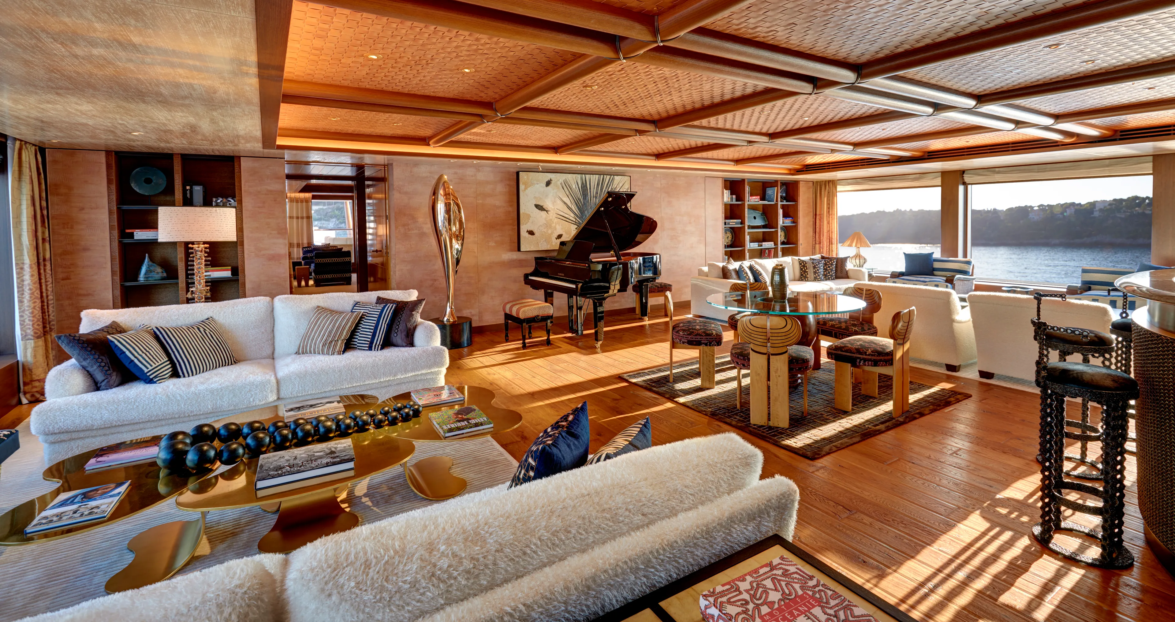 No less of a great achievement is the bespoke wooden interior of another award-winning Feadship, Symphony. In order to be able to charter 36 guests instead of 12, the interior had to be reinvented in compliance with the Passenger Yacht Code: for instance, the choice of base and finish materials was restricted by fire safety codes. Combined with a specific interior design and material selection brief from the client, this was a serious challenge to our creativity and required rapid transfers in knowledge from engineer to carpenter. The pinnacle of the effort was passing fire tests with our own wood veneers, ranging from grass-like palm wood through to oily teak, each requiring a different treatment to manage the spread of flame, smoke and toxicity.