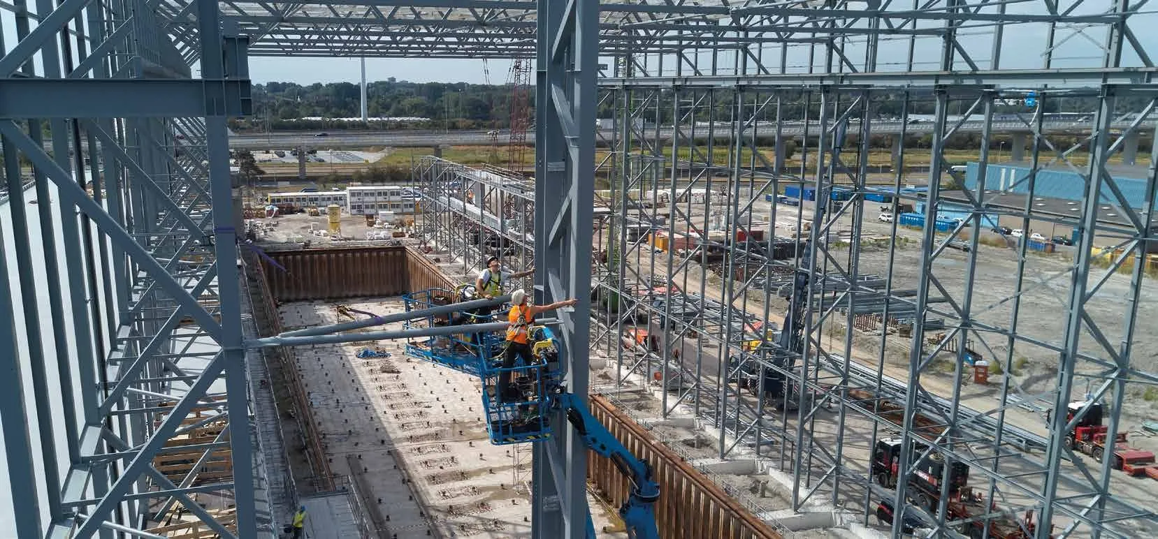 Five years, a team of four main contractors, seventeen consulting firms, 59 key suppliers, two construction management firms and thousands upon thousands of hours of planning went into making Feadship’s new Amsterdam yard a reality. This is not a facility that takes the name ‘state-of-theart’ lightly. The 425,000 m3 yard has been completely streamlined from (under-) ground up in order to offer unprecedented quality and speed. Overhead cranes that run 50% faster. Frequency-controlled hoisting equipment that allows for greater precision. Solar panels on the highrise roof and LED lighting for eco-friendly construction. Feadship’s fourth shipyard is the pinnacle of contemporary design. Come take a look inside.