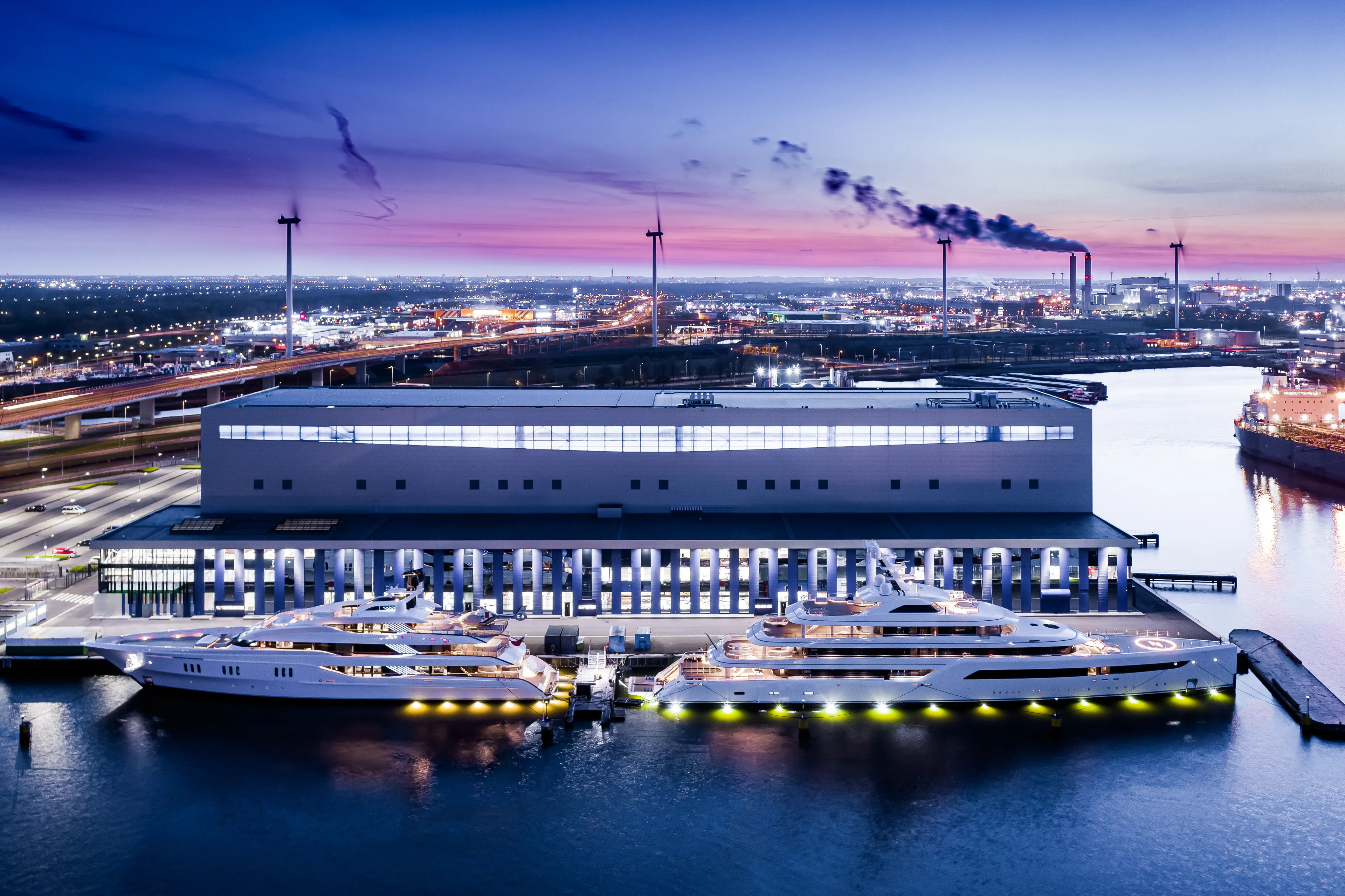 Having spent much of 2014 looking at various possible sites for the fourth Feadship facility, Peter van Mil, operational director at the yard on Kaag, had one more viewing to make. The fact that it took just 20 minutes to reach the location in Amsterdam was an immediate plus-point as the new yard would need to work in tandem with the Kaag yard, and proximity would be a big help. Stepping out of his car on a pleasant autumn afternoon, surveying the impressive space available, Peter could imagine a bespoke construction hall in this spot. Another advantage was the wide water lapping at the quay shore: knowing this meant that new and refitted Feadships would have easy tidal access to the sea, Peter smiled. The search was over. Almost five years later, a state-of-the-art superyacht facility has added a modern new highlight to Amsterdam’s venerable skyline. The project made the most of Feadship’s unrivalled understanding of the techniques and logistics involved in creating complex structures. And there were other synergies with Feadship’s core business of building world-class yachts, too.