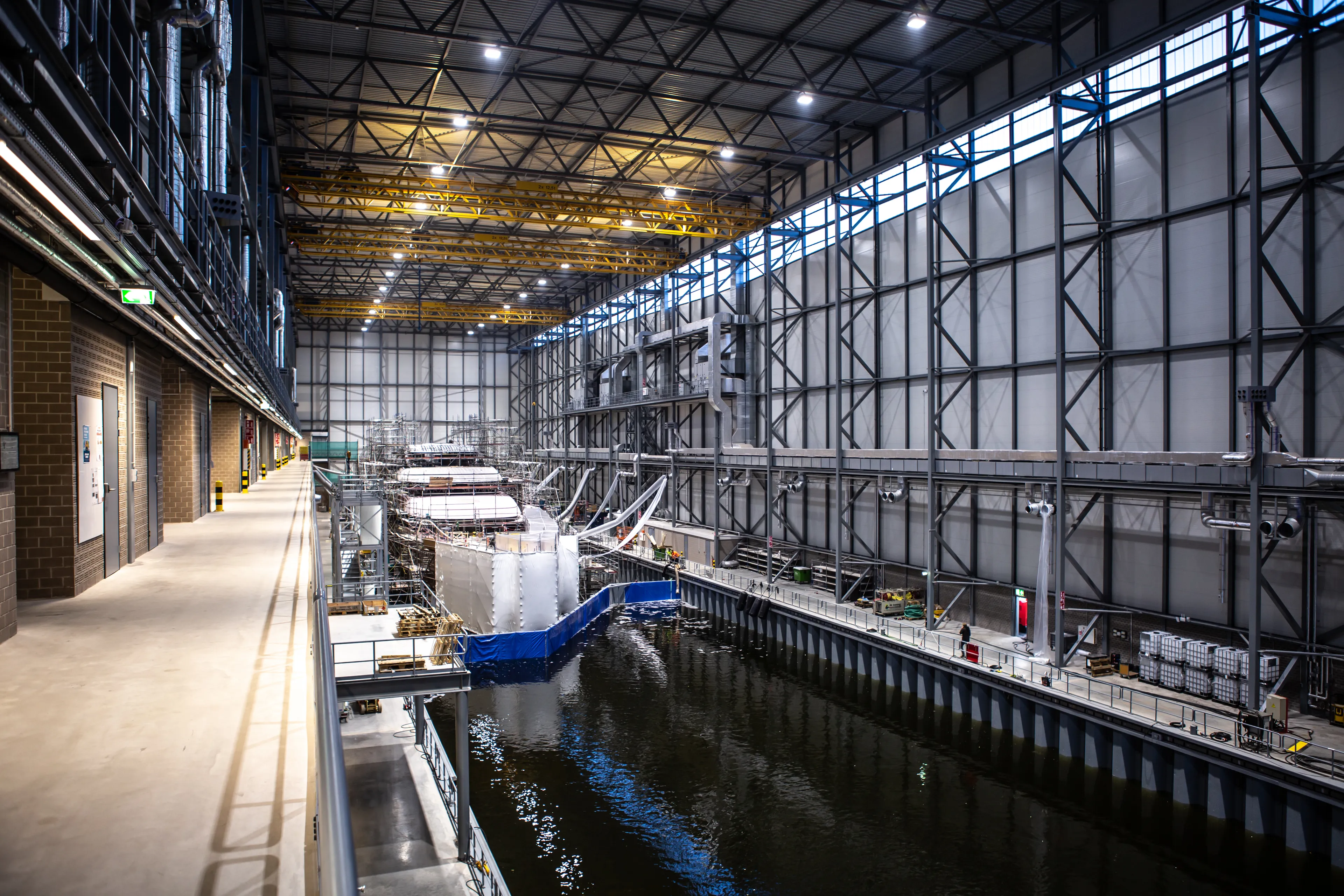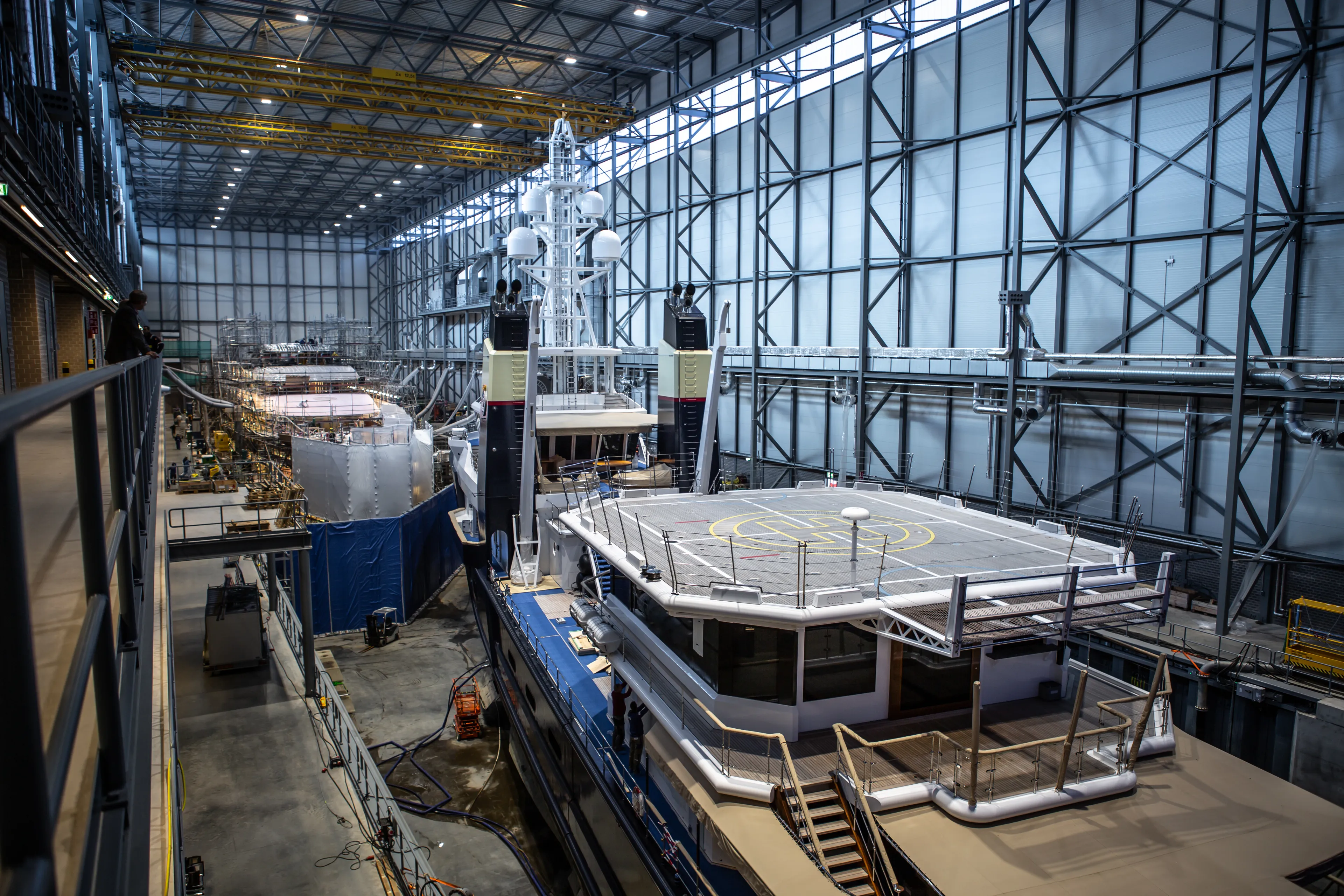 For already safely nestled within the 160-metre ‘shed’ was another Feadship, the 88-metre ‘Project 816’. She is the first superyacht being brought to life by the Amsterdam yard since it opened in May this year.