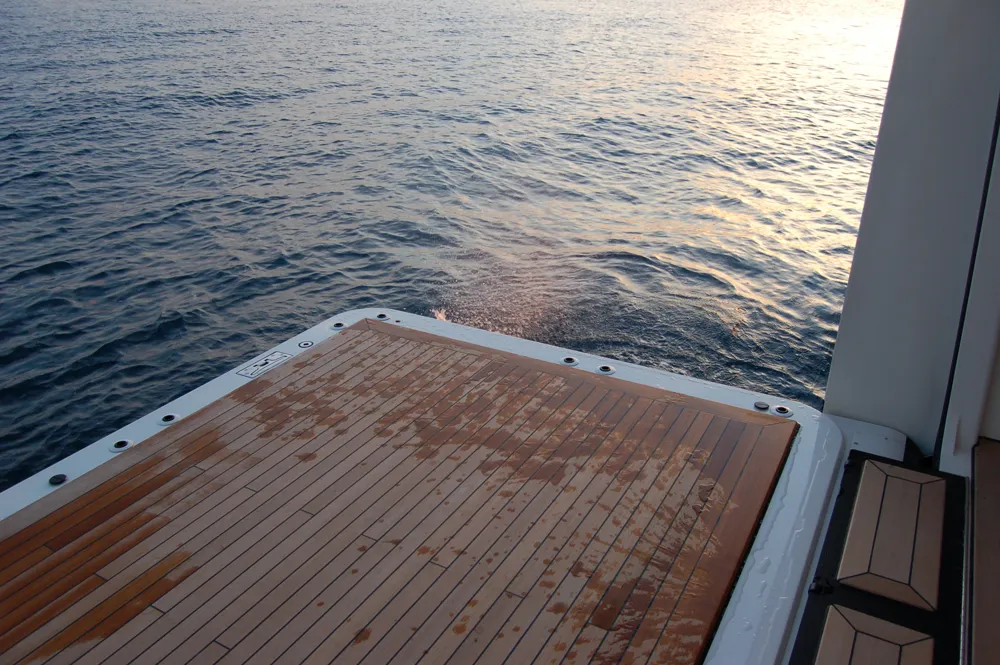 It is a familiar sensation for everyone involved in large yacht operations – as you open a large shell or transom door close to the waterline, waves start to slam against the underside. This generates unwanted noise and vibrations that can sometimes be noticed all over the yacht. What’s more, water geysers occur from the gap between the platform and the hull, and incidental waves may flood the beach terrace or the internal space behind it.