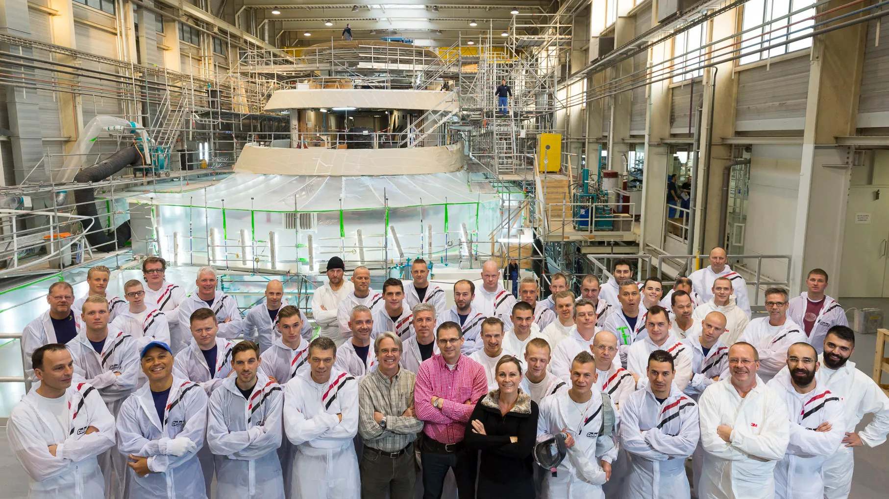 It made for an impressive sight to see this human machine of craftsmen at work in their climate-controlled tent spanning some 22,500 cubic metres. They used special mixing machines and, for the first time, electrically-charged spray guns to get all the metallic flakes in perfect order and achieve the thickest possible layer.