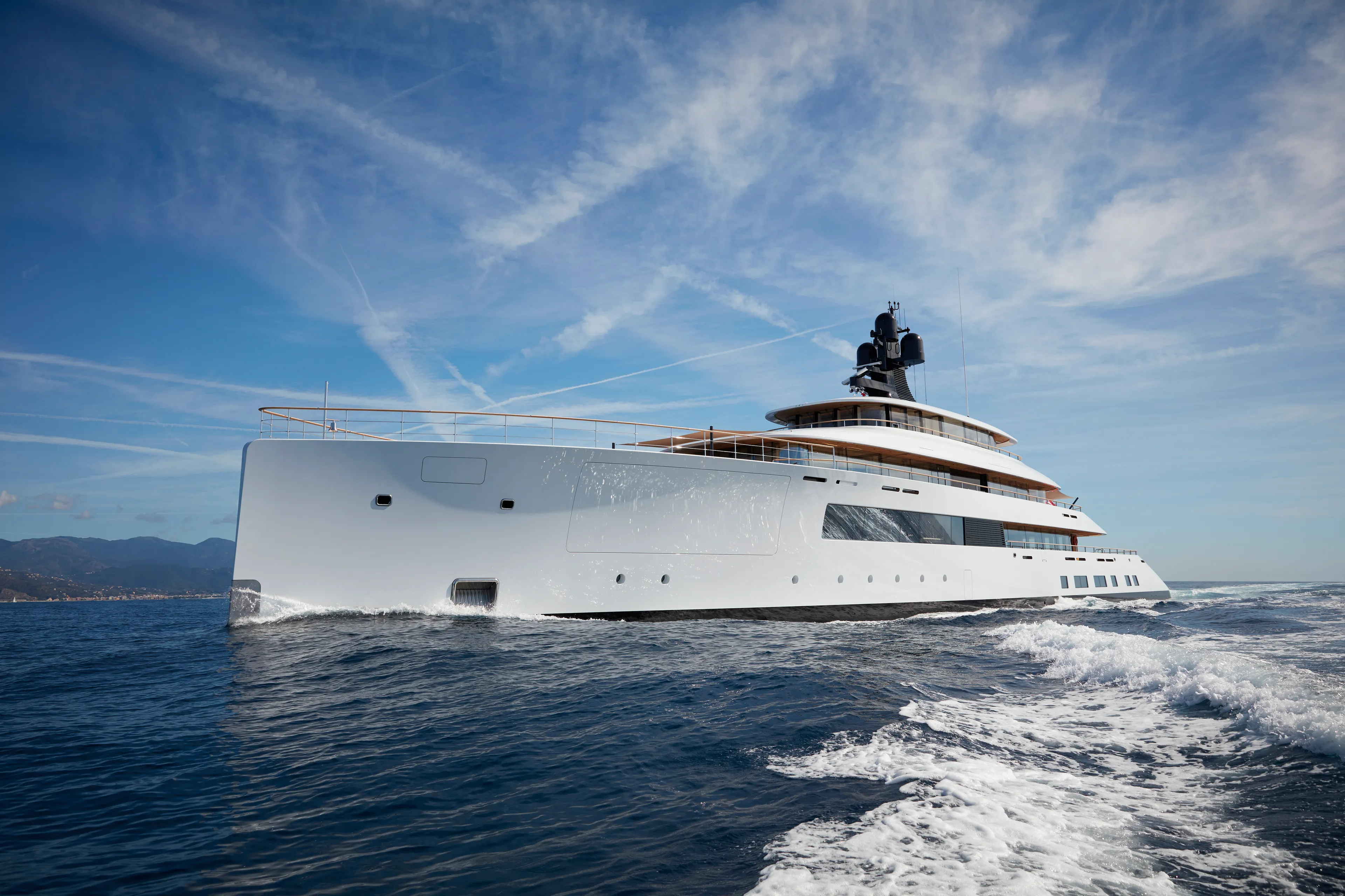 The most transparent example of the escalating use of glass is obvious for us all to see in exterior profiles. While the average percentage in 1960 was around the seven per cent mark – small windows placed with a significant distance in between to ensure strength – this figure had almost doubled by 1990 as windows grew larger, moved closer together and played an infinitely greater role in the exterior aesthetic of yachts. Designers had a big role to play in this, with the most obvious pioneer being Jon Bannenberg. He was already pushing Feadship to the limits of the possible back in the early 1980s with Azteca and Paraiso, both of which had a ridiculous amount of glass for the time, including glass-roofed solariums on the top deck. By the time Bannenberg completed Siran in 1991, his magnificent seventh (and last) Feadship, the spectacular laminated glass windows were reshaping everyone’s ambitions.