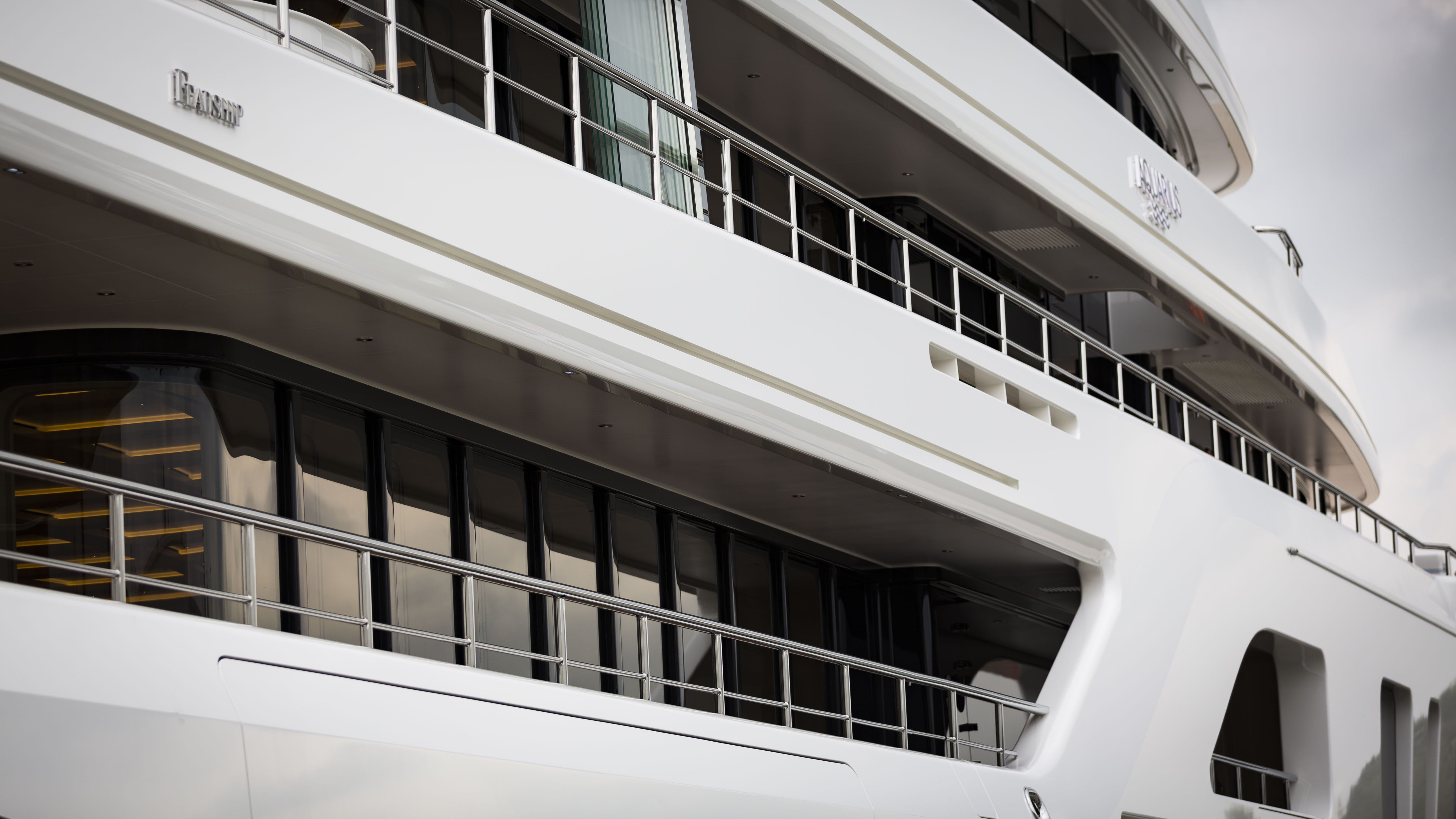 A terrific amount of light in the ceilings and in the comprehensive (and energy-conscious) LED lighting system, combined with a phenomenal amount of glass in the superstructure, makes Aquarius one of the brightest Feadships launched to date. Moreover, as the owner is an avid art lover, Aquarius has the space for some pieces from his private collection.