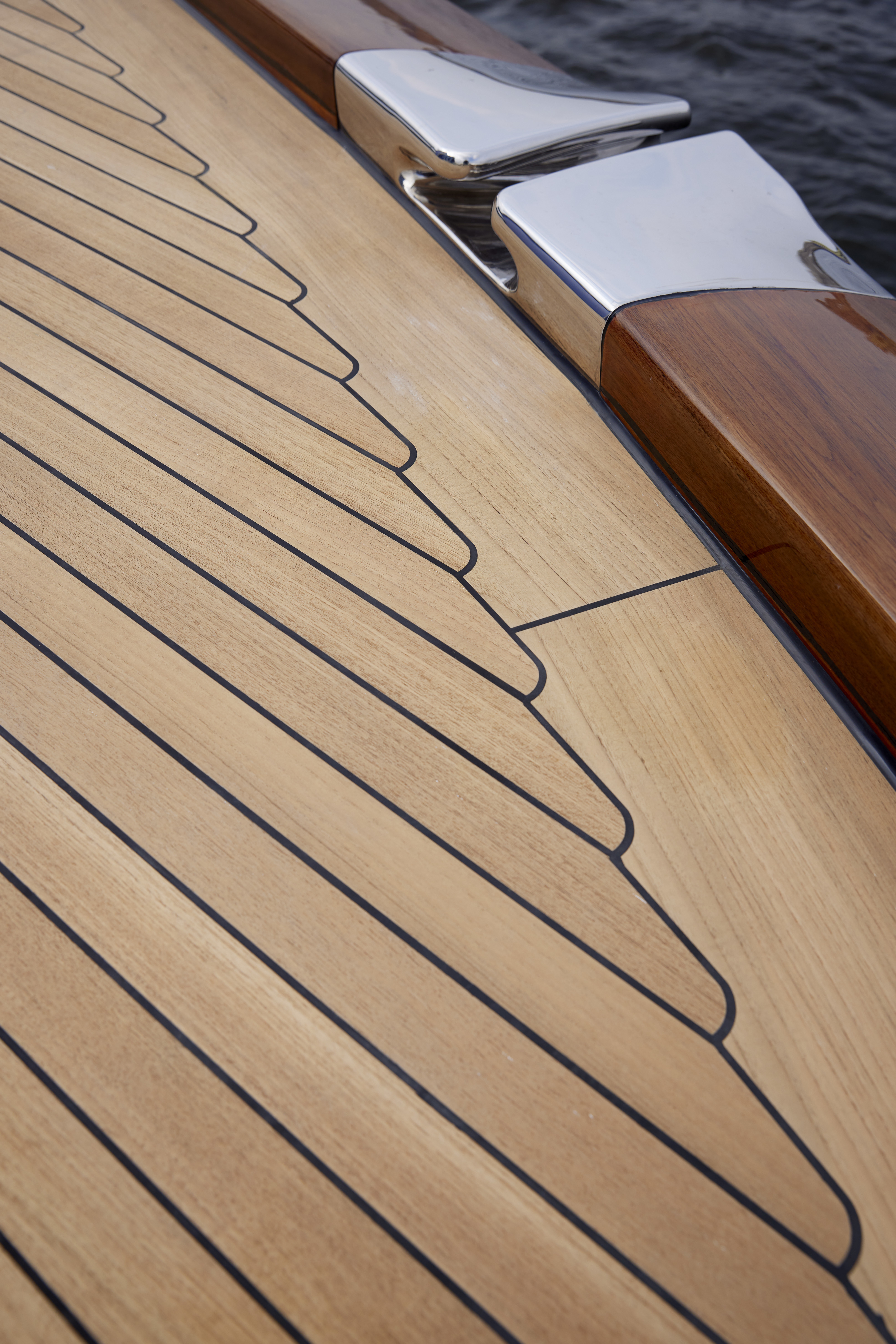 The work list included a full repaint; new teak decking on the foredeck; new teak caprail aft; revarnishing of all the exterior teak; new veneer on the main deck aft; installation of a sun awning covering the foredeck to create a lounging area; numerous interior items; technical maintenance; and upgrading of the LED lighting system. Moreover, an additional crew cabin was created that can accommodate two more crew members for a total of four (previously there was only space for two crew members before the refit). The space was made available by removing the crane and using space taken up by the owner’s old wardrobe, which has been re-positioned.