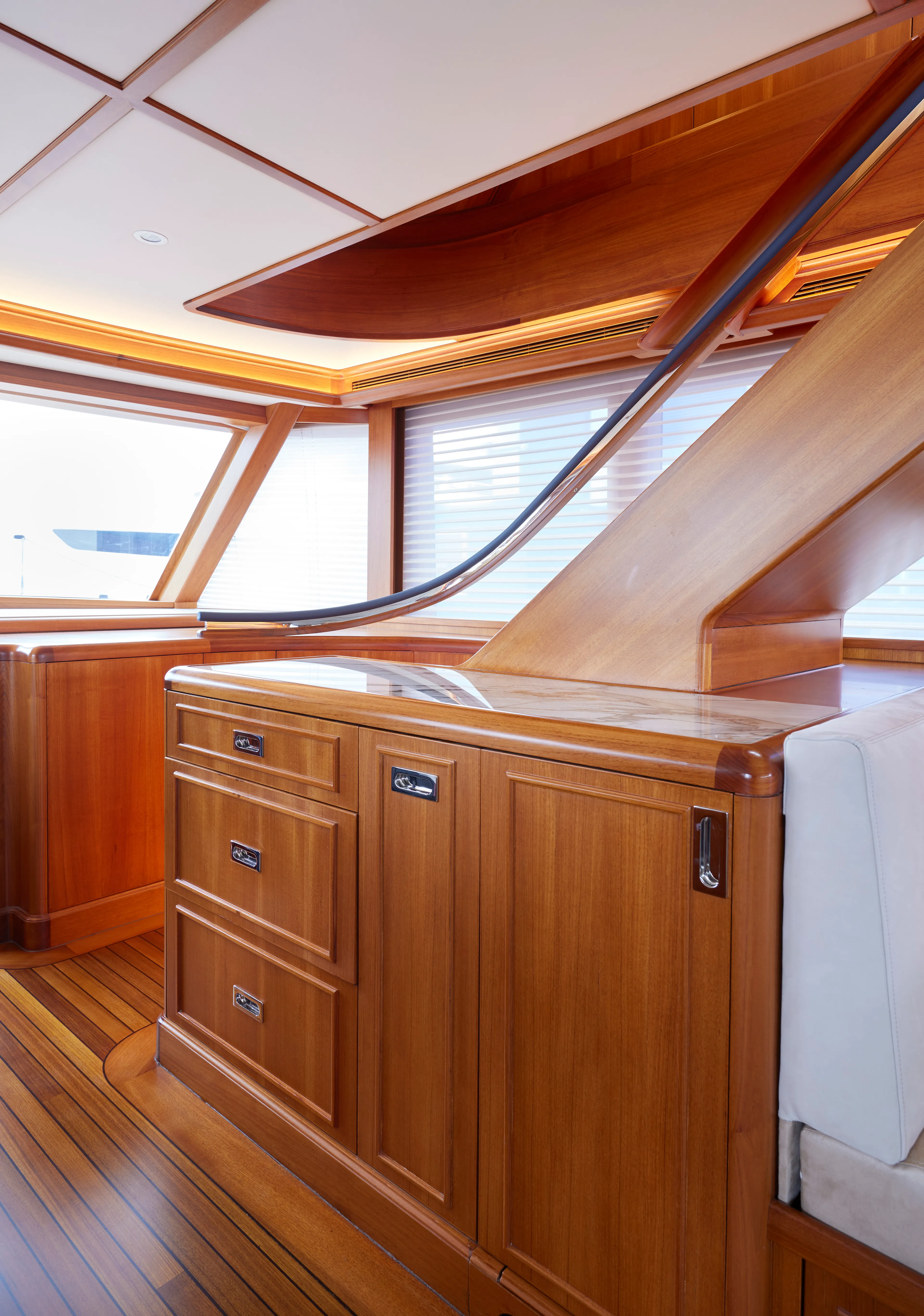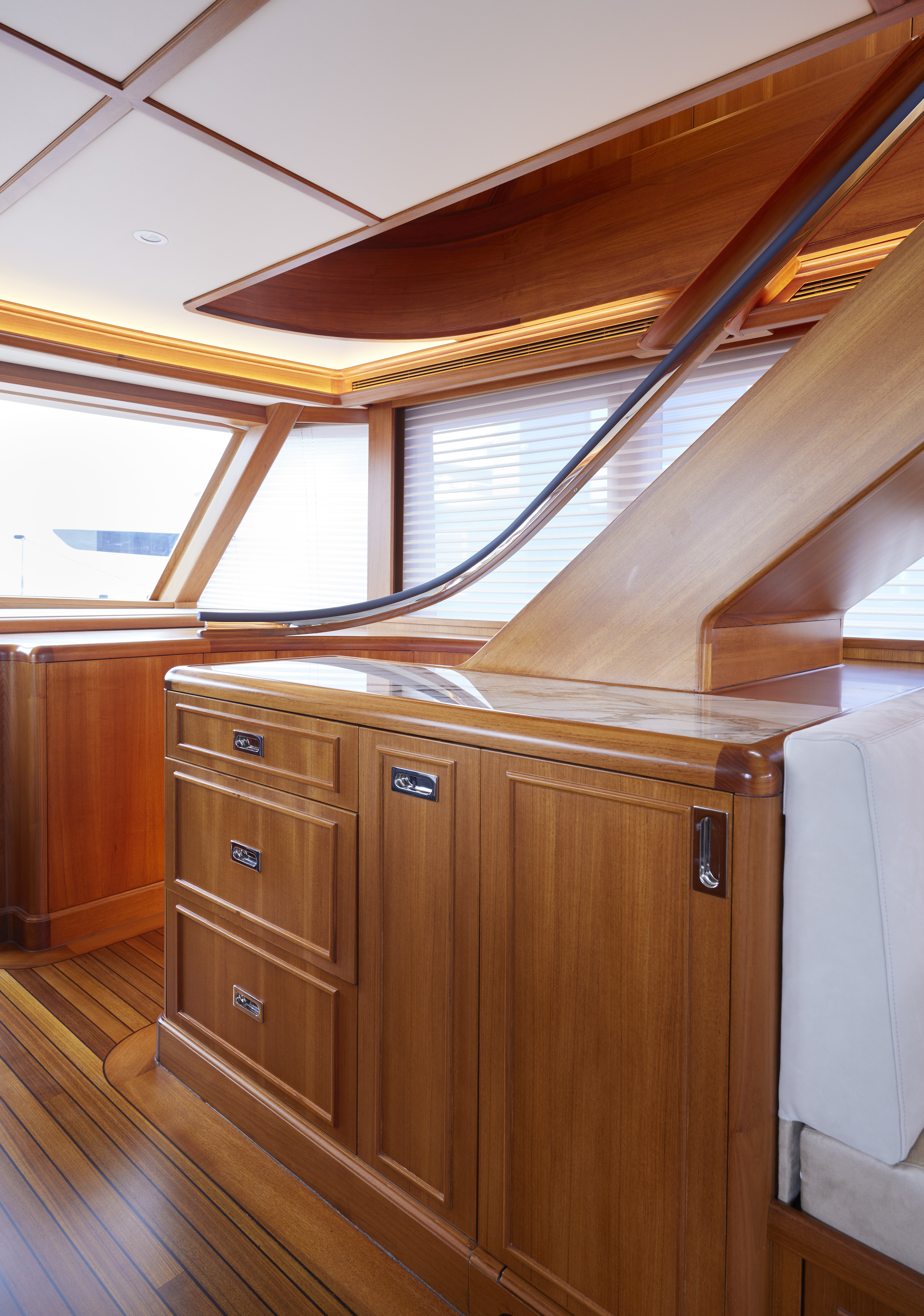 “Acquired by a serial Feadship owner last year, the yacht was in excellent condition at the time of sale, but he determined to bring her back to the Netherlands to ensure his Feadship remains a Feadship,” says Pier Posthuma de Boer, director of Feadship Refit and Services. “We were actually full when the owner contacted us, but we’re always proud when long-term clients bring their yachts back to us for refit work, so we adjusted our schedules and Catch is now back in the water.”