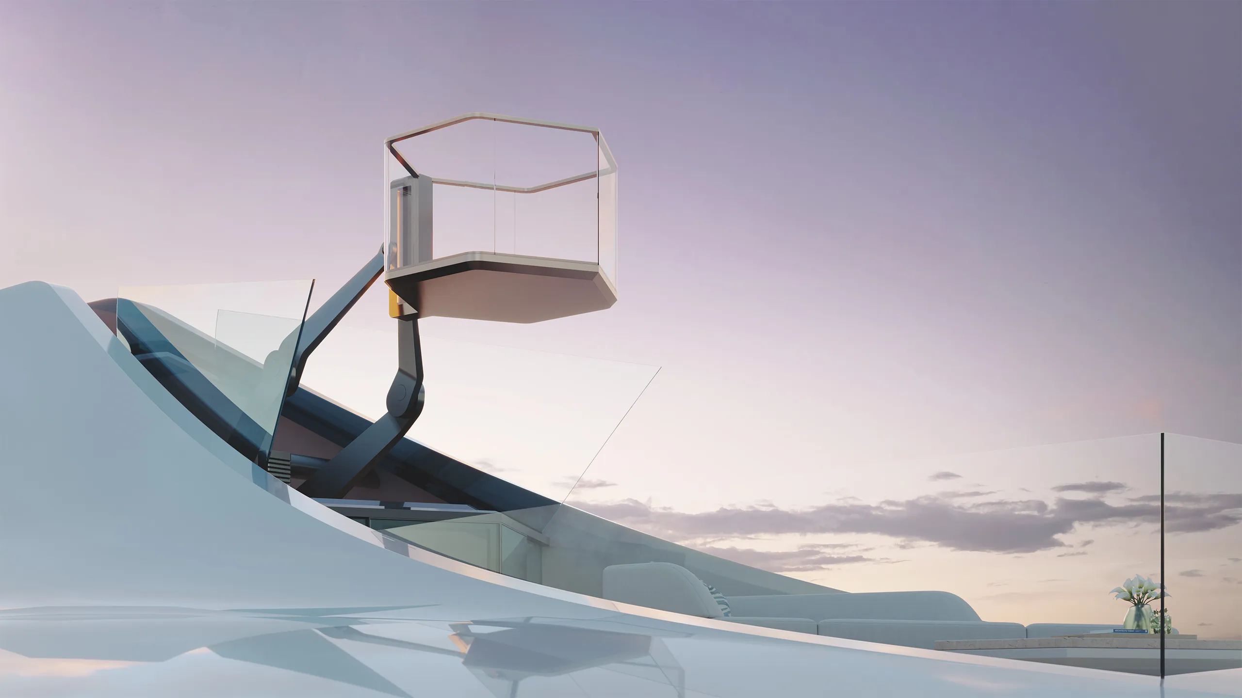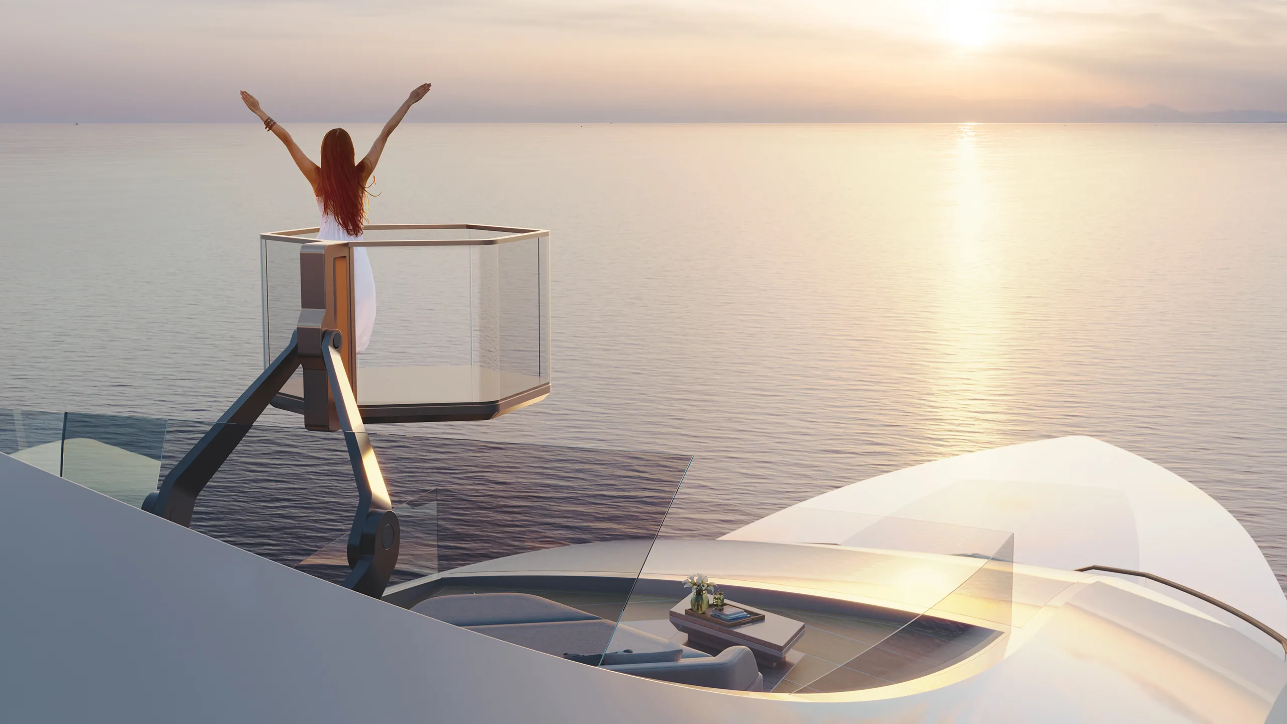 Imagine being transported between decks without stepping into the confines of an elevator. No matter how nicely decorated, an elevator creates a disconnect from one floor to the next. C introduces a seamless transition between the decks via a dramatic central court that keeps them visually and literally connected like a three-dimensional chess board. Instead of stepping into an isolated lift capsule, at the touch of a button a neat, hexagon shaped seating area gently moves to deposit you seamlessly at your desired level with no break in the conversation. The lifting mechanism can also swivel 180 degrees to accommodate the split-level decks and place passengers nearer their destination. Take it to the top and the skylight automatically opens revealing a private crow’s nest. It sounds like a movie special effect, but it’s possible!