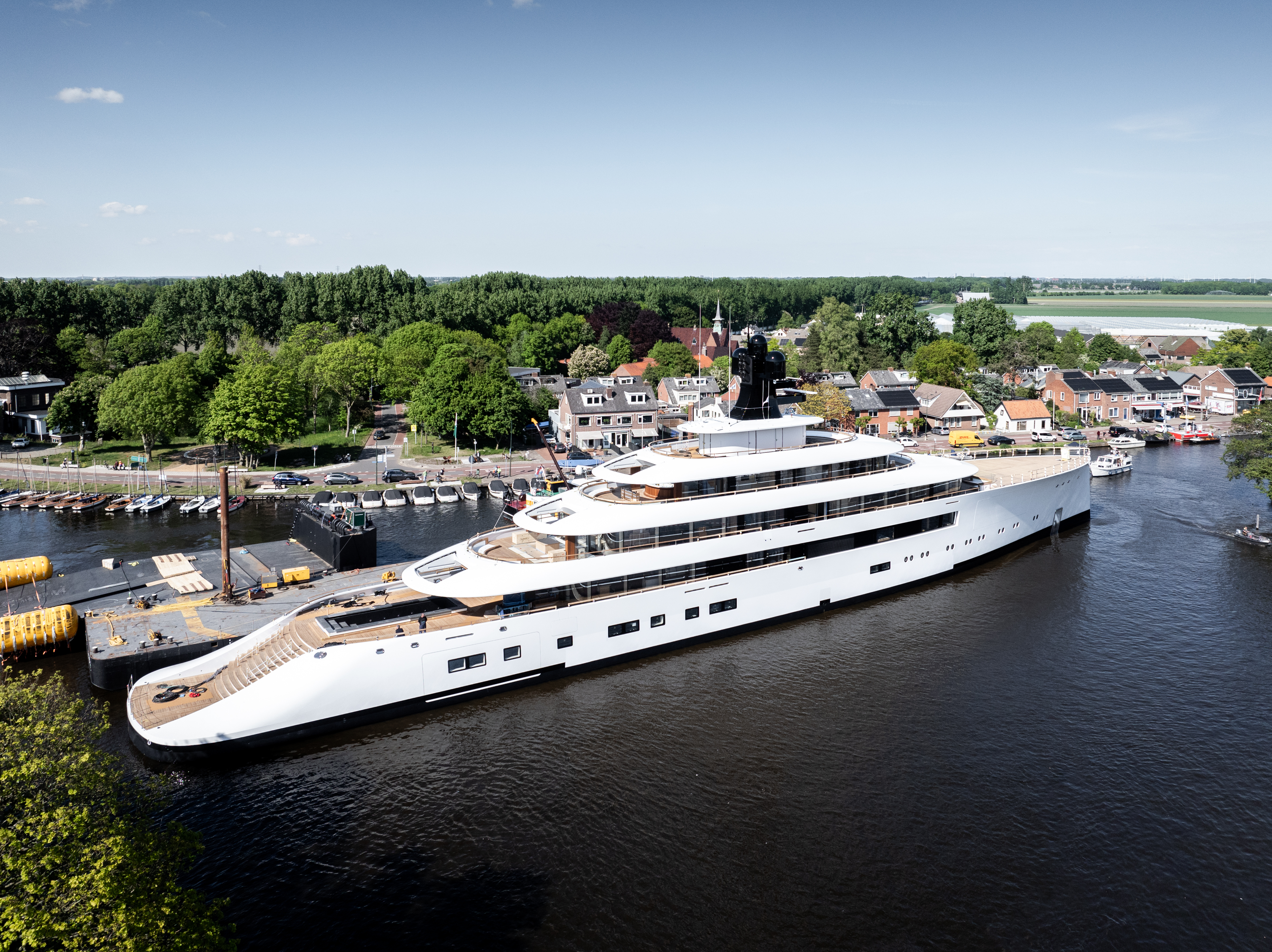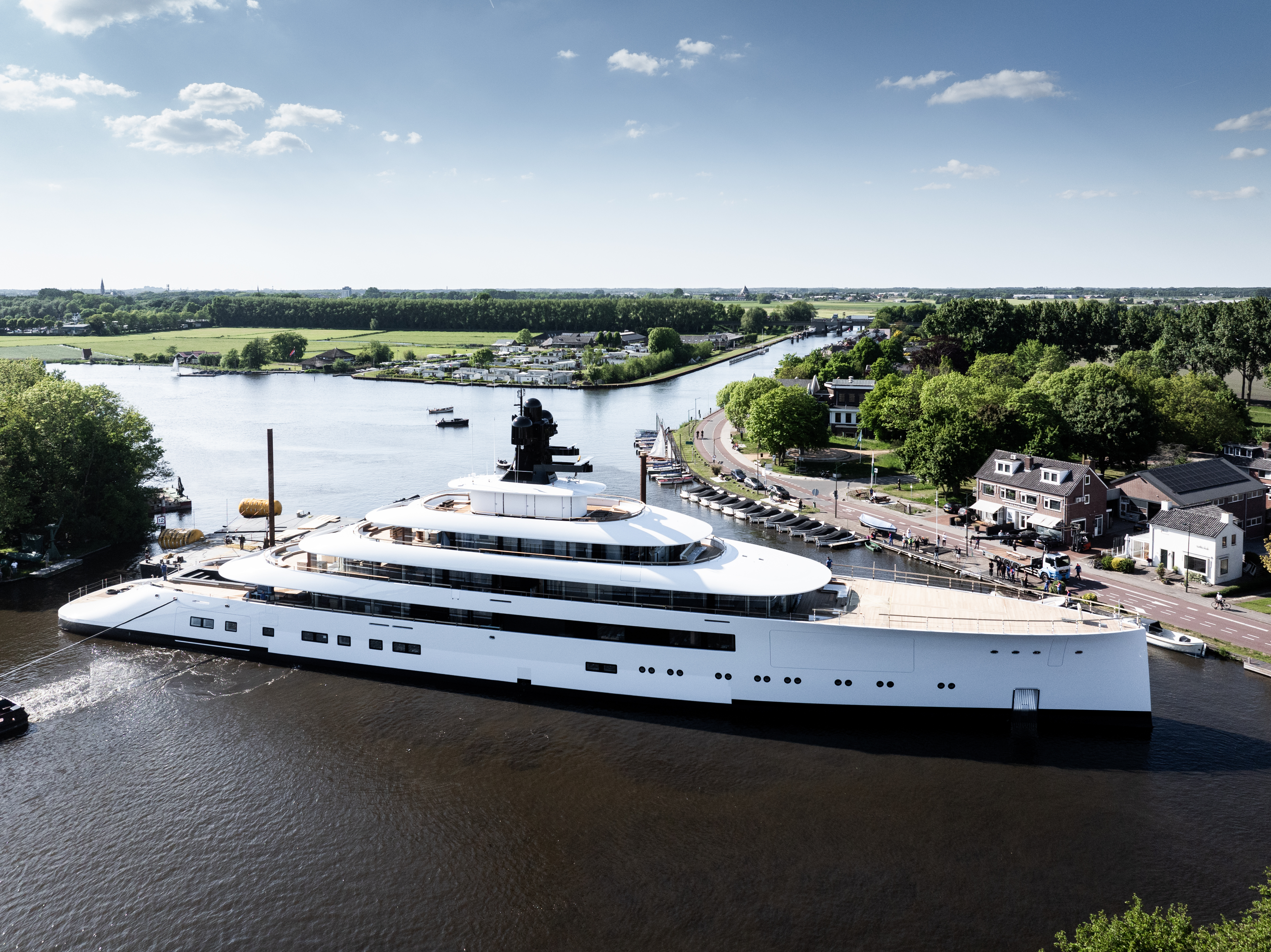 Feadship Project 824 emerges from the facility at Kaag