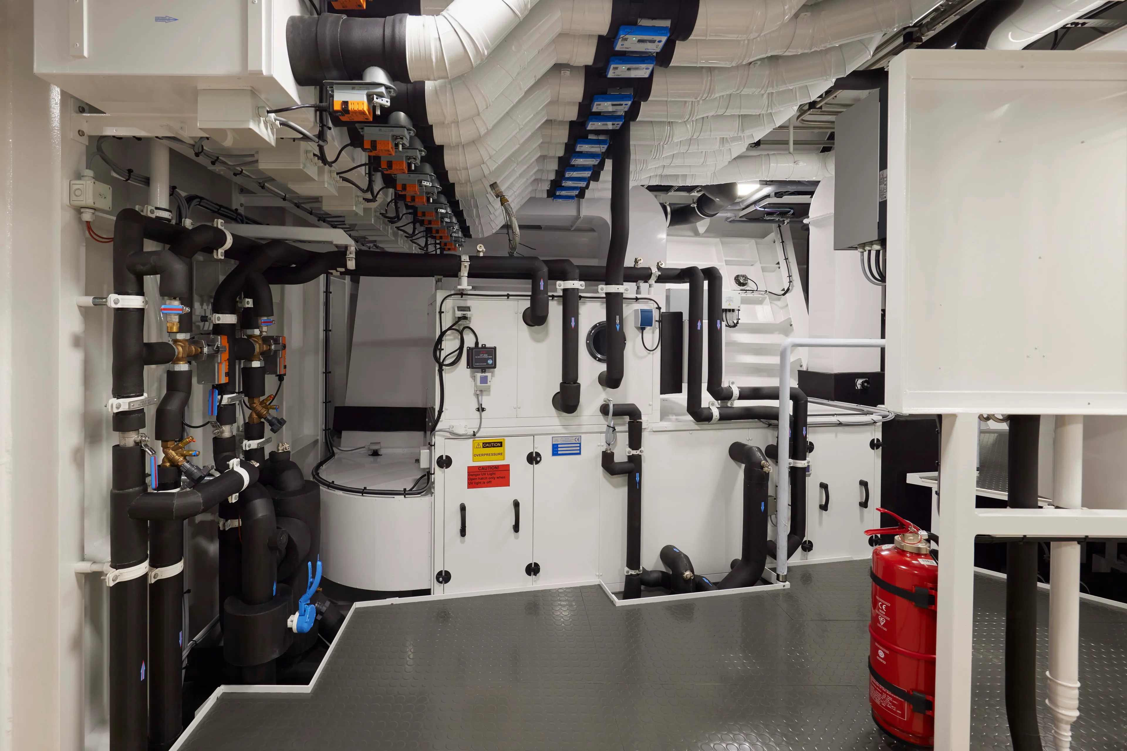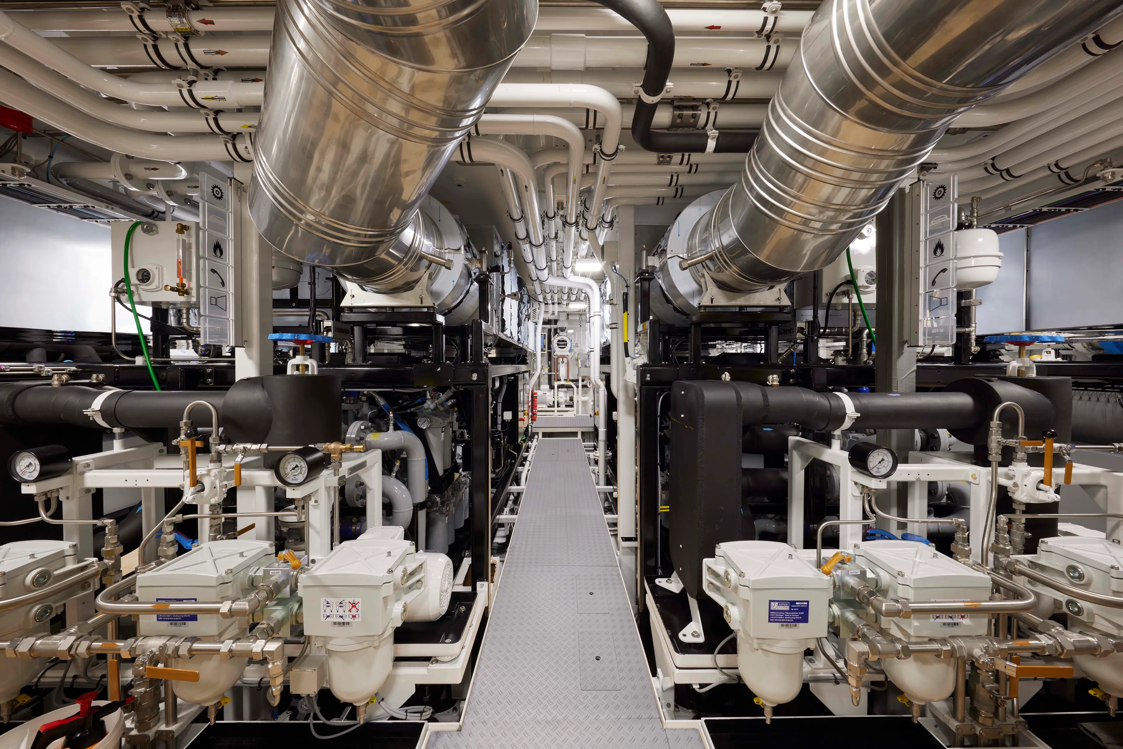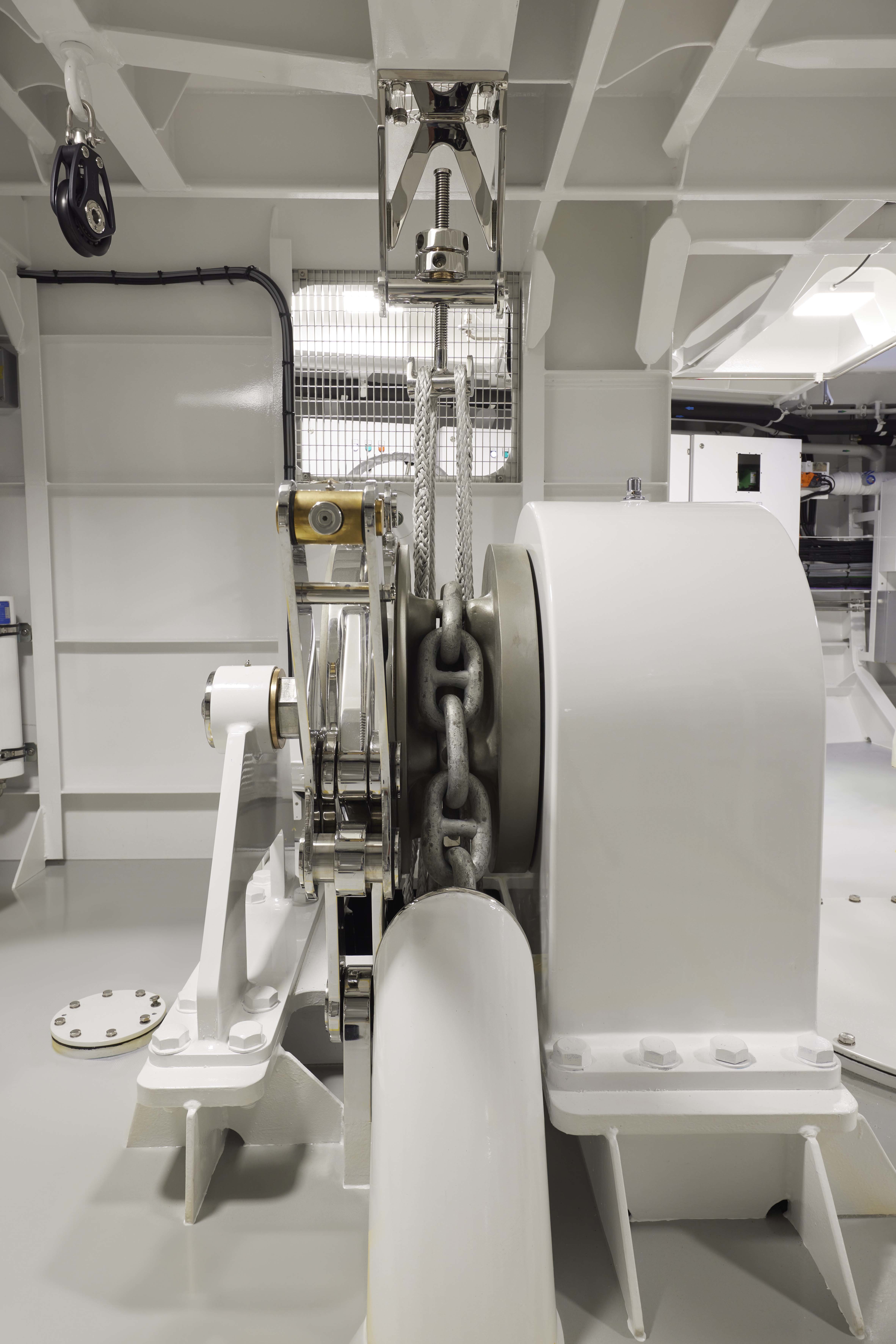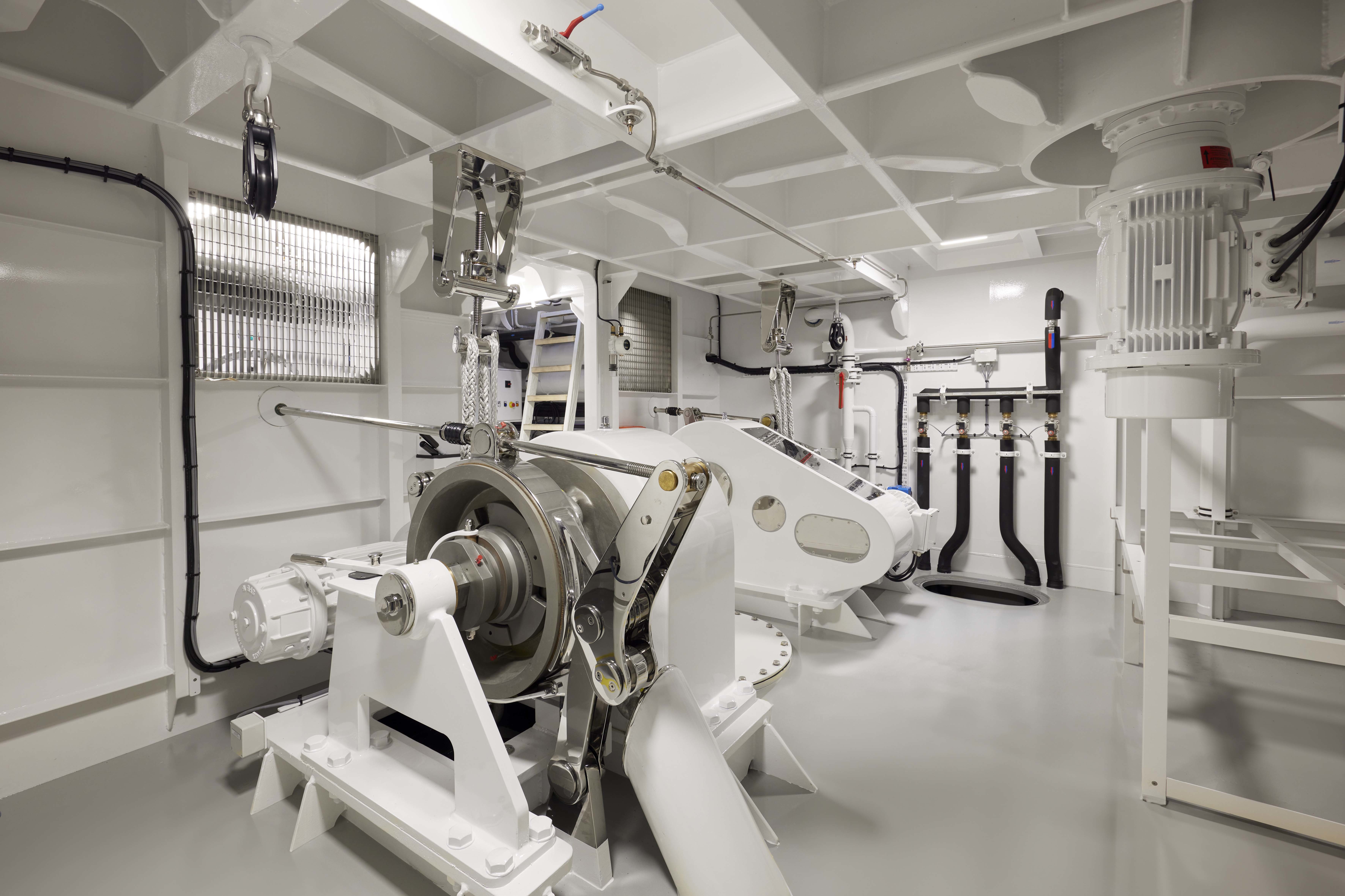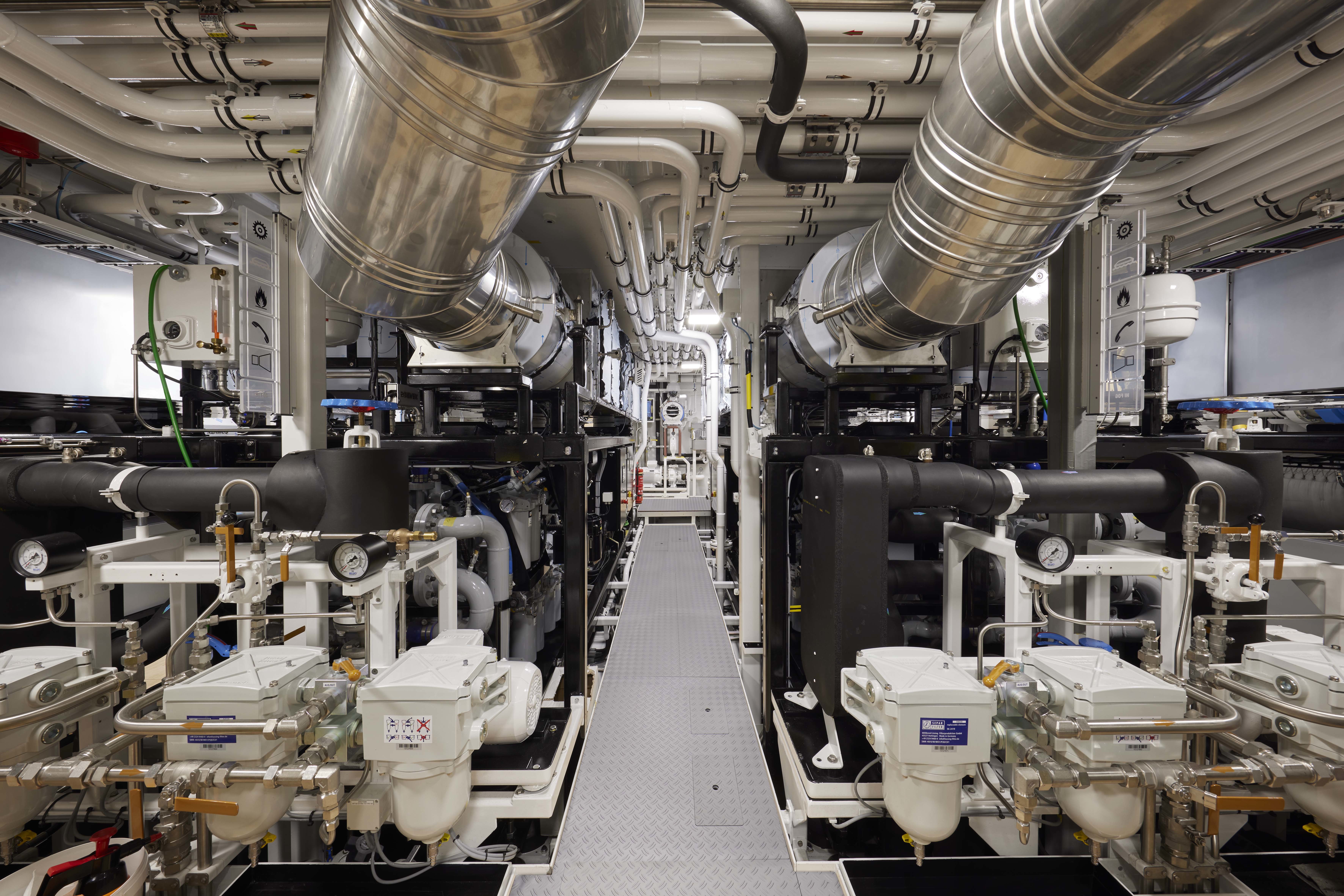 Conventional installations typically reheat with an electric heating element, but Obsidian uses waste heat for that purpose. Not only is waste heat captured from the generators, but also from the AC chillers themselves. This is not just free energy, but it is essentially carbon-free energy because it reuses incidental heat generated by another function. “There are so many points of energy savings integrated on this yacht that it is hard to count,” said Project Manager Mark Jansen.