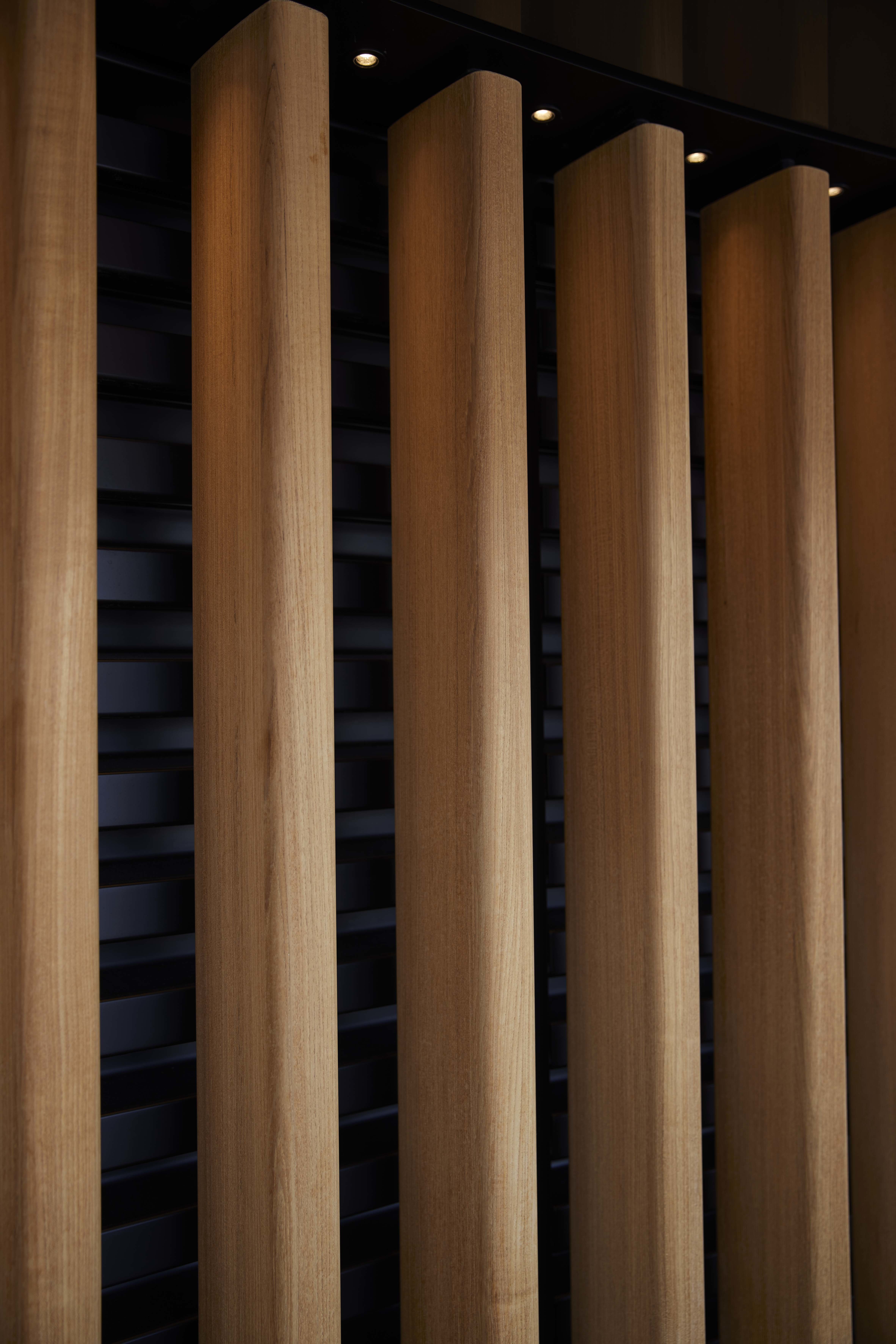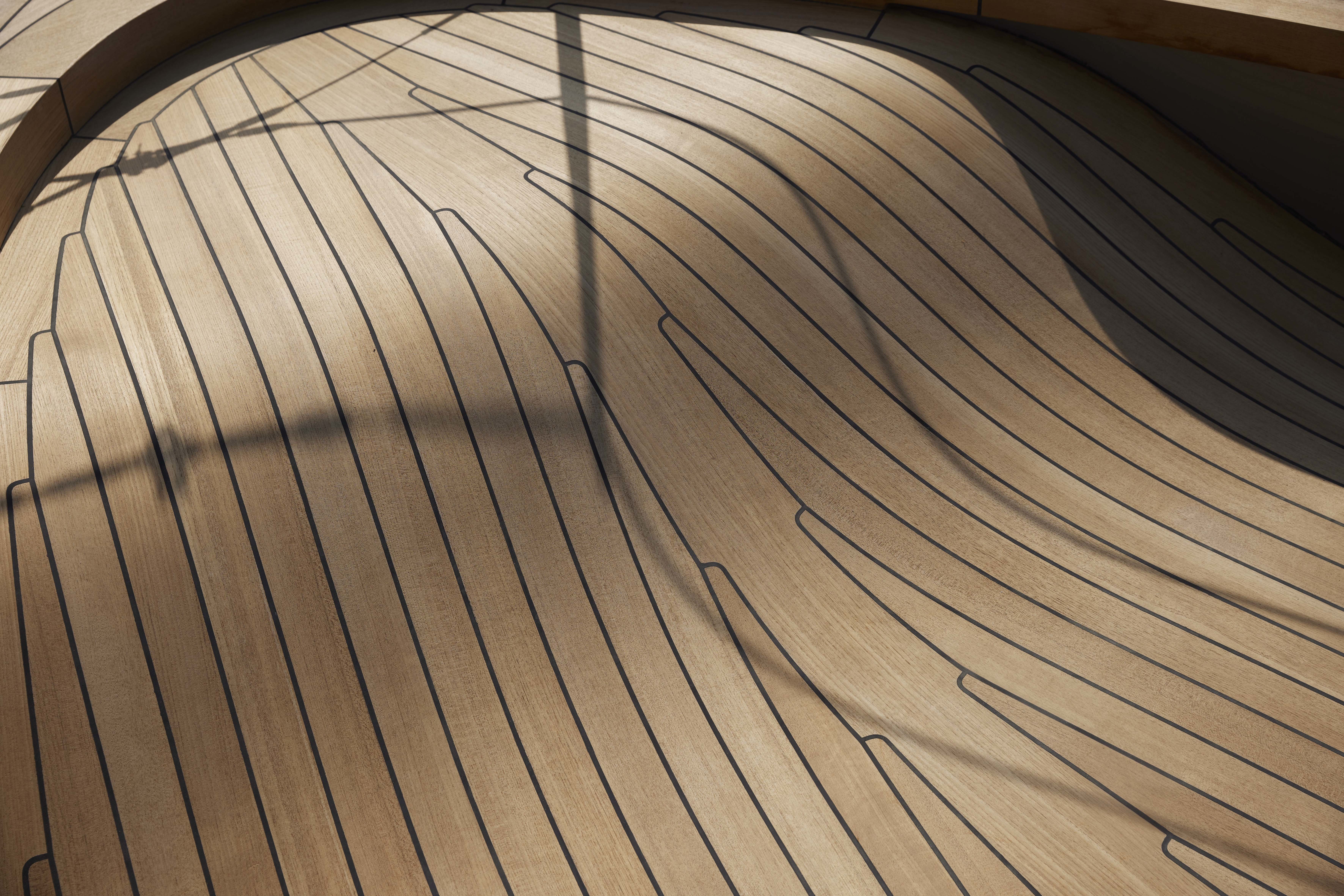 There are surprising destination spaces such as an asymmetrical atrium staircase leading to a lower deck dining saloon with an entire wall that opens to provide a terrace view just 75 cm above sea level.