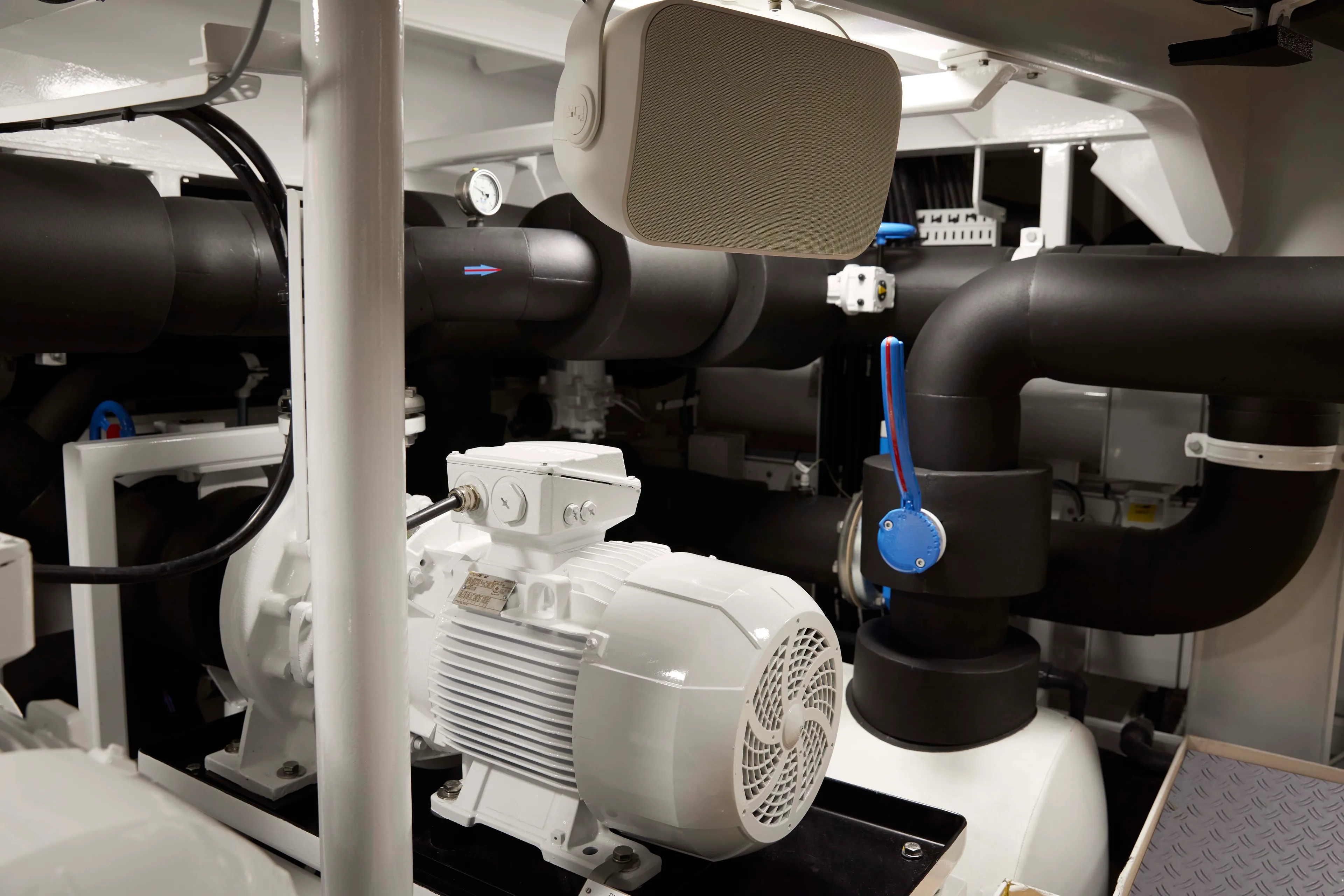 Urged to explore all avenues, Feadship’s engineers introduced an innovative heat pump system to pull heat from various sources, including ambient sea water. Using a heat pump, which transports thermal energy (heat) from one place to another, is five times more efficient than simply making heat with a regular electrical heating coil, according to Jongepier.