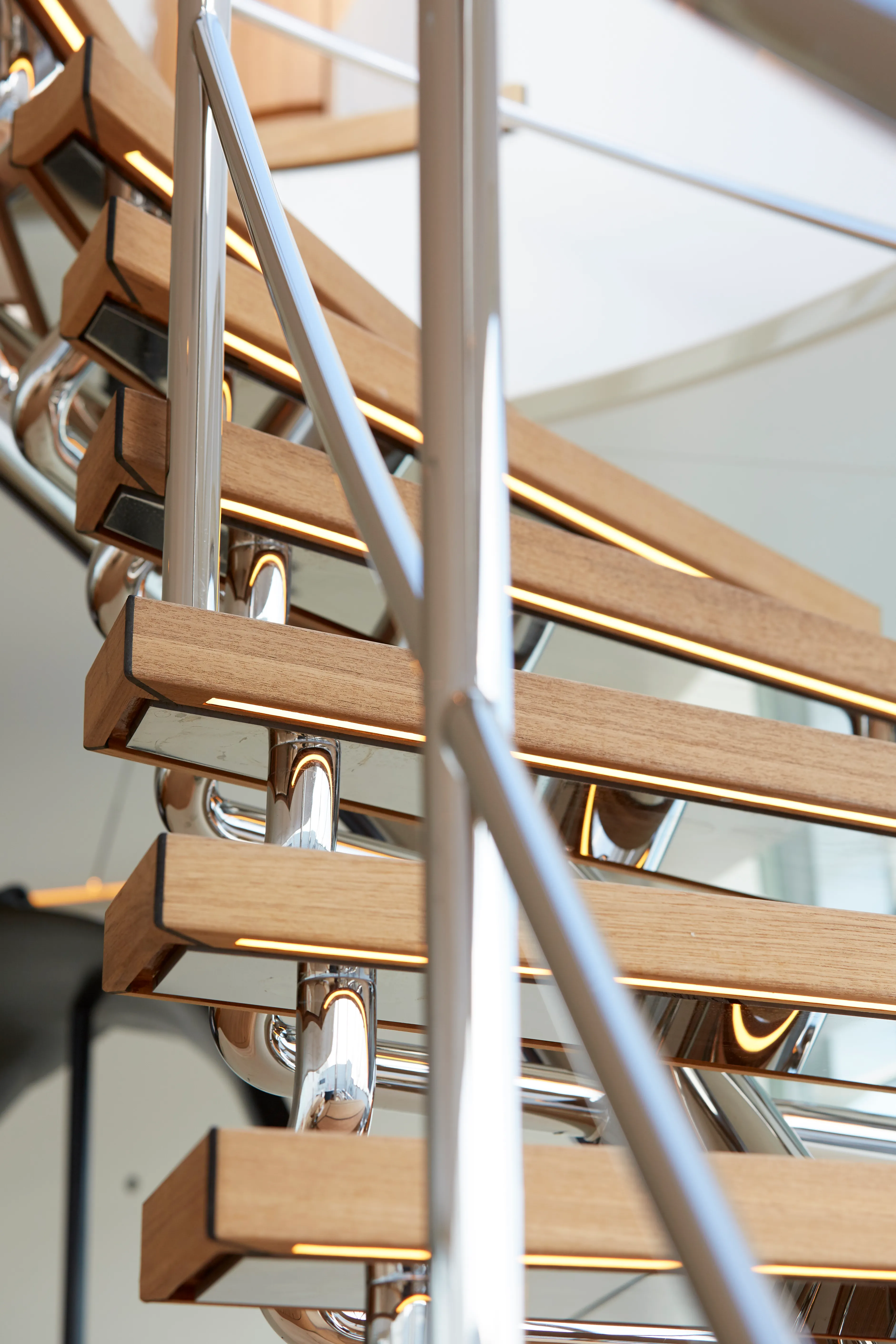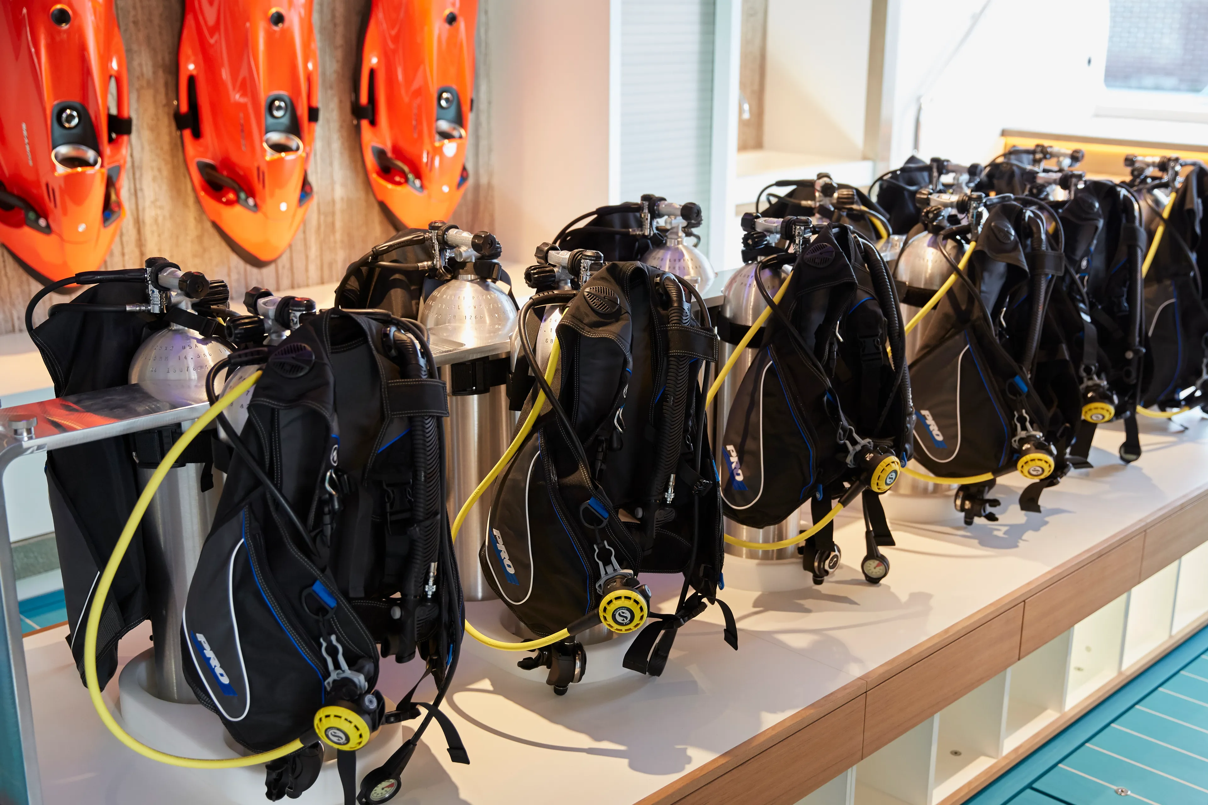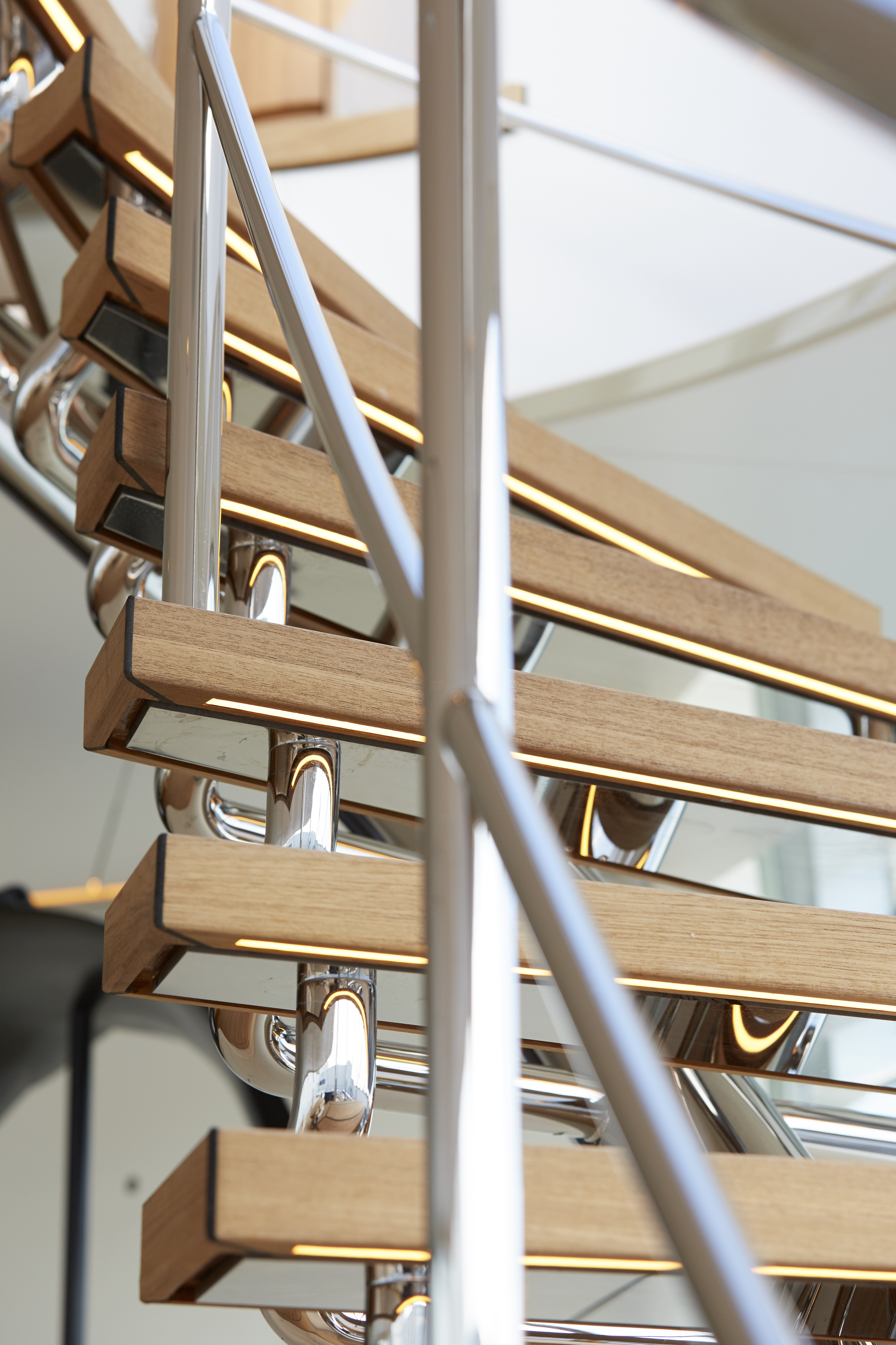 The owner will soon have many more diving tales to tell, most of which will begin in the dedicated dive room in the stern. Finished to the highest degree of sophistication (including a teal-coloured floor and metallic/wood ceiling), this space houses all conceivable facilities (including a nitrox-enriched air system) and is characterised by bespoke placement of everything from seats to equipment shelves.
