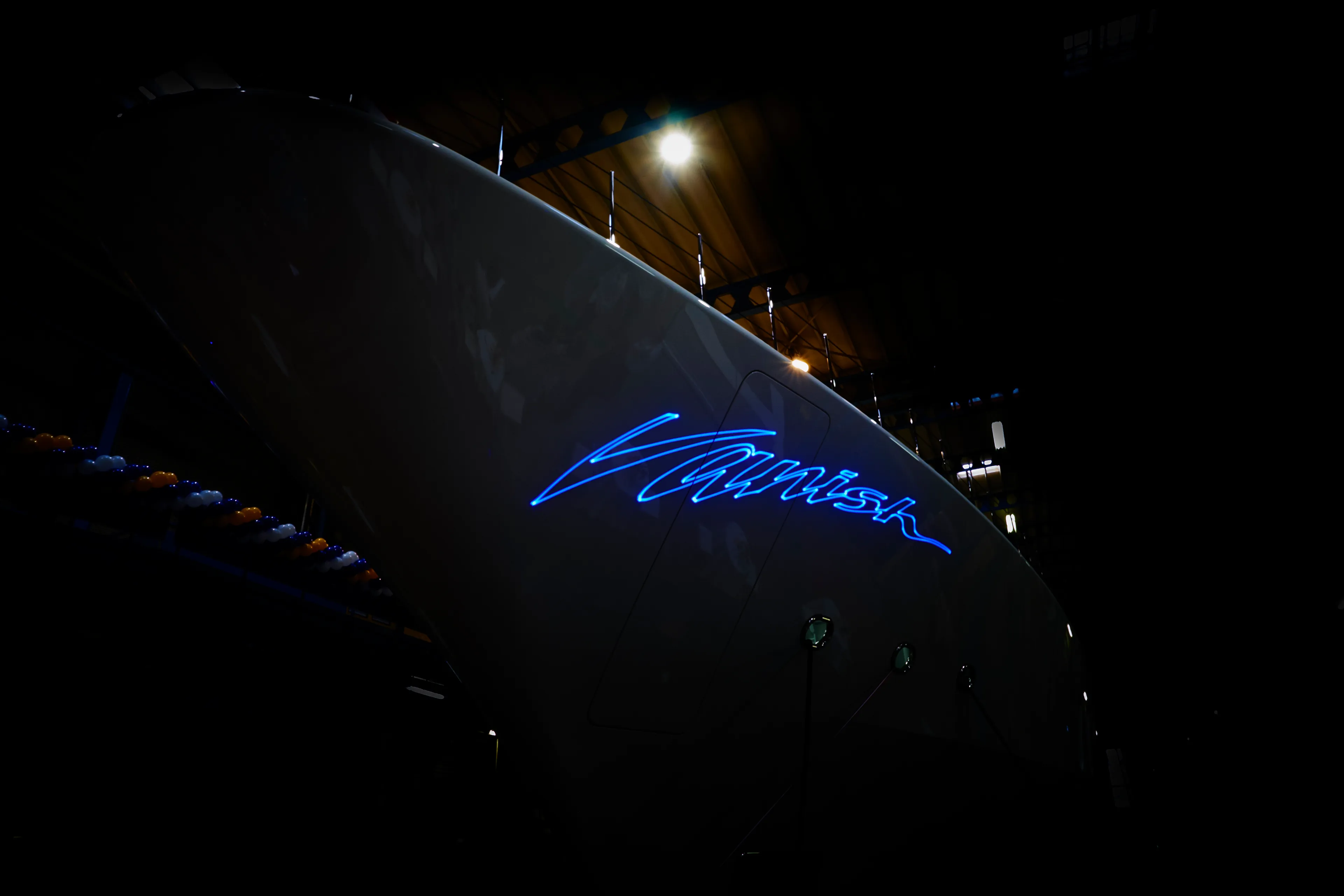 “This launch party encapsulates the energy with which the owners have embarked on fashioning their Feadship,” explained Feadship director Jan-Bart Verkuyl. “They are excited about enjoying all the options involved in being close to the water, from the exquisite transom sea terrace to the inviting sun deck bar. Vanish has been designed to suit the way they like to spend time onboard with a wide array of watersports options. With helipads on both the sun deck aft and bow area, she serves as a springboard to a world of adventures for the owners and their guests.”