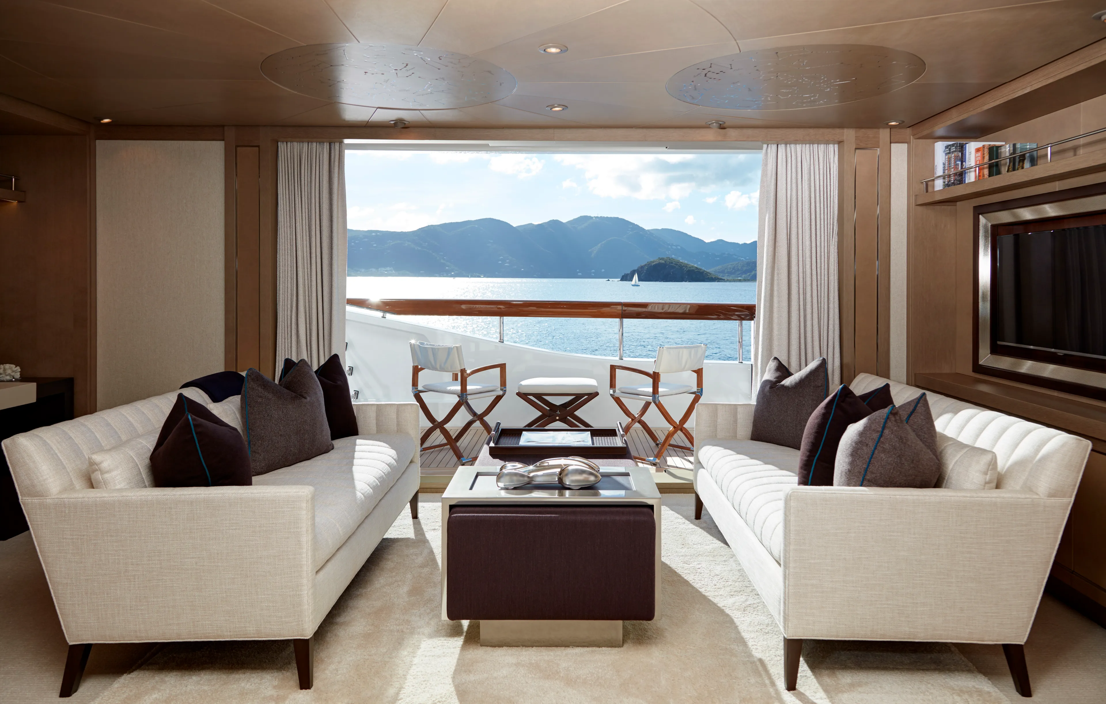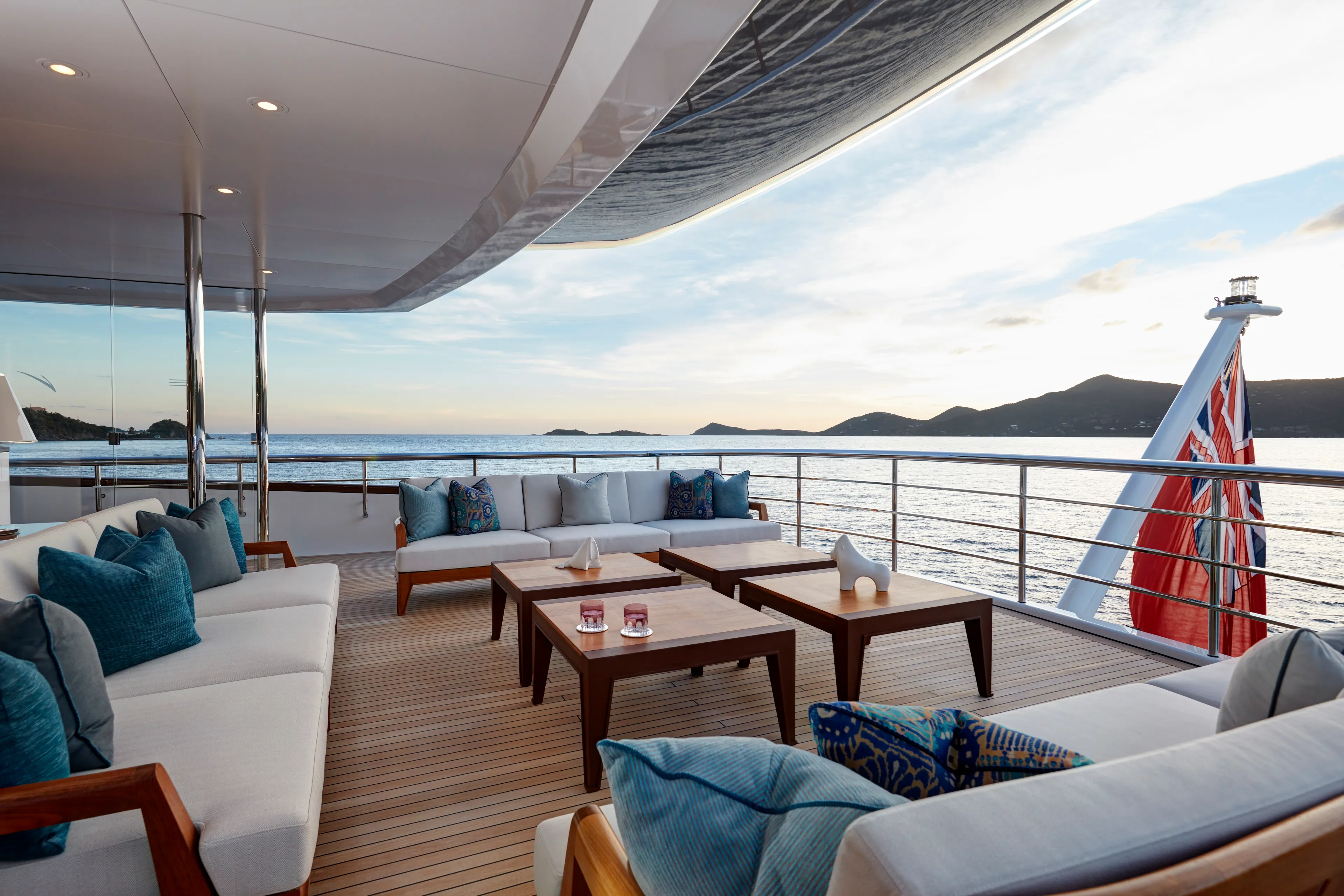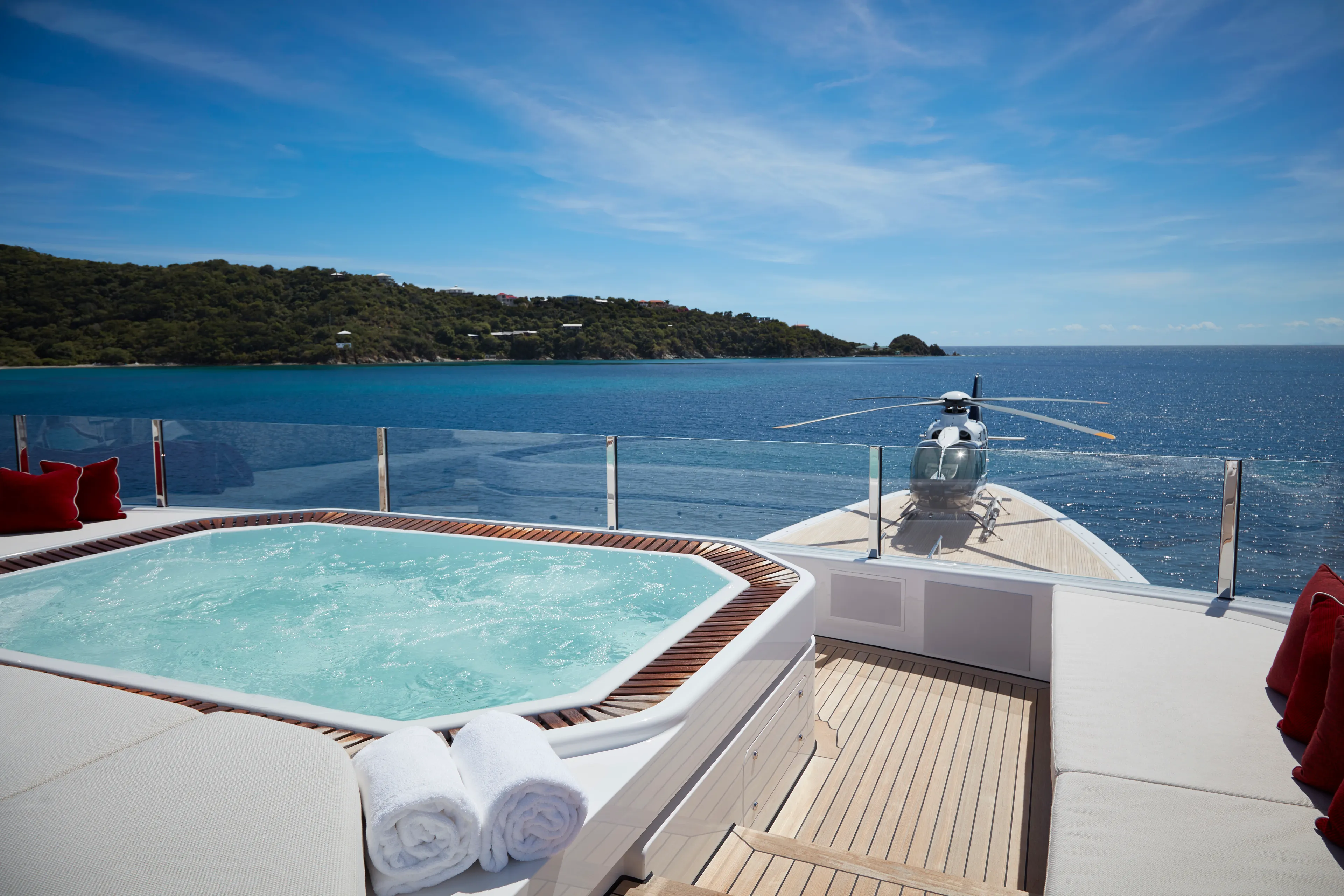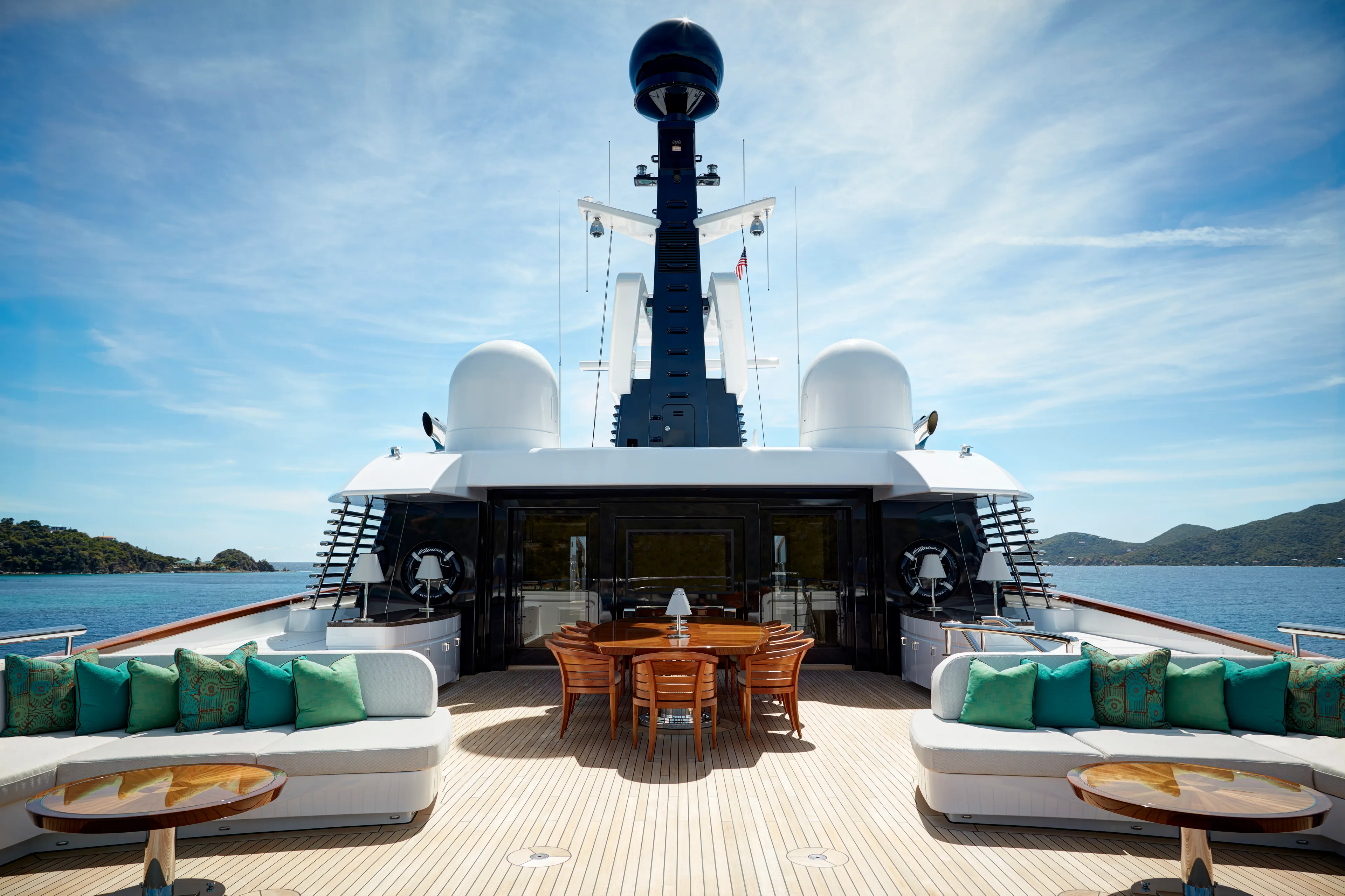 The exterior styling of Vanish includes signature extra-thick teak cap rails that follow the contours of the bulwarks and look amazing both close-up and from afar. These spectacular oversized handrails have never been placed on a Feadship before yet seamlessly became an integral part of the design of Vanish. Other striking features are the free-standing staircase flanked by a glass wall over three decks, an ingenious extendable balcony for the owner’s stateroom and a highly innovative transom design. There are helipads on her top deck aft and bow for access by owners and guests in even the most remote locations.