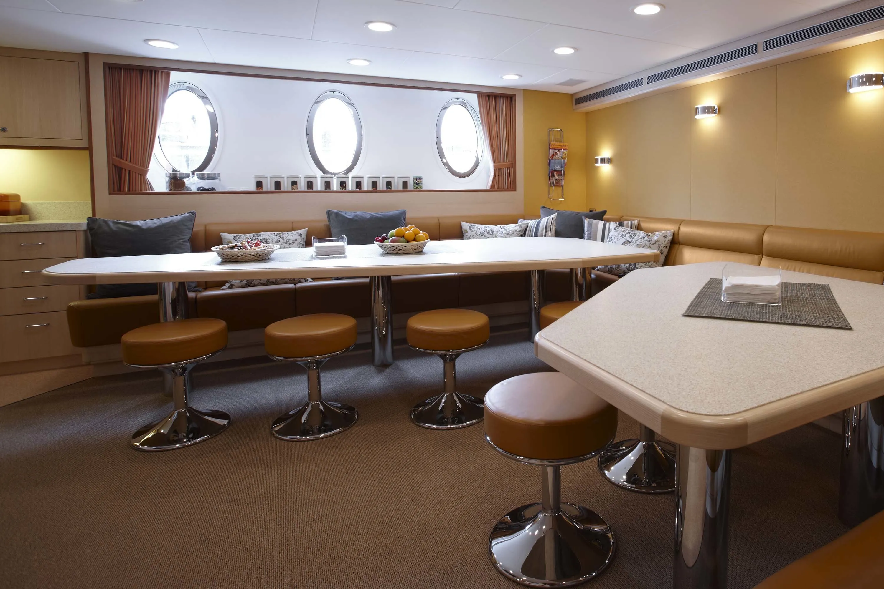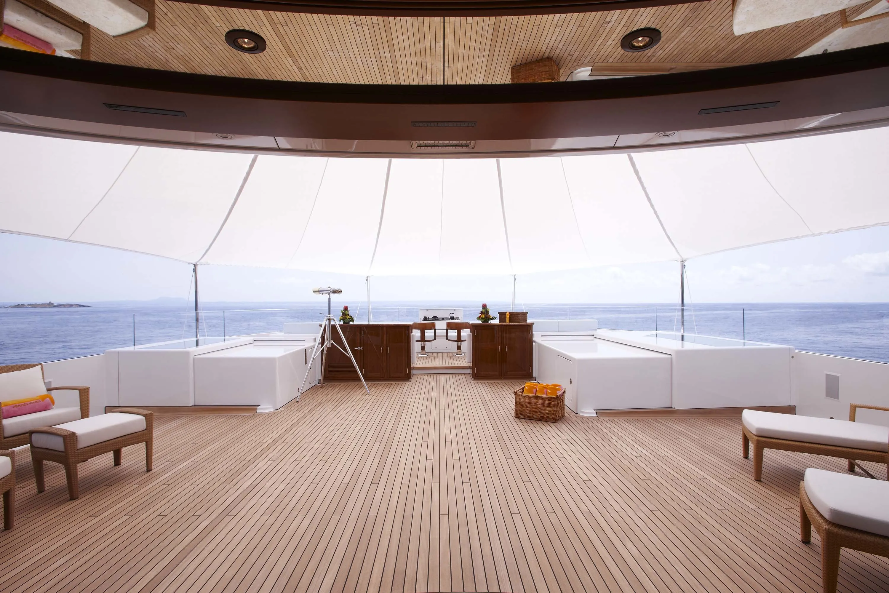 Lady Christine was built for highly experienced owners who were intrinsically involved in every step of the project. Their contributions are apparent at every level – from the highly distinctive exterior looks to minor interior details such as door sensors for their dogs. Unbeatable quality formed the basis of the overall briefing and Lady Christine exudes sophistication from every angle. The owners desired a split-level layout to incorporate a private salon above the wheelhouse. Hence the bridge was moved down a level and the forward part of the deck raised a level to create a complete owners’ deck, including an observation lounge.