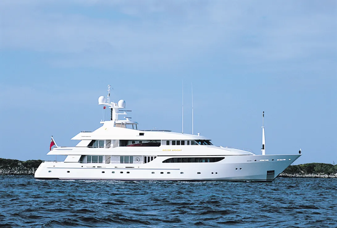 The owner's first Feadship experience was a two-week cruise on September Blue in the mid-1990s. An immediate convert, he soon bought the 47.50-metre Mi Gaea, which was renamed Blue Moon. Not long after, the designs for a brand-new Feadship were on the table and the second Blue Moon - at 50.28 metre the largest aluminium Feadship ever built at the time - was launched in 2000. The third Blue Moon would follow in 2005.